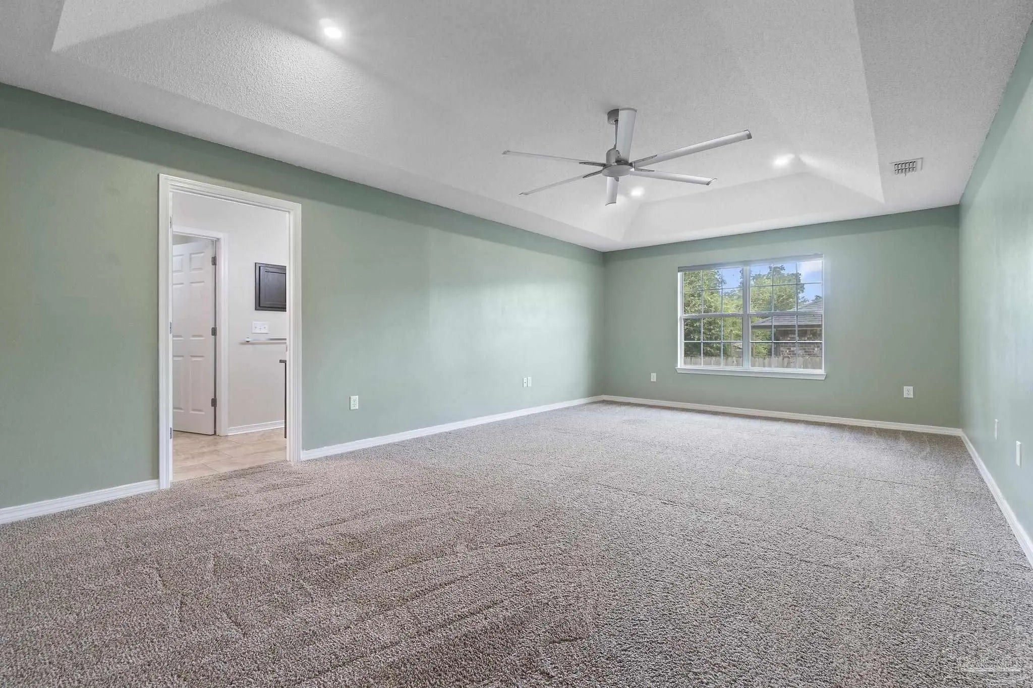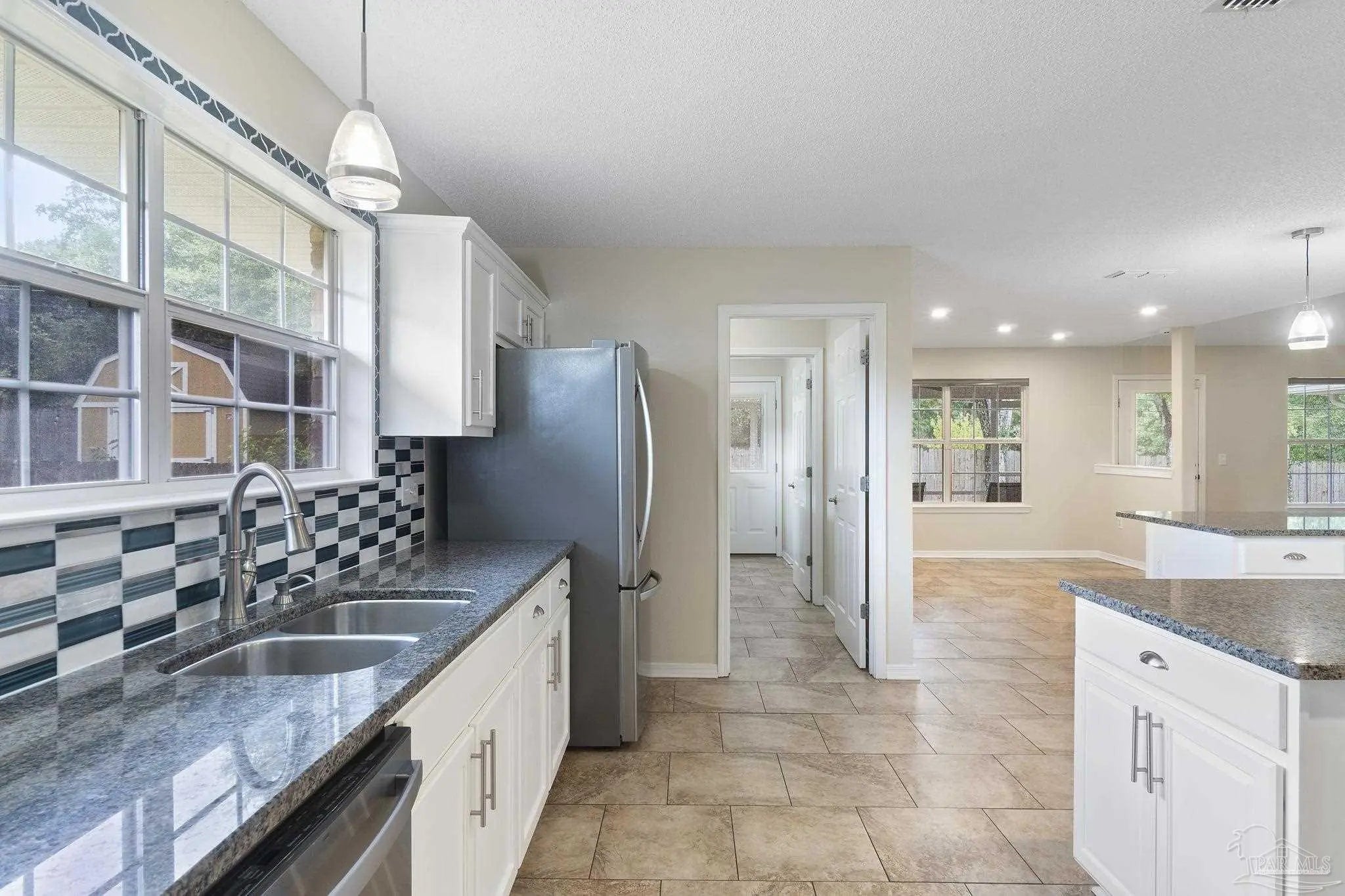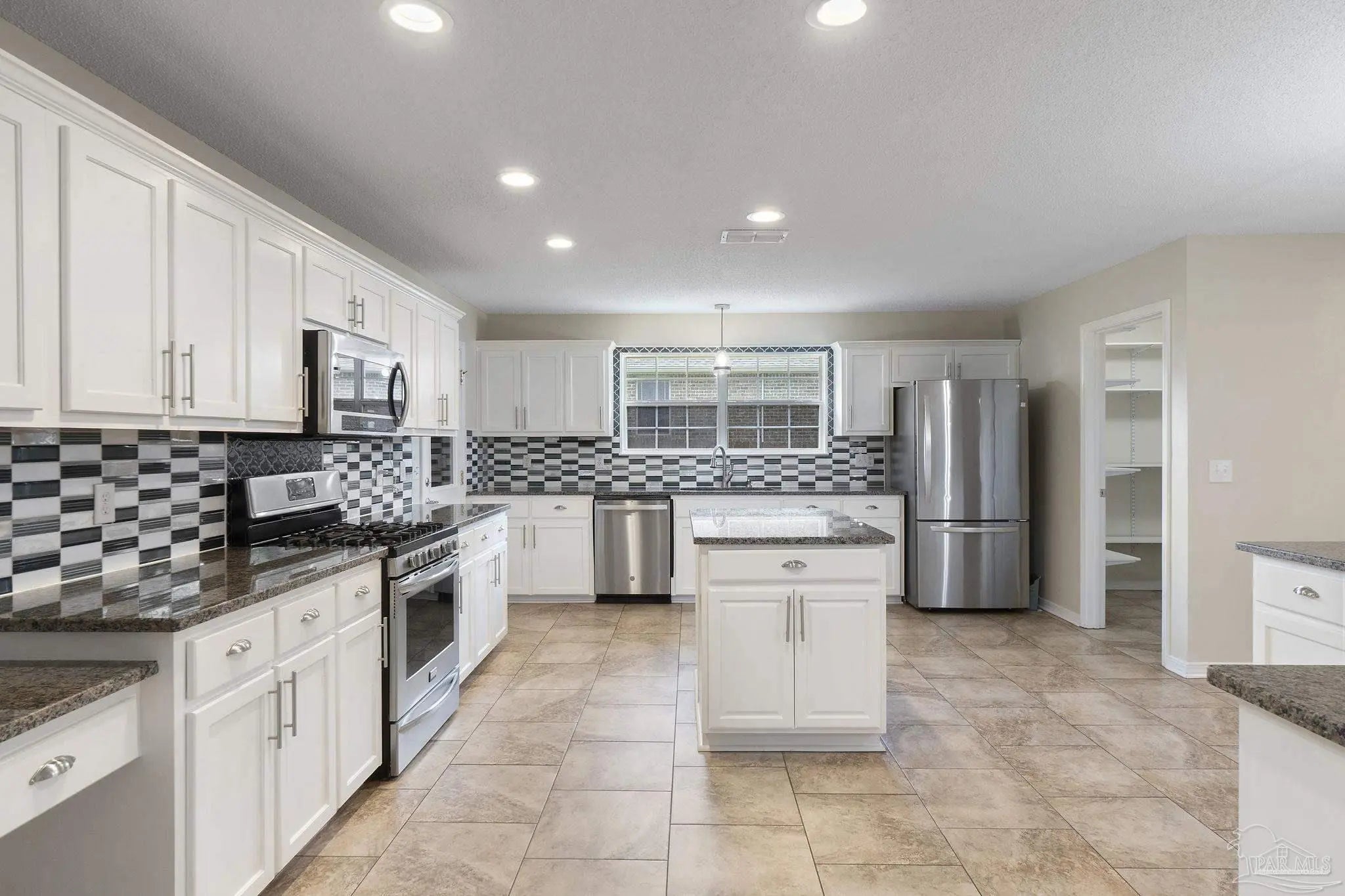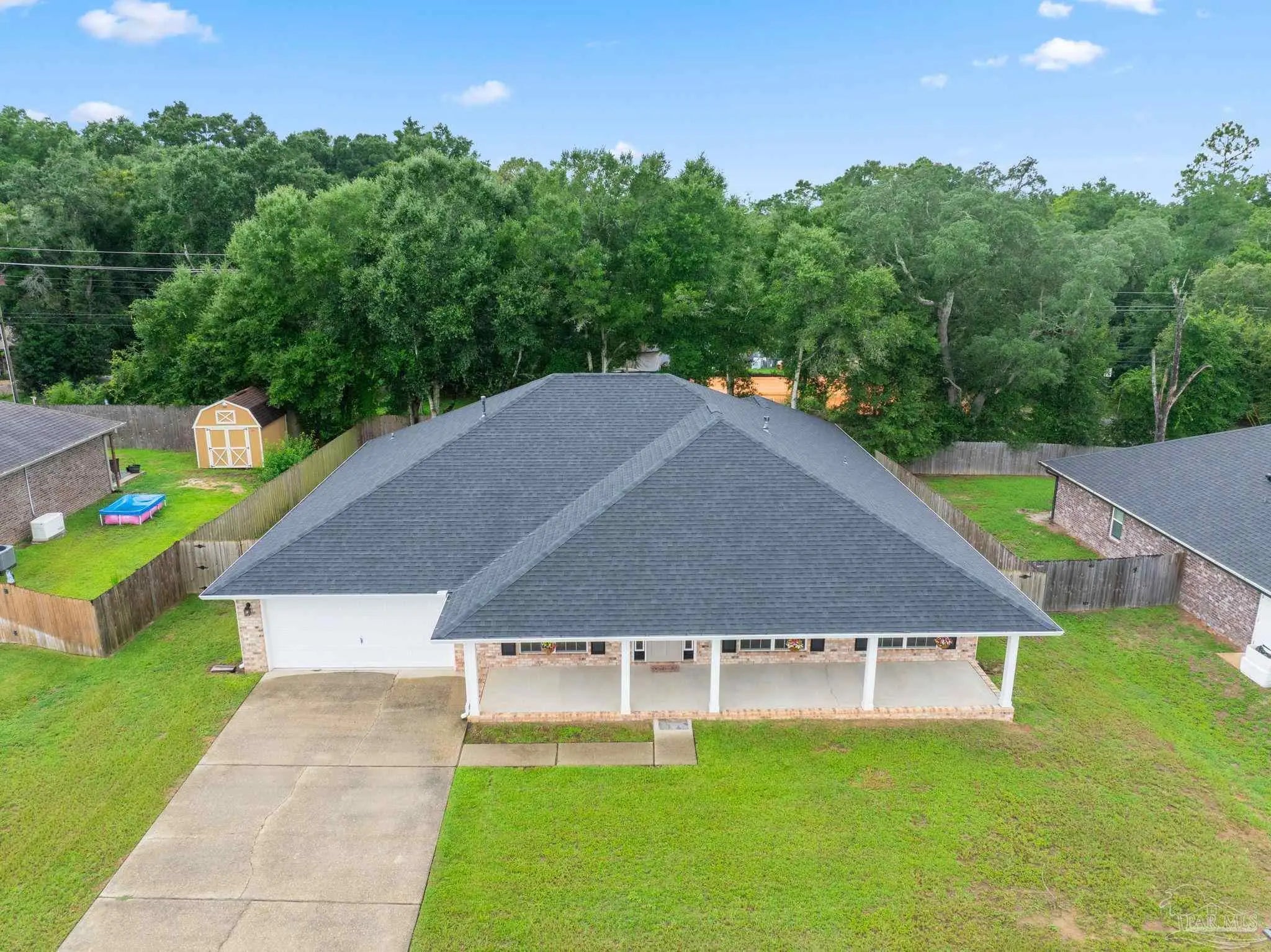 Welcome to this spacious 3,158 sq ft home with four bedrooms, three baths, PLUS A BONUS ROOM, a whole-house generator, & a wide front porch that sets a welcoming tone. Inside, soaring ceilings & abundant natural light highlight the open layout. A formal dining room flows into the kitchen, where granite counters, stainless steel appliances, a gas stove, an island, a breakfast bar, & an oversized pantry make it a true centerpiece for both cooking & entertaining. The adjoining breakfast nook & living room overlooks the screened back porch & backyard, creating a seamless connection between indoor & outdoor living. The primary suite boasts a tray ceiling, oversized closet, dual vanities, a soaking tub, a separate shower, & a private water closet. Three additional bedrooms & two full baths are located along the same hallway, providing comfort & convenience for family or guests. A bonus/office at the front of the home offers versatility for working remotely, homeschooling, or creating a quiet retreat. Set on a 0.25-acre lot, the fenced backyard is framed by mature trees, providing shade & privacy for relaxing evenings or weekend gatherings. The screened porch extends your living space outdoors, while an adjacent slab is ideal for a hot tub or outdoor seating area—perfect for summer cookouts, fall firepit nights, or simply unwinding under the stars. Located just minutes from shopping & dining, the Blackwater walking/biking path, historic Bagdad, & charming downtown Milton with its breweries & cafes, while commuters & travelers will appreciate quick access to I-10, Pensacola State College, Pace shopping, Pensacola’s beaches, downtown, & airport. This home delivers the space, comfort, & lifestyle you’ve been waiting for - whether hosting holiday gatherings, enjoying a quiet evening on the porch, or exploring nearby amenities, you’ll find every detail of this property designed to enrich daily living & create lasting memories.