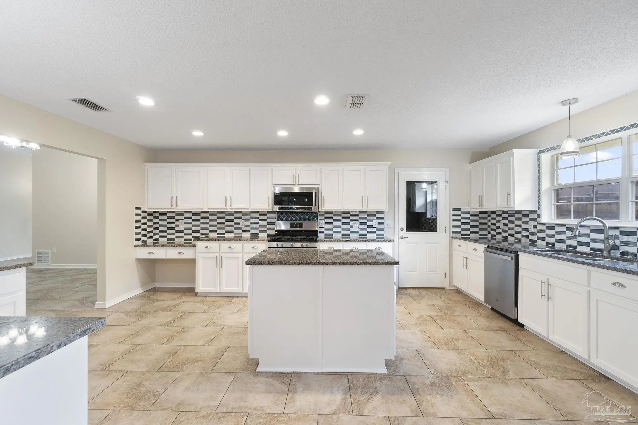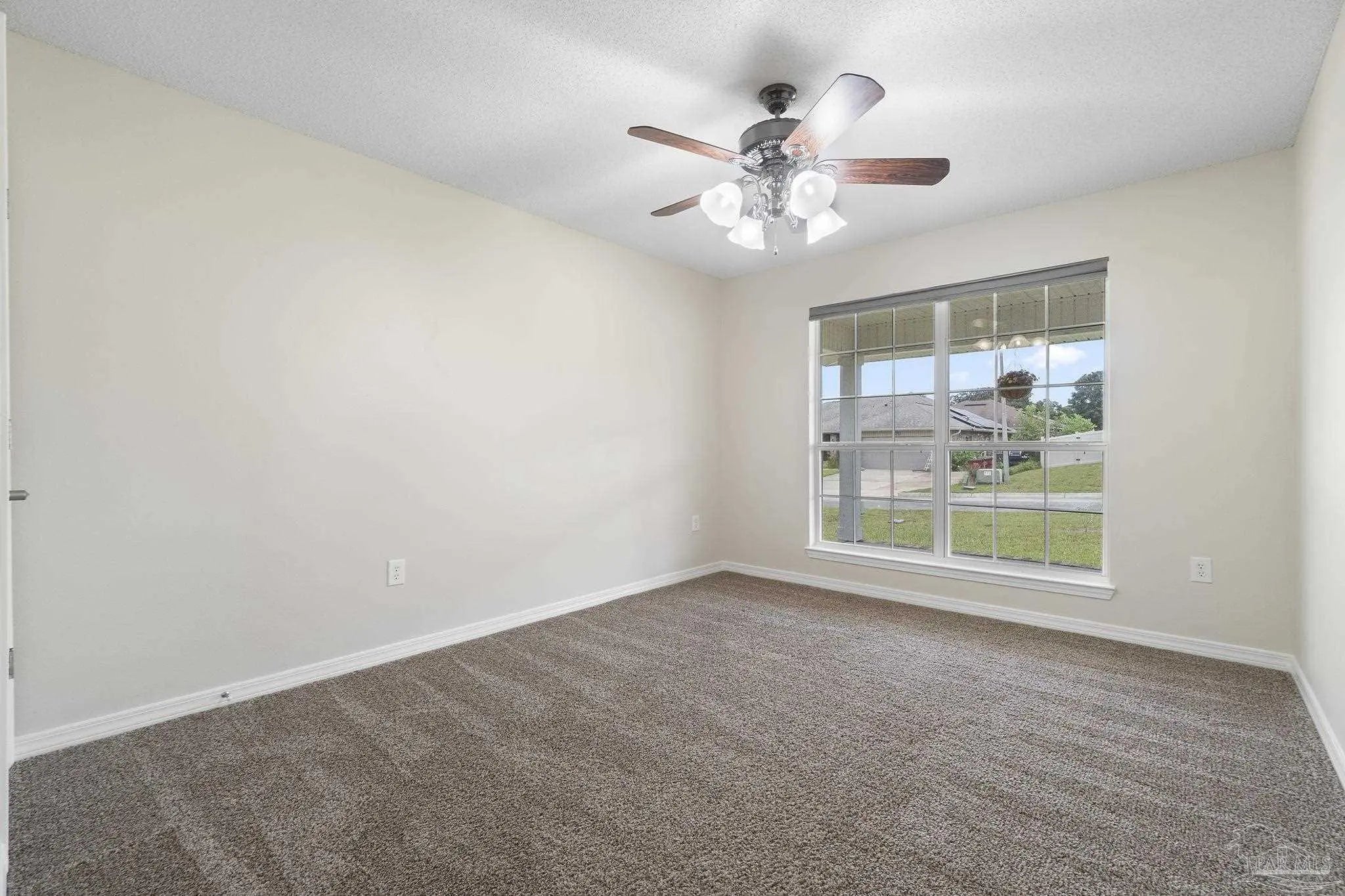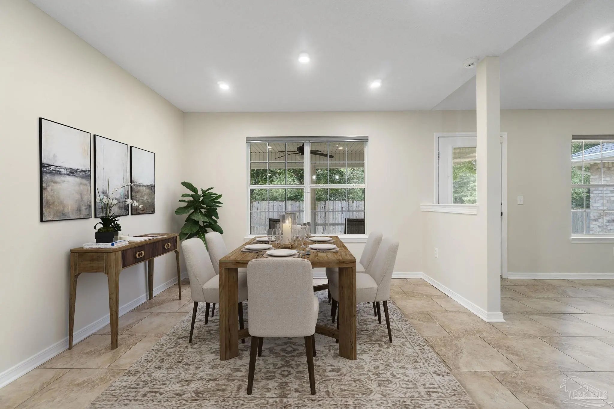 Welcome to this spacious 3,158 sq ft home with four bedrooms, three baths, PLUS A BONUS ROOM, a whole-house generator, & a wide front porch that sets a welcoming tone. Inside, soaring ceilings & abundant natural light highlight the open layout. A formal dining room flows into the kitchen, where granite counters, stainless steel appliances, a gas stove, an island, a breakfast bar, & an oversized pantry make it a true centerpiece for both cooking & entertaining. The adjoining breakfast nook & living room overlooks the screened back porch & backyard, creating a seamless connection between indoor & outdoor living. The primary suite boasts a tray ceiling, oversized closet, dual vanities, a soaking tub, a separate shower, & a private water closet. Three additional bedrooms & two full baths are located along the same hallway, providing comfort & convenience for family or guests. A bonus/office at the front of the home offers versatility for working remotely, homeschooling, or creating a quiet retreat. Set on a 0.25-acre lot, the fenced backyard is framed by mature trees, providing shade & privacy for relaxing evenings or weekend gatherings. The screened porch extends your living space outdoors, while an adjacent slab is ideal for a hot tub or outdoor seating area—perfect for summer cookouts, fall firepit nights, or simply unwinding under the stars. Located just minutes from shopping & dining, the Blackwater walking/biking path, historic Bagdad, & charming downtown Milton with its breweries & cafes, while commuters & travelers will appreciate quick access to I-10, Pensacola State College, Pace shopping, Pensacola’s beaches, downtown, & airport. This home delivers the space, comfort, & lifestyle you’ve been waiting for - whether hosting holiday gatherings, enjoying a quiet evening on the porch, or exploring nearby amenities, you’ll find every detail of this property designed to enrich daily living & create lasting memories.