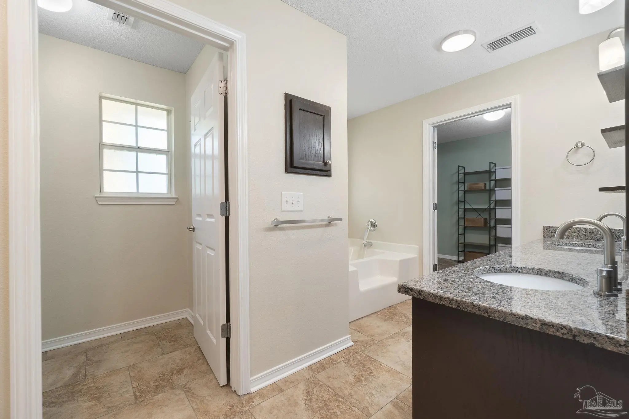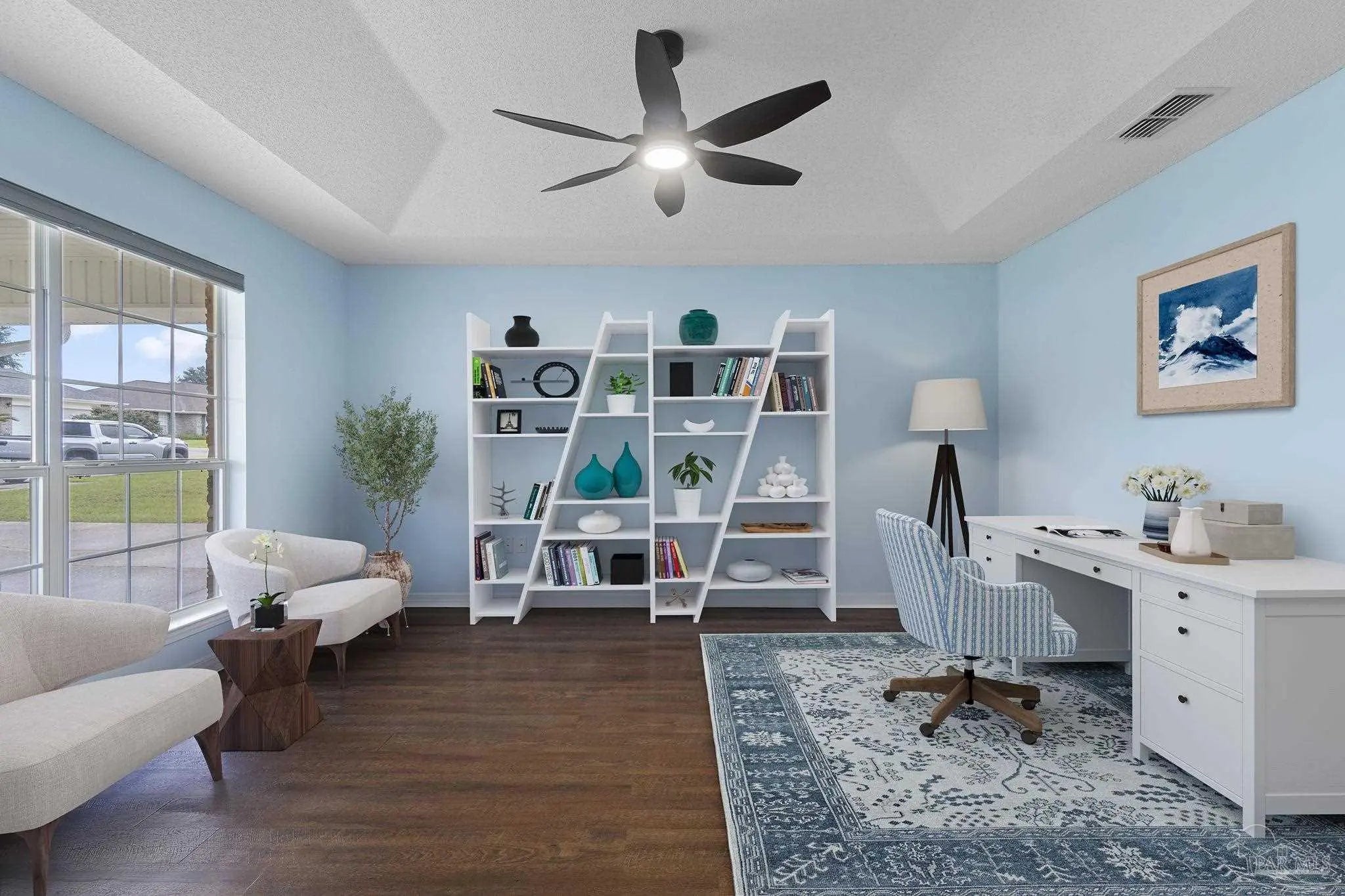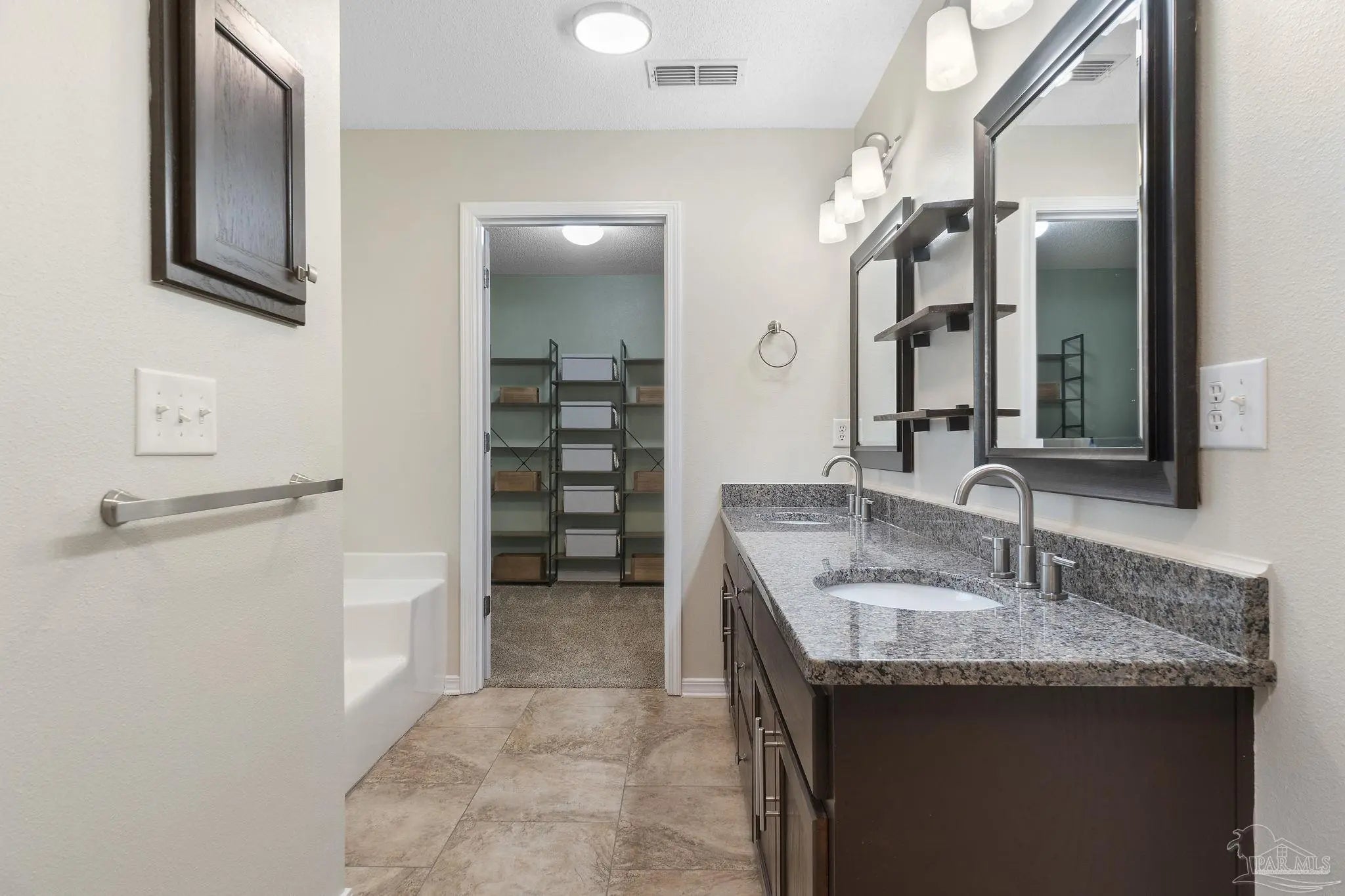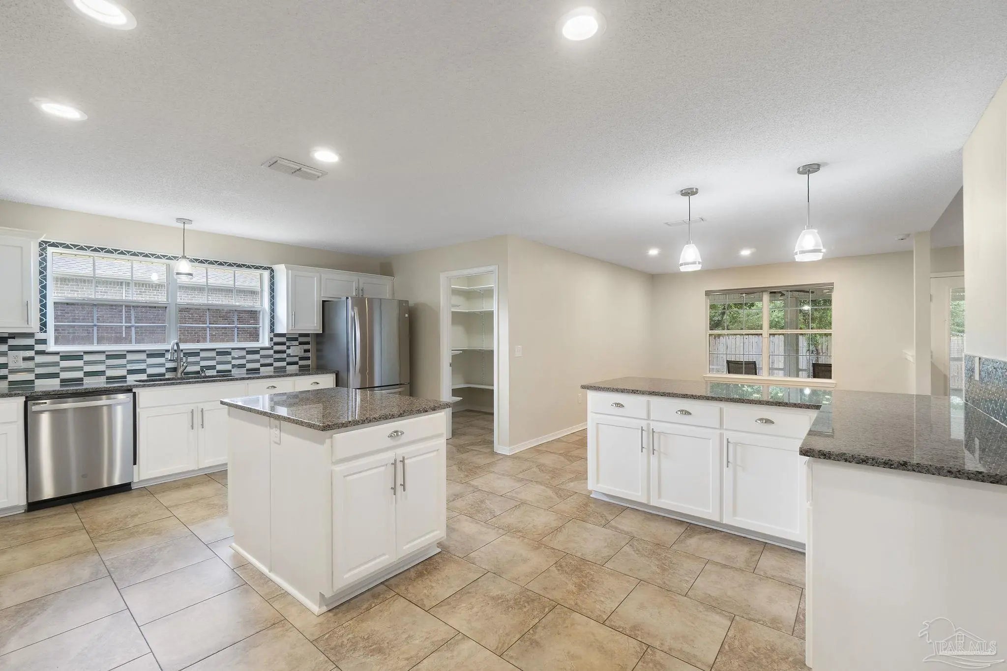 Welcome to this spacious 3,158 sq ft home with four bedrooms, three baths, PLUS A BONUS ROOM, a whole-house generator, & a wide front porch that sets a welcoming tone. Inside, soaring ceilings & abundant natural light highlight the open layout. A formal dining room flows into the kitchen, where granite counters, stainless steel appliances, a gas stove, an island, a breakfast bar, & an oversized pantry make it a true centerpiece for both cooking & entertaining. The adjoining breakfast nook & living room overlooks the screened back porch & backyard, creating a seamless connection between indoor & outdoor living. The primary suite boasts a tray ceiling, oversized closet, dual vanities, a soaking tub, a separate shower, & a private water closet. Three additional bedrooms & two full baths are located along the same hallway, providing comfort & convenience for family or guests. A bonus/office at the front of the home offers versatility for working remotely, homeschooling, or creating a quiet retreat. Set on a 0.25-acre lot, the fenced backyard is framed by mature trees, providing shade & privacy for relaxing evenings or weekend gatherings. The screened porch extends your living space outdoors, while an adjacent slab is ideal for a hot tub or outdoor seating area—perfect for summer cookouts, fall firepit nights, or simply unwinding under the stars. Located just minutes from shopping & dining, the Blackwater walking/biking path, historic Bagdad, & charming downtown Milton with its breweries & cafes, while commuters & travelers will appreciate quick access to I-10, Pensacola State College, Pace shopping, Pensacola’s beaches, downtown, & airport. This home delivers the space, comfort, & lifestyle you’ve been waiting for - whether hosting holiday gatherings, enjoying a quiet evening on the porch, or exploring nearby amenities, you’ll find every detail of this property designed to enrich daily living & create lasting memories.