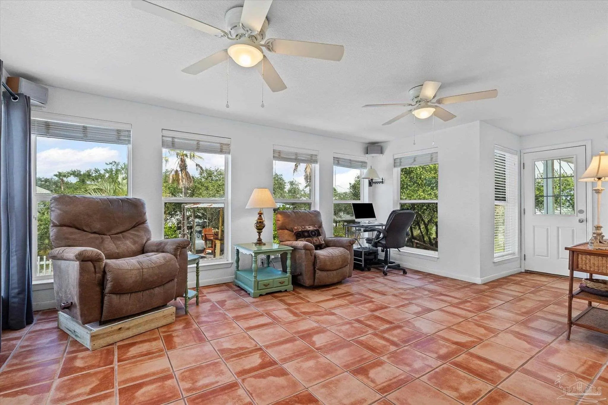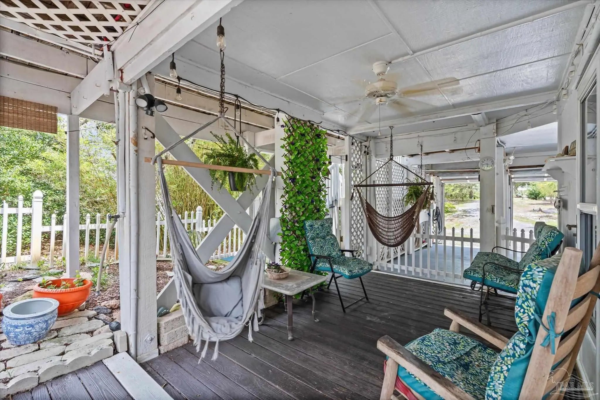 Waterfront Living on Ono Island! Experience coastal living at its finest in this 3-bedroom, 3-bath home located in the private, gated community of Ono Island with 24/7 security. Situated on a large canal-front lot with mature oak and palm trees, the home is situated well off the road and offers both stunning water views and privacy. The living room features soaring ceilings, a stone fireplace, and an abundance of natural light. An enclosed sunroom/family room provides additional living space with waterfront views. Upstairs, you will find two bedrooms, two baths, and a versatile shared sunroom currently used as a fourth bedroom and office. The outdoor space is a true retreat, featuring a covered patio, expansive sunny deck with an outdoor bar, and a private boardwalk leading to your own boathouse with lift. This home is ready for your personal touch and is perfect as a full-time residence or vacation getaway. Buyer to verify all information during due diligence.