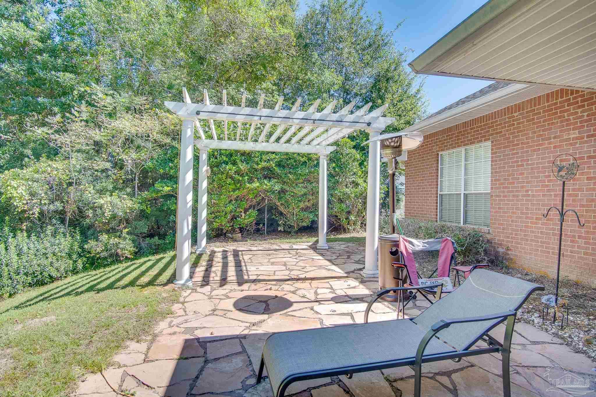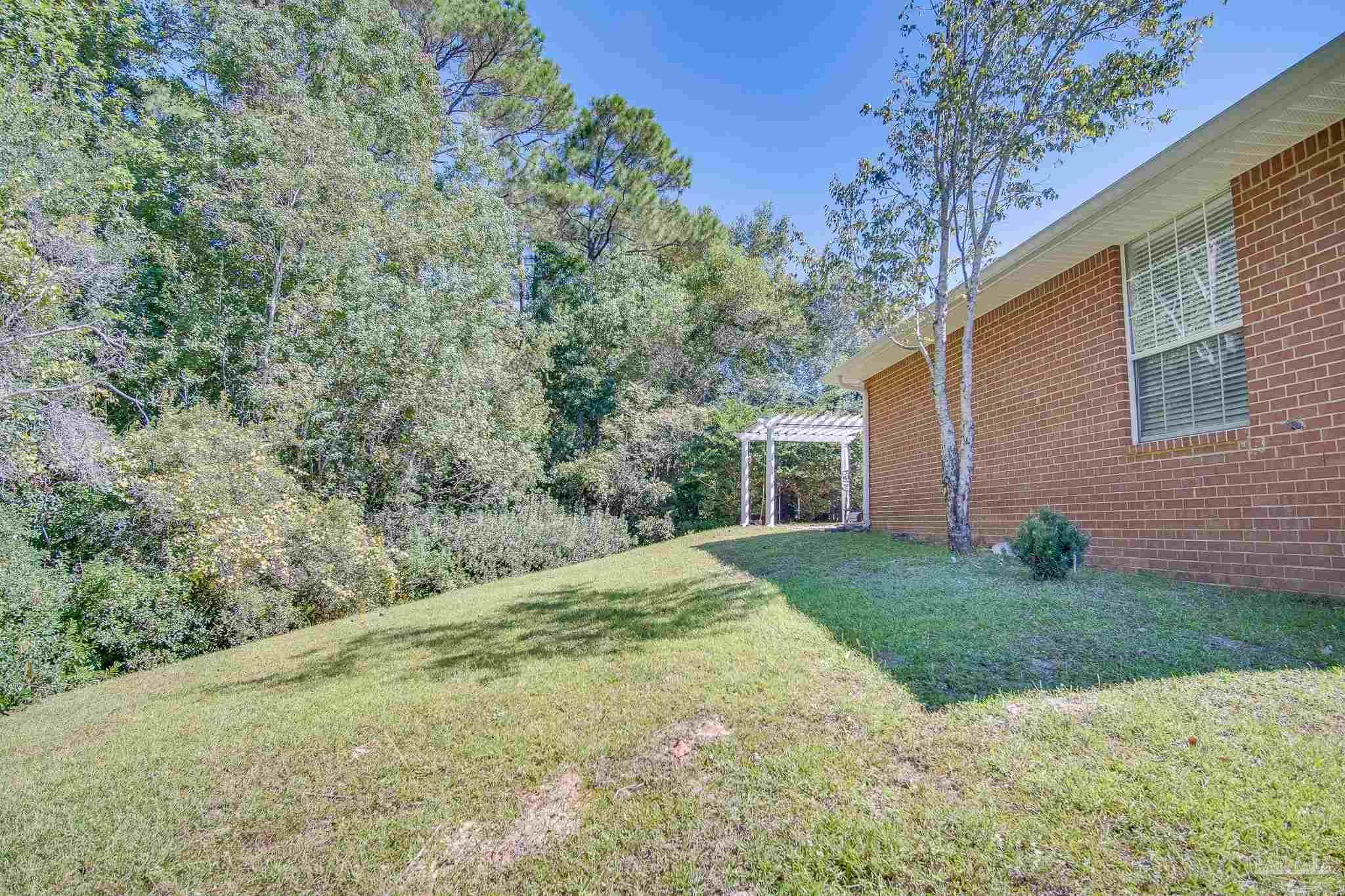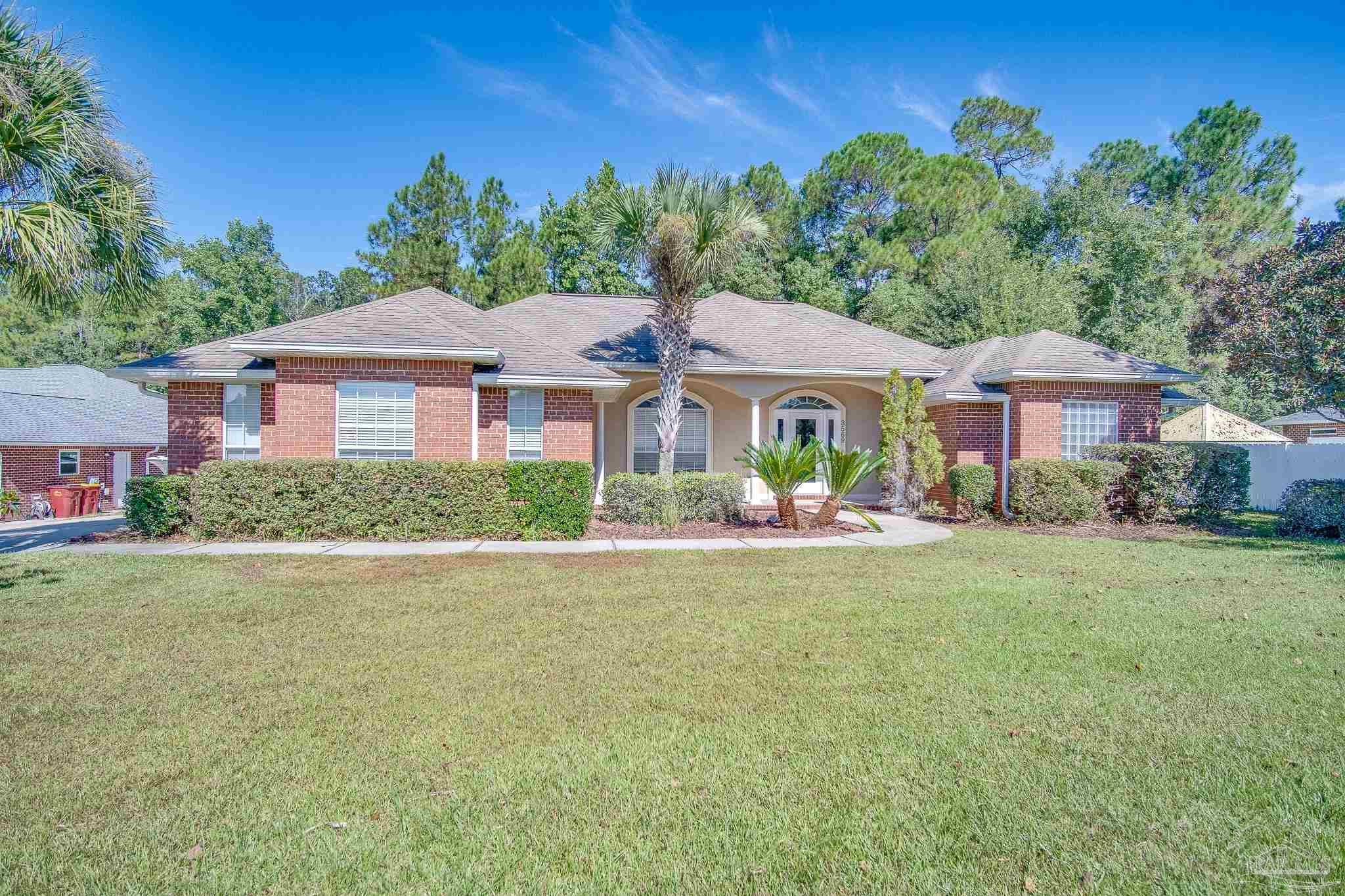 Beautiful 3-bedroom plus office home in Pace, conveniently located off Woodbine Rd for an easy commute to Pensacola, I-10, and nearby shopping! This home features an oversized side-entry double car garage, 10-foot ceilings, Spanish lace walls and ceilings, arched doorways, crown molding, and elegant tile in the foyer and formal dining room. The spacious kitchen offers granite countertops, plenty of cabinet and counter space, a built-in microwave, electric stove, refrigerator, dishwasher, pantry, and a breakfast bar overlooking the carpeted family room with a decorative tiled fireplace. The primary bedroom suite includes two vanities, a garden tub, a walk-in shower, and TWO walk-in closets. Inside laundry room with washer/dryer hookups. Step outside to the open patio with a beautiful pergola. Yard is not fenced. Pet-friendly with owner approval and a $250 non-refundable pet fee per pet (aggressive breeds not considered). Ready for move-in on 9/19. Residents are required to have renter liability insurance, which can be added for $11.95/month, or you can opt into the Resident Benefits Package (RBP) for $45/month, which includes renter liability insurance, HVAC air filter delivery, and on-demand pest control. More details in the application.