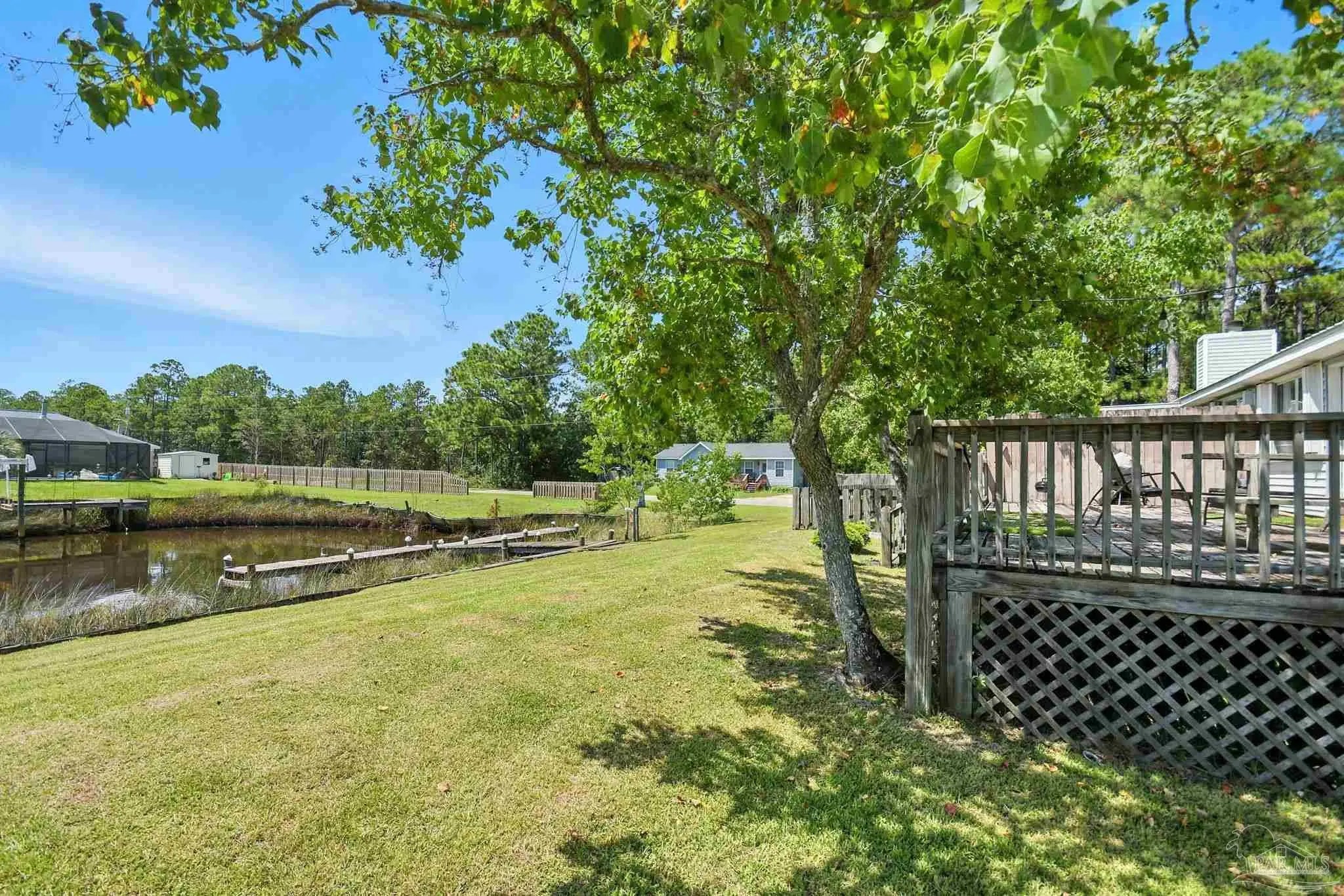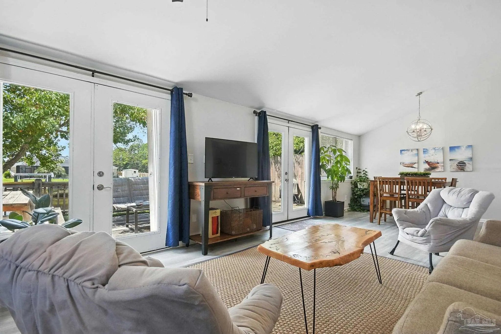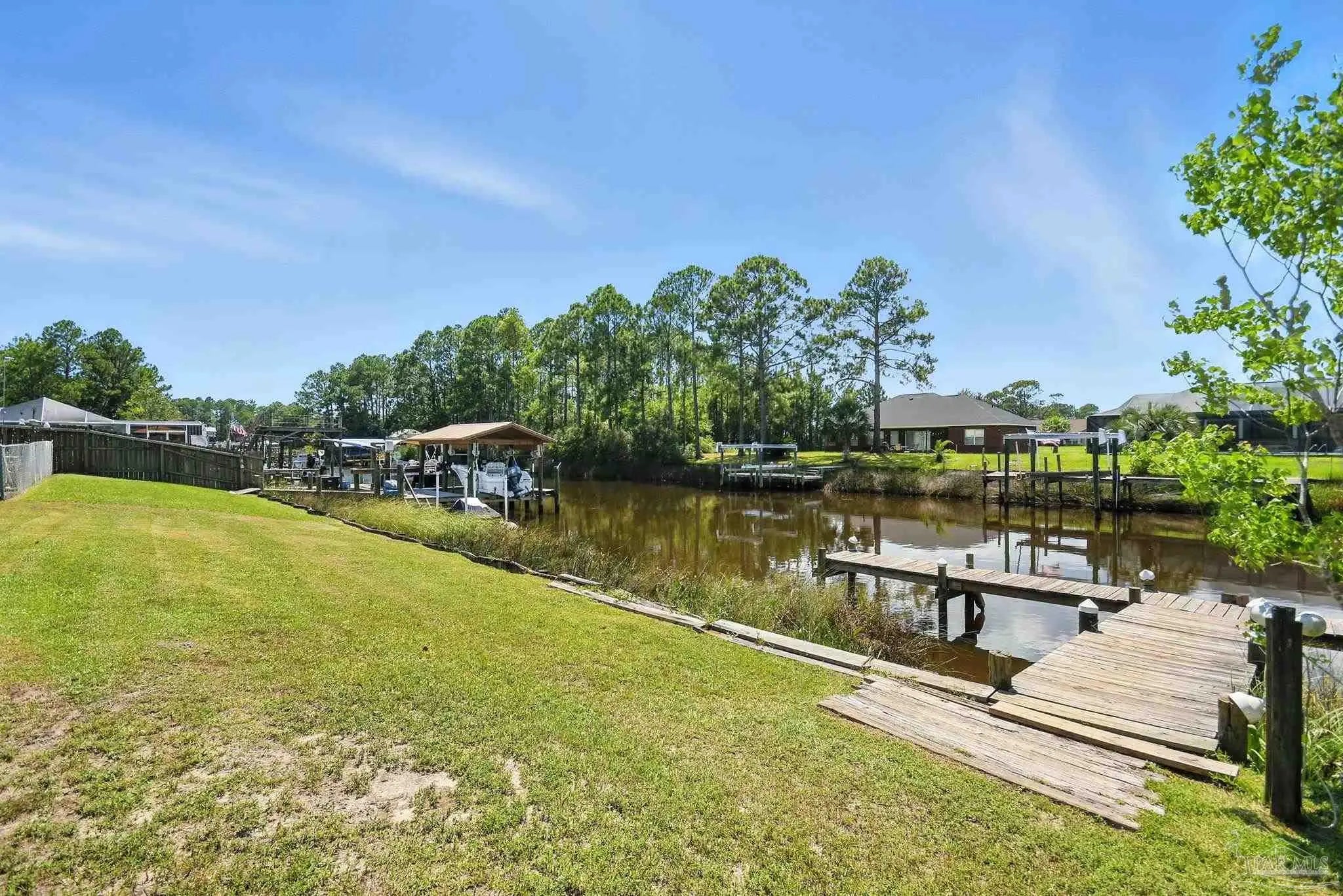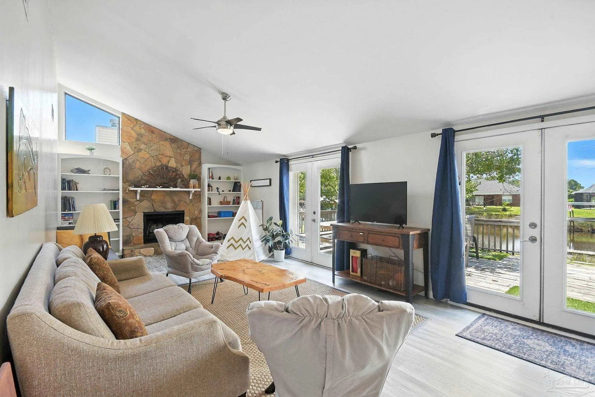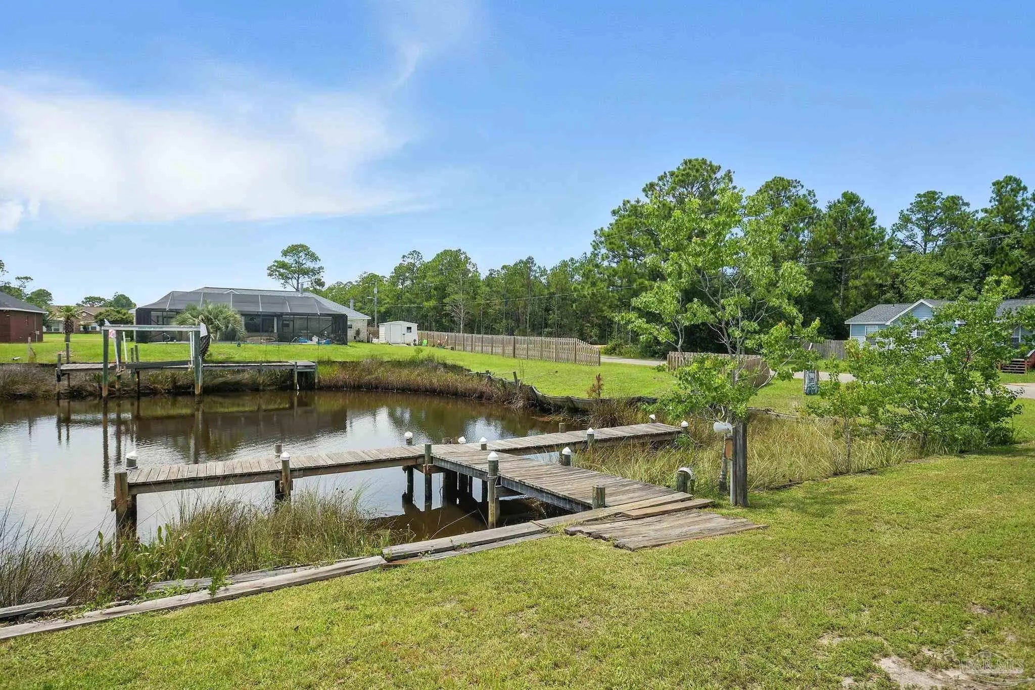 Waterfront under $300K! This 2-bedroom, 2-bath duplex with 1,312 sq ft sits right on the water and comes with its own dock—perfect for boating, paddle boarding, kayaking, or just relaxing on the deck with sunset views. The dock sits on 4 ft of water, so it’s boat-lift ready, and you’re only minutes from the bay. Inside, you’ll find vaulted ceilings, a wood-burning fireplace, French doors that open to a large deck, and a split-bedroom layout with double vanities in each bathroom. Conveniently located near I-10, you’ll have easy access to Pensacola, Gulf Breeze, and Navarre. Currently used as a short-term rental/Airbnb, this property can be your waterfront getaway, investment, or both—all for under $300,000.