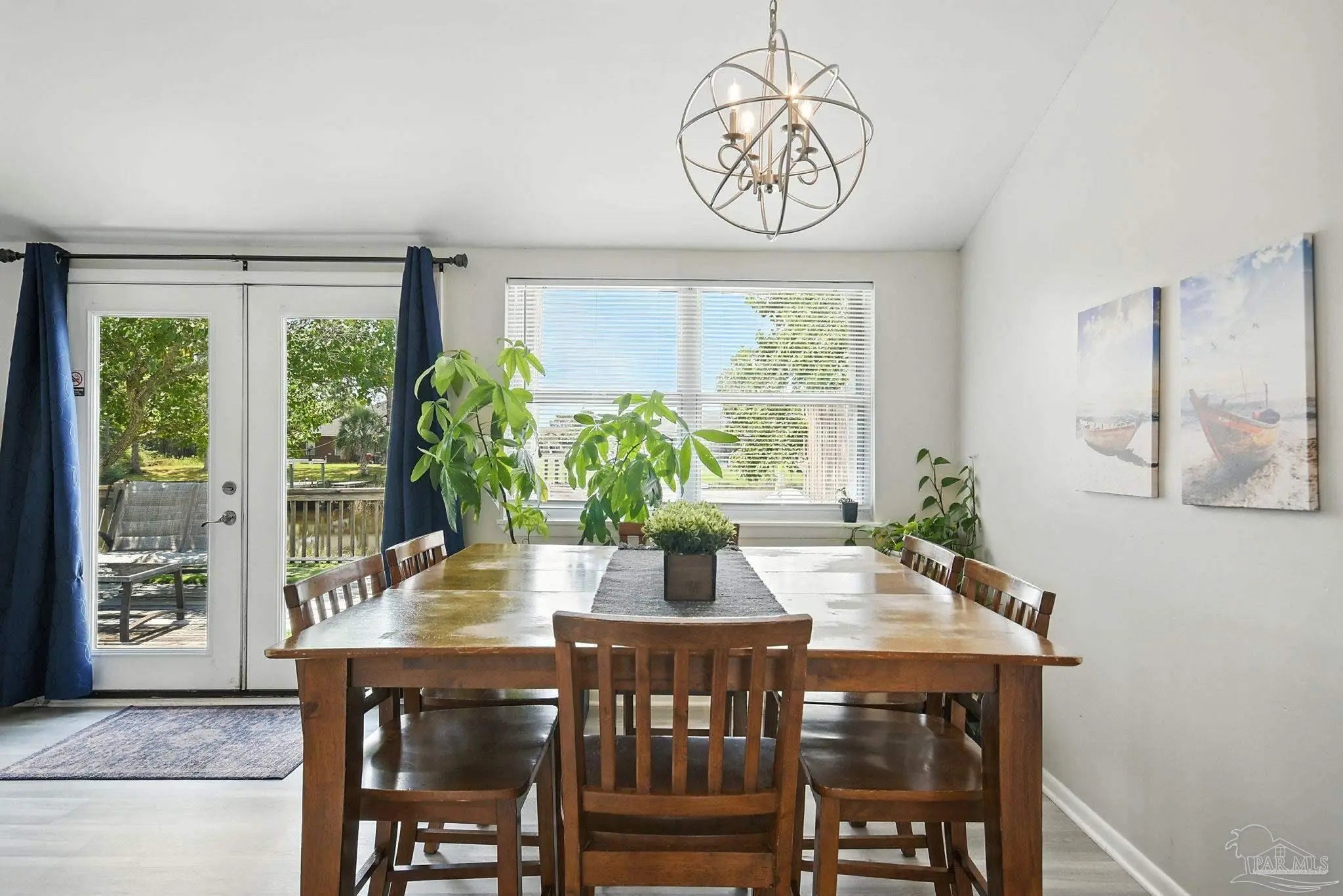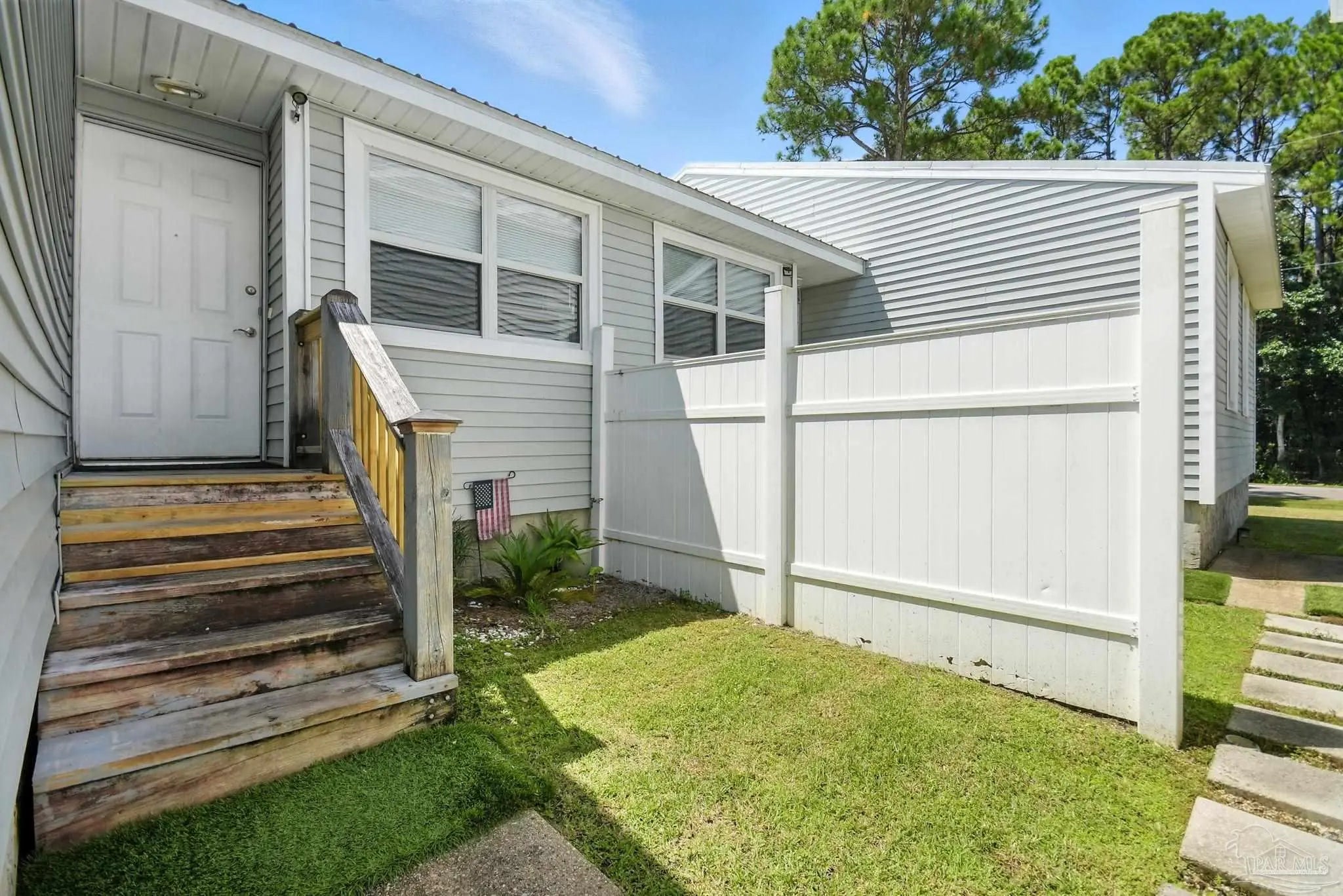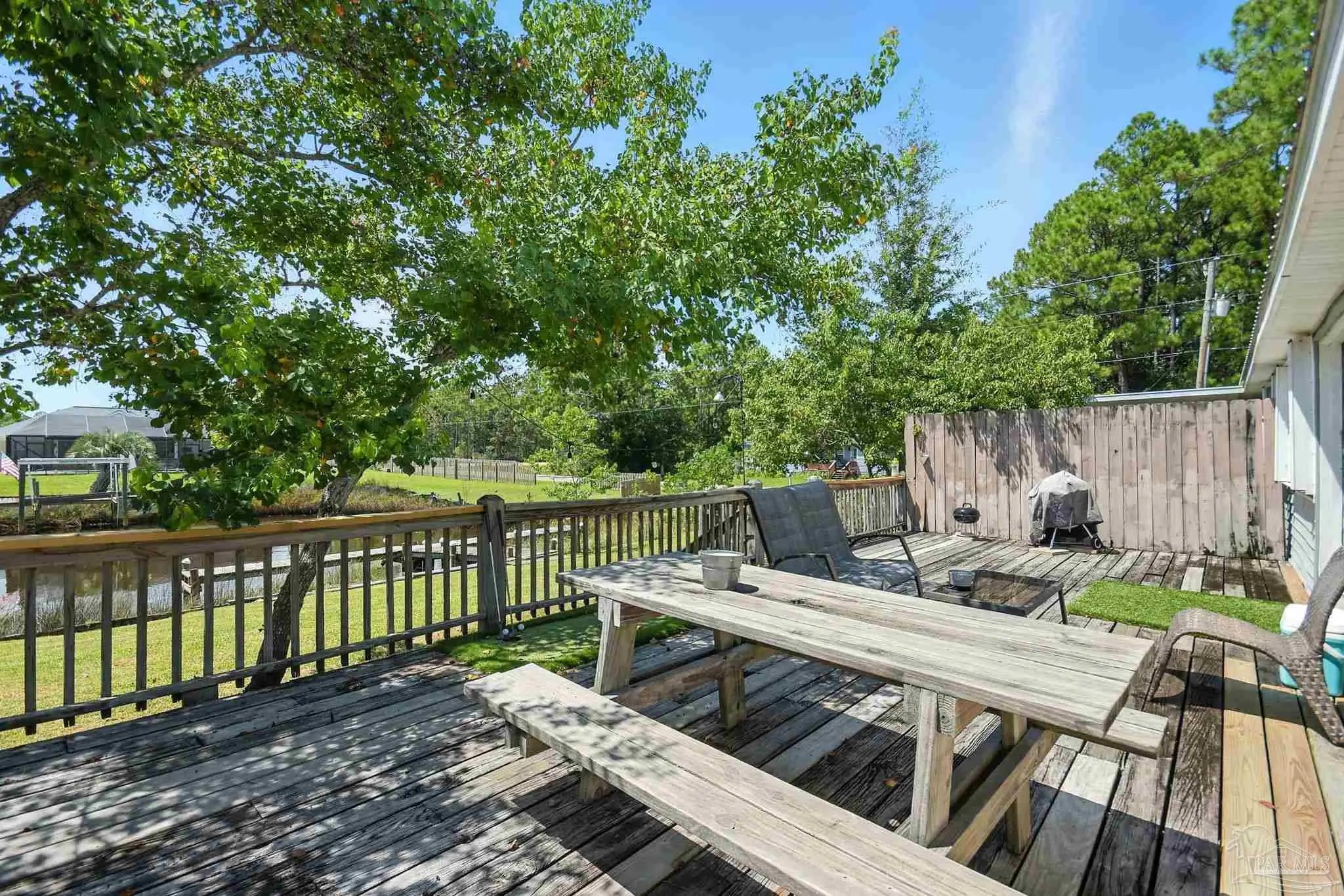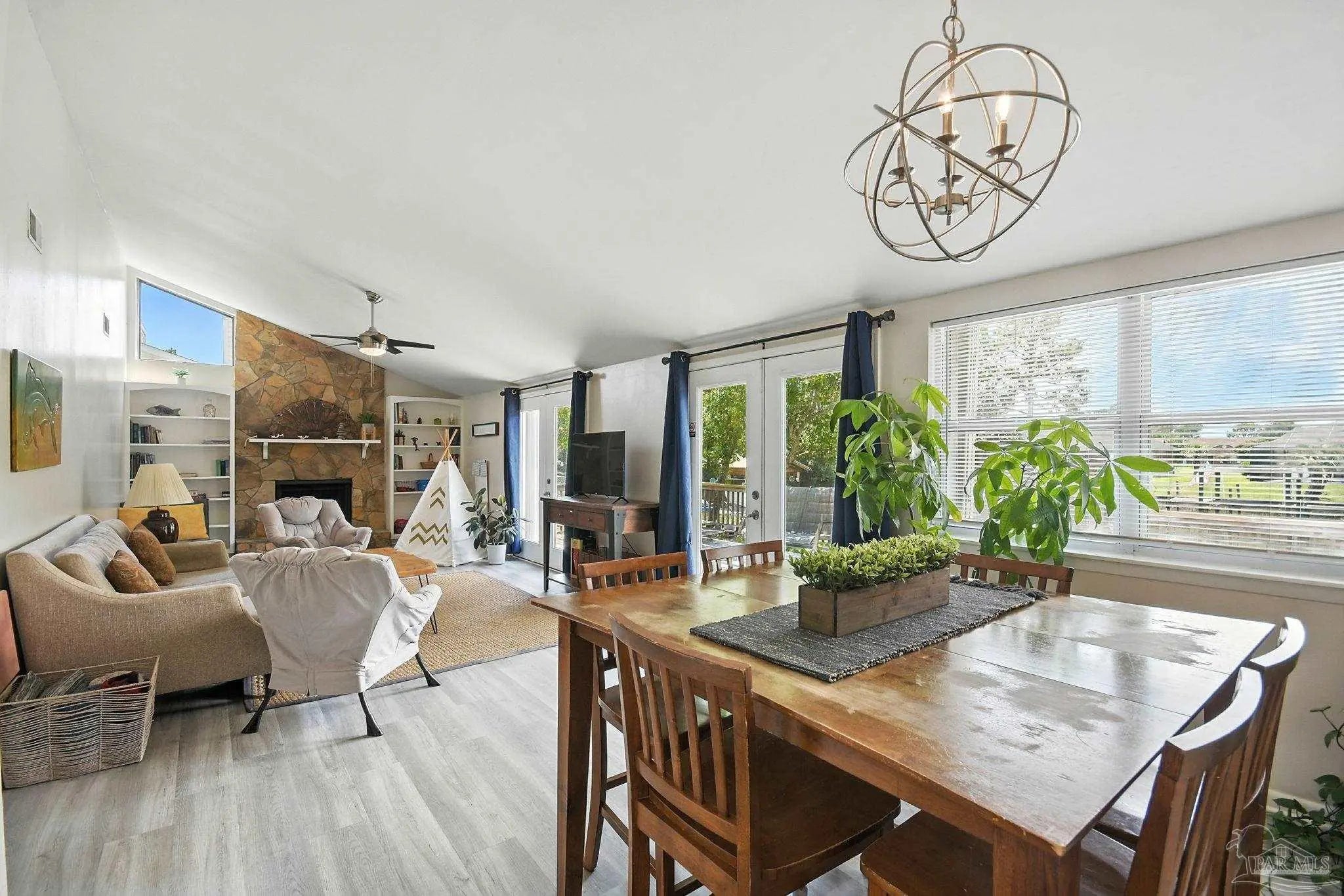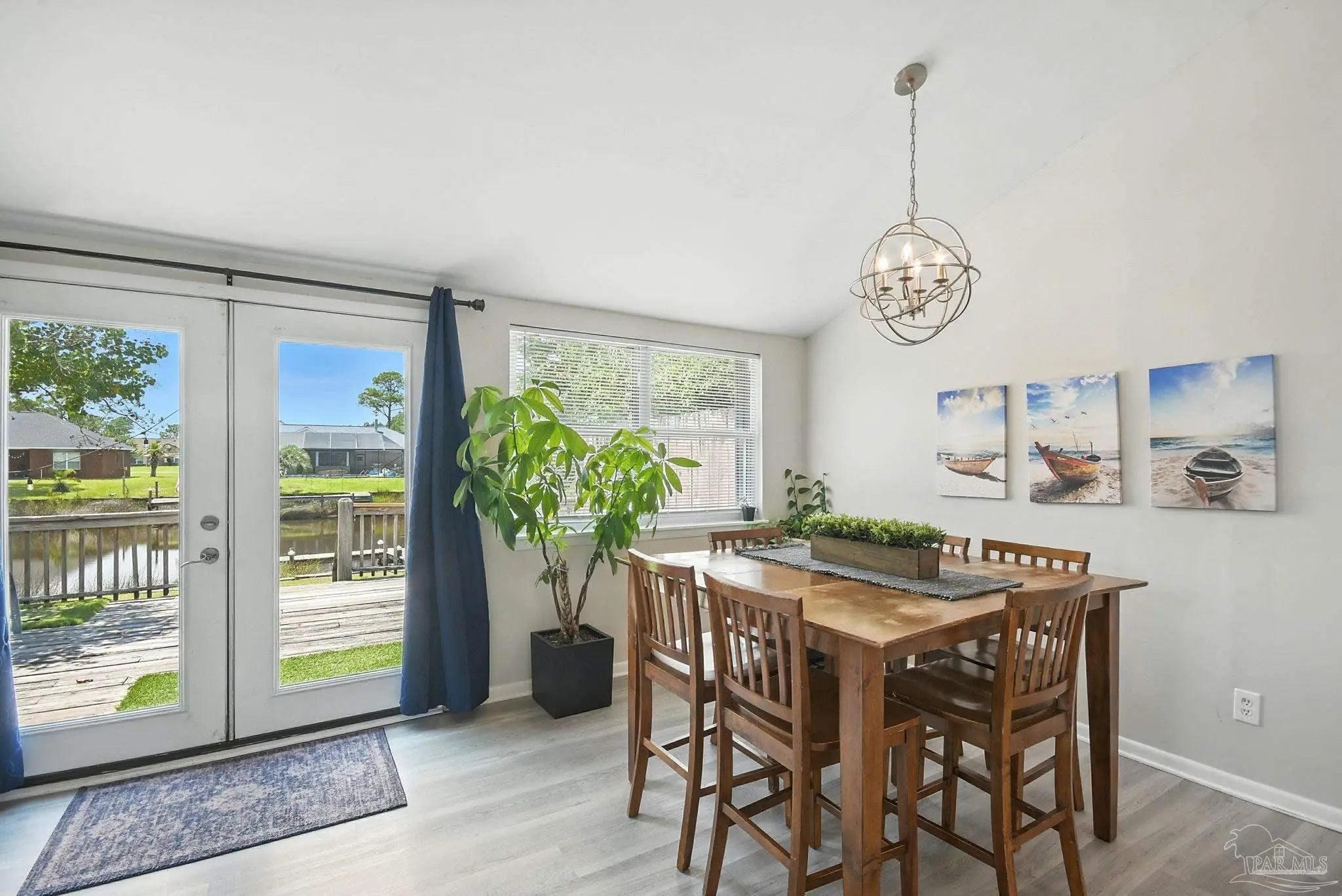 Waterfront under $300K! This 2-bedroom, 2-bath duplex with 1,312 sq ft sits right on the water and comes with its own dock—perfect for boating, paddle boarding, kayaking, or just relaxing on the deck with sunset views. The dock sits on 4 ft of water, so it’s boat-lift ready, and you’re only minutes from the bay. Inside, you’ll find vaulted ceilings, a wood-burning fireplace, French doors that open to a large deck, and a split-bedroom layout with double vanities in each bathroom. Conveniently located near I-10, you’ll have easy access to Pensacola, Gulf Breeze, and Navarre. Currently used as a short-term rental/Airbnb, this property can be your waterfront getaway, investment, or both—all for under $300,000.
