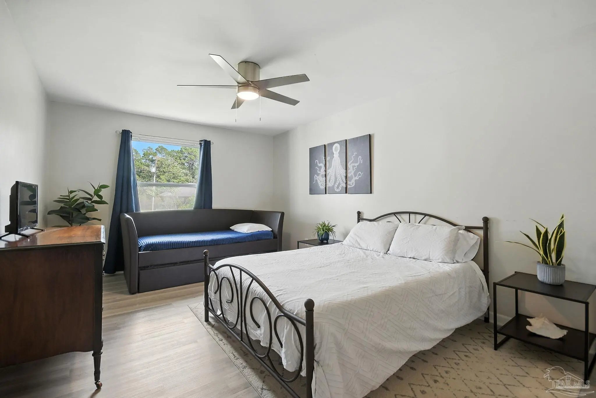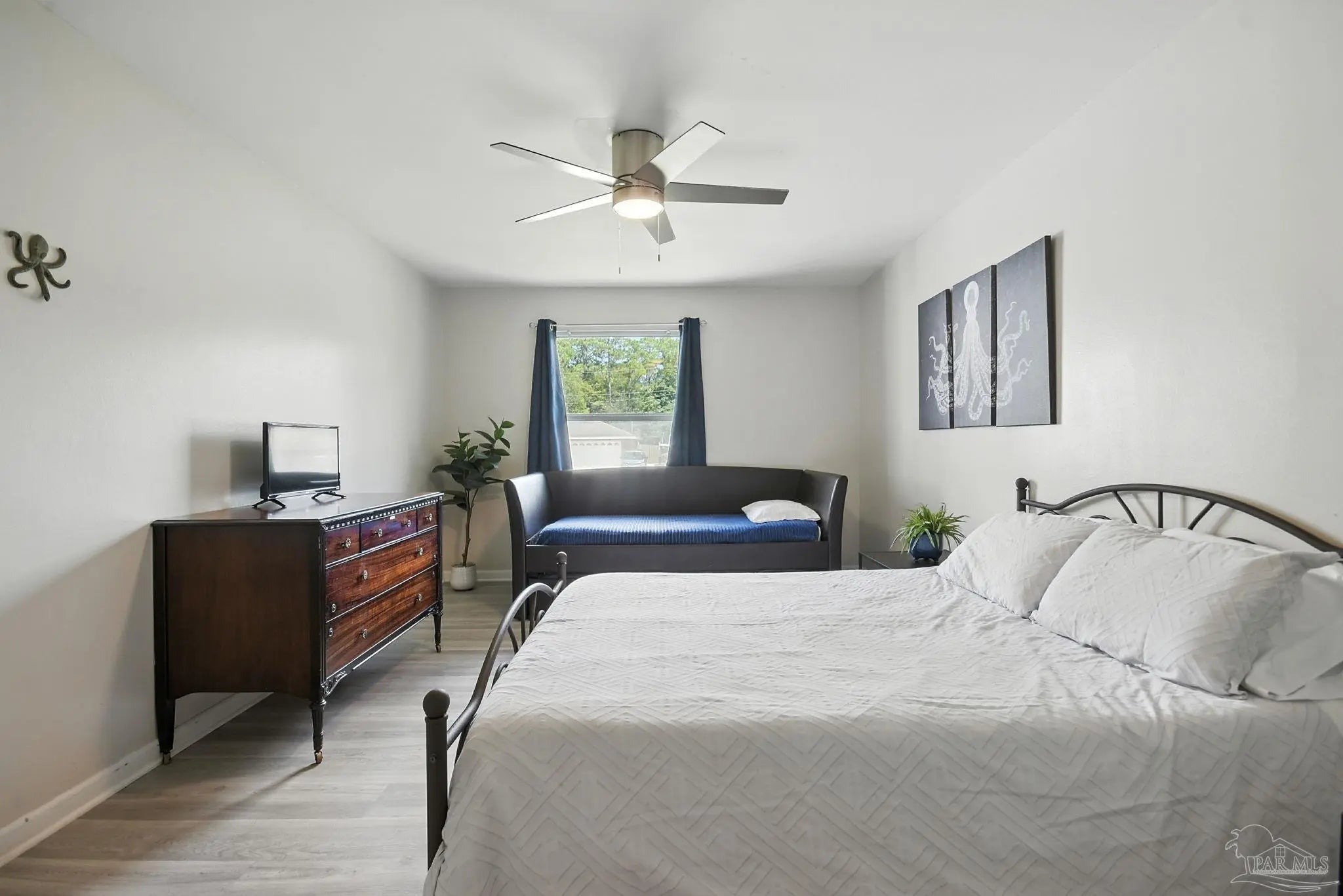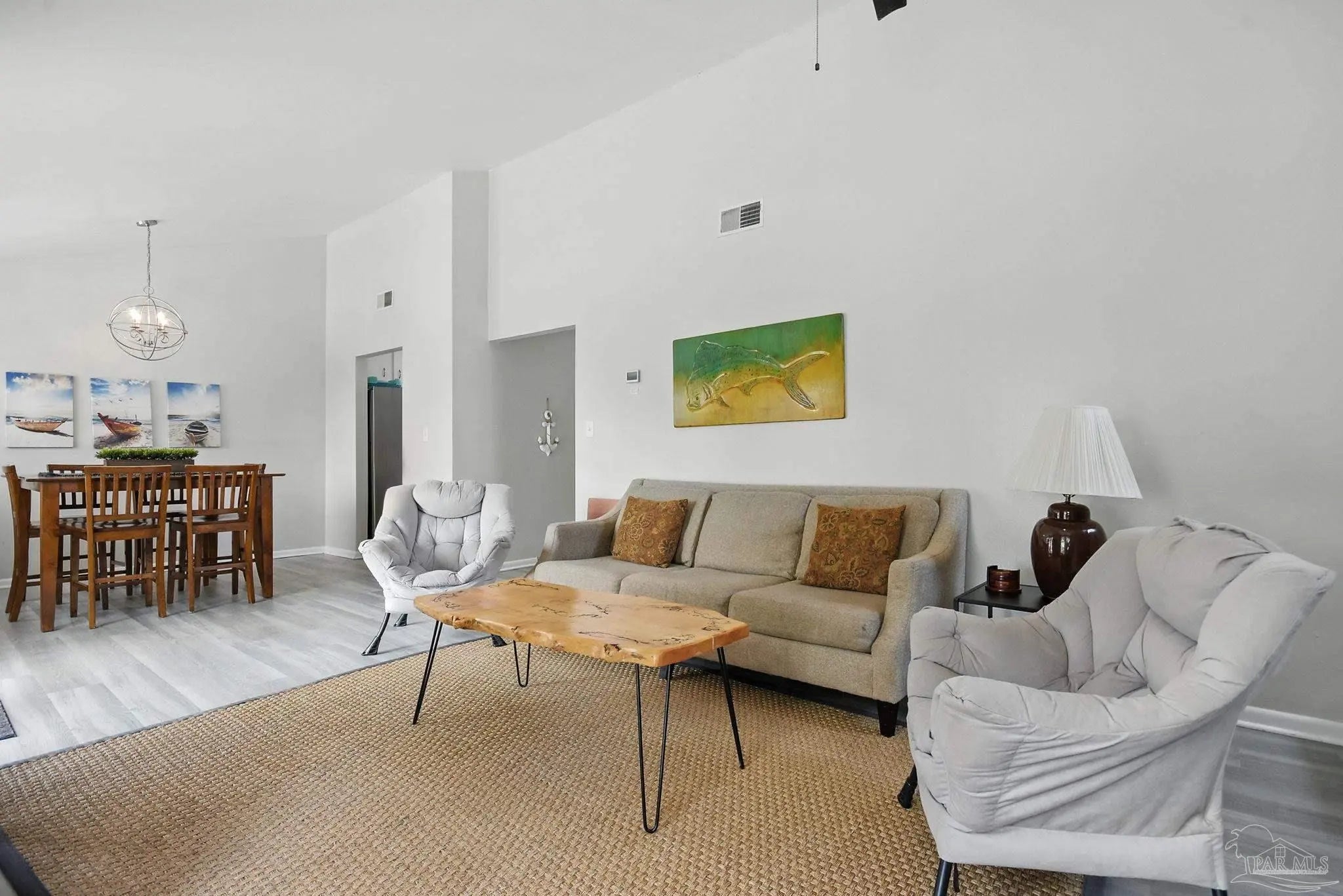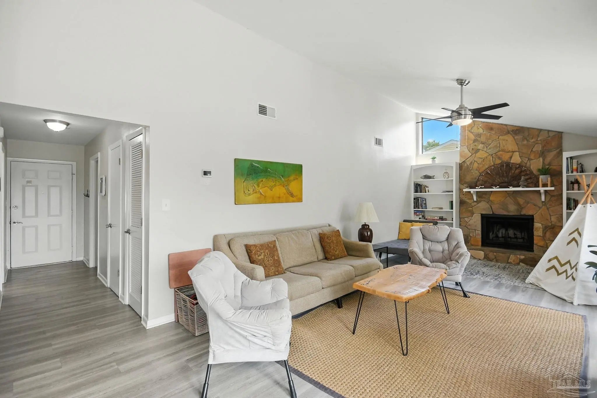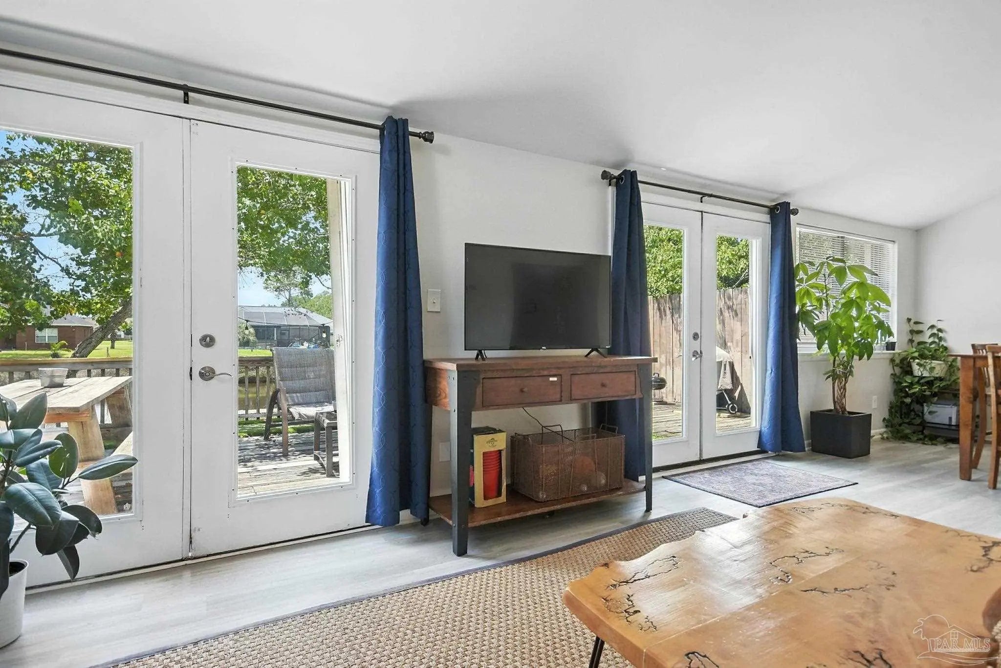 Waterfront under $300K! This 2-bedroom, 2-bath duplex with 1,312 sq ft sits right on the water and comes with its own dock—perfect for boating, paddle boarding, kayaking, or just relaxing on the deck with sunset views. The dock sits on 4 ft of water, so it’s boat-lift ready, and you’re only minutes from the bay. Inside, you’ll find vaulted ceilings, a wood-burning fireplace, French doors that open to a large deck, and a split-bedroom layout with double vanities in each bathroom. Conveniently located near I-10, you’ll have easy access to Pensacola, Gulf Breeze, and Navarre. Currently used as a short-term rental/Airbnb, this property can be your waterfront getaway, investment, or both—all for under $300,000.