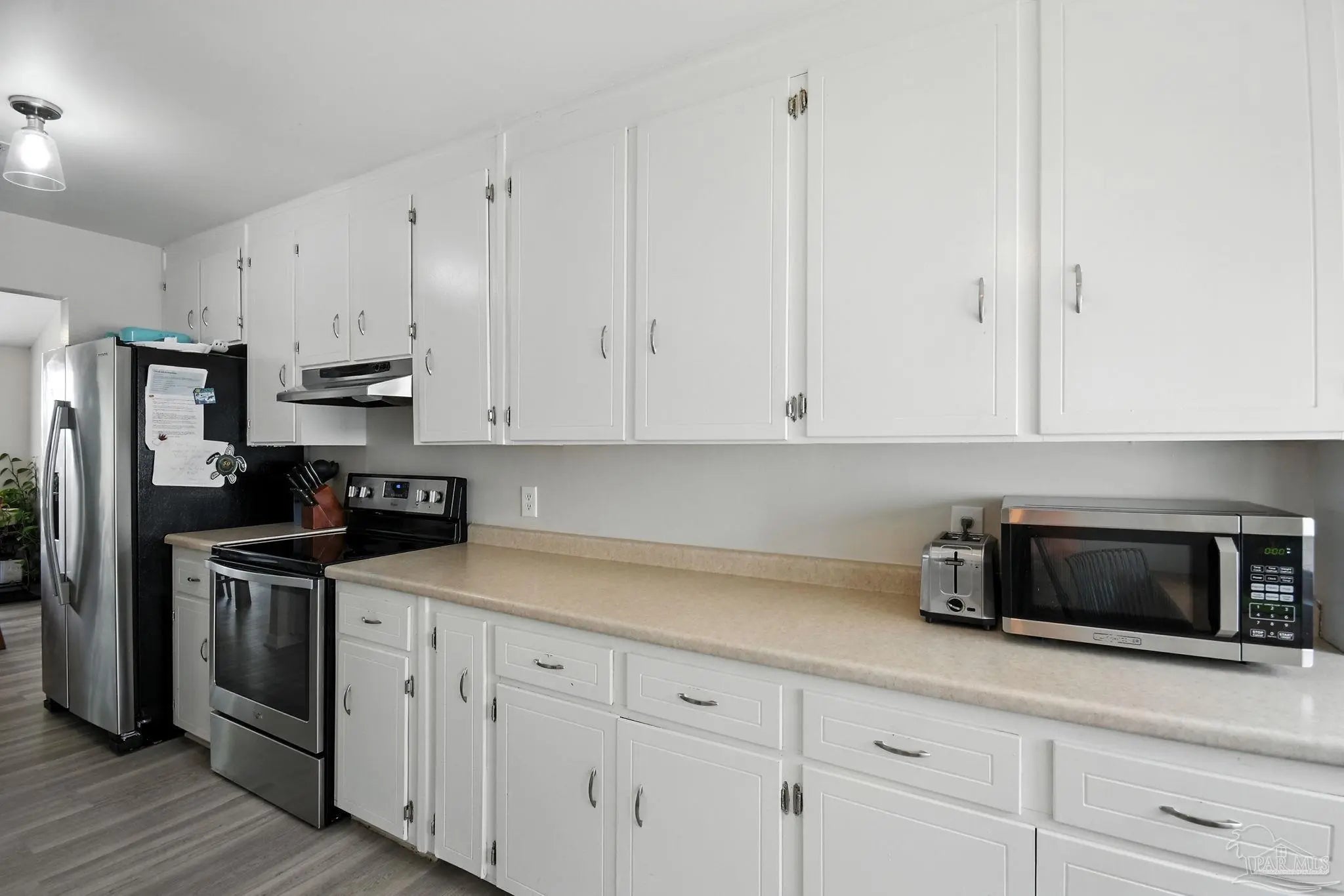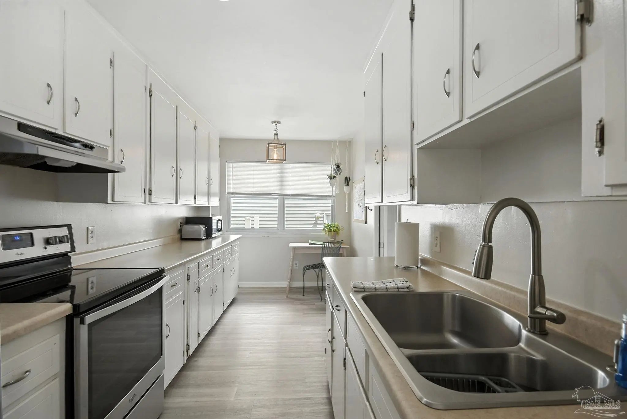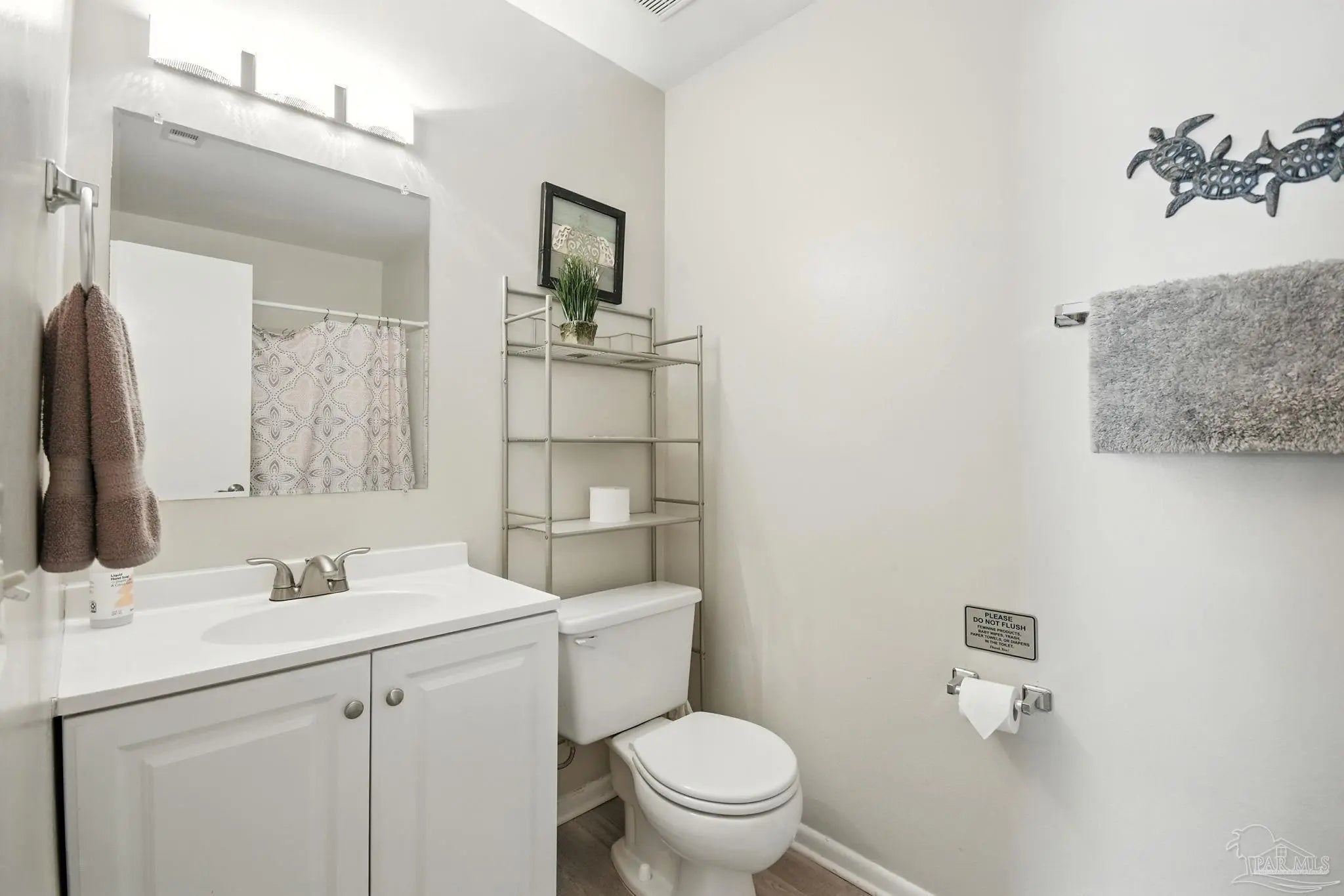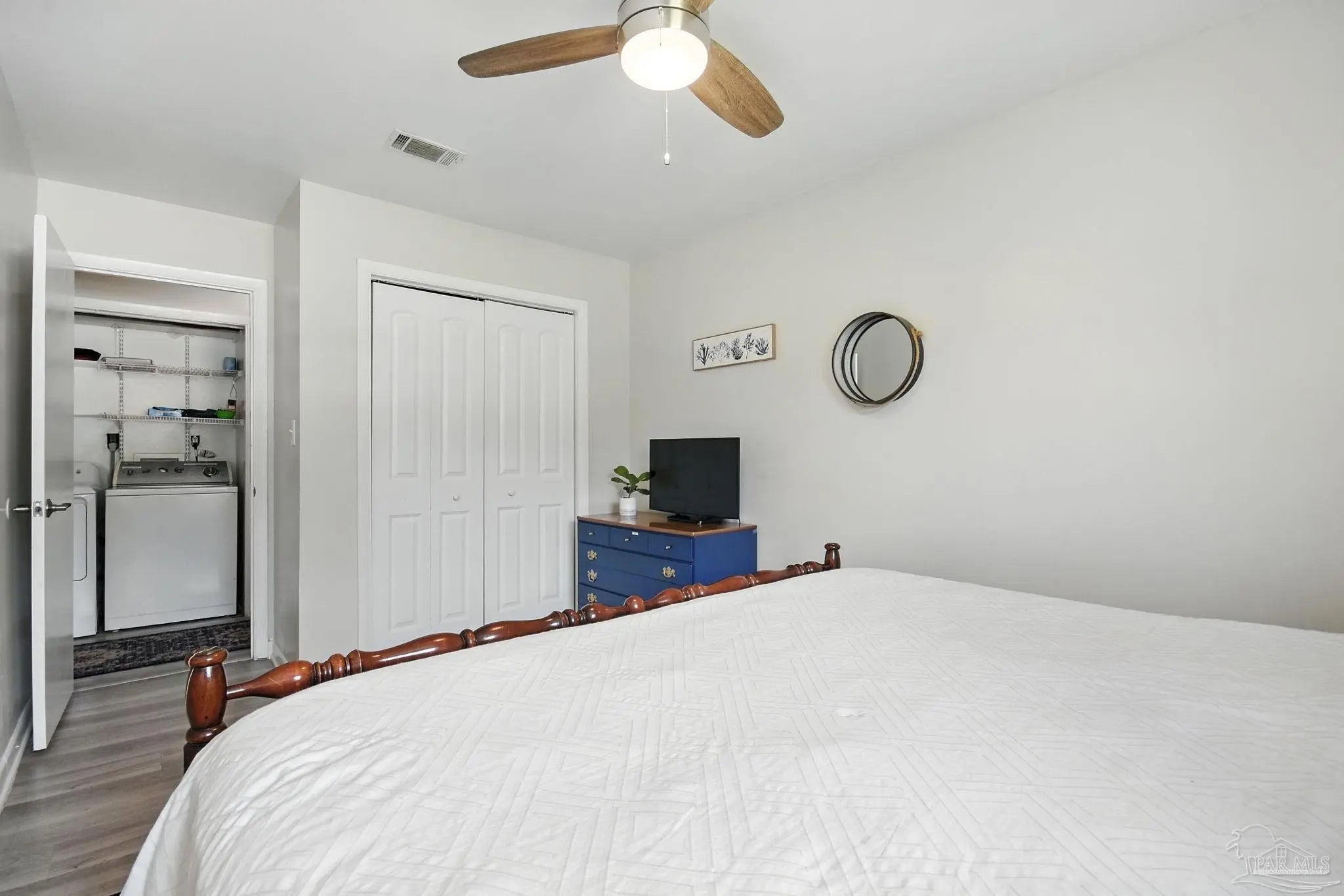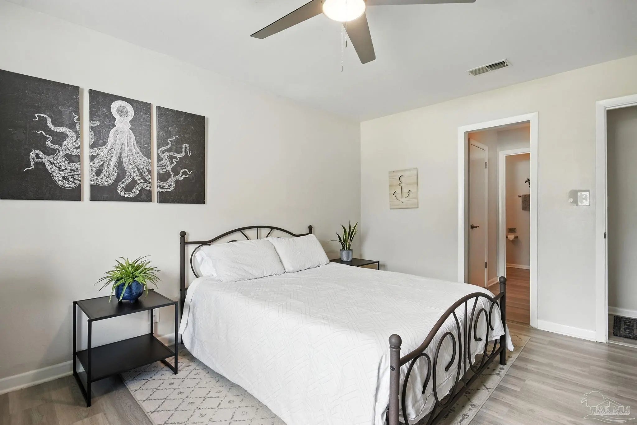 Waterfront under $300K! This 2-bedroom, 2-bath duplex with 1,312 sq ft sits right on the water and comes with its own dock—perfect for boating, paddle boarding, kayaking, or just relaxing on the deck with sunset views. The dock sits on 4 ft of water, so it’s boat-lift ready, and you’re only minutes from the bay. Inside, you’ll find vaulted ceilings, a wood-burning fireplace, French doors that open to a large deck, and a split-bedroom layout with double vanities in each bathroom. Conveniently located near I-10, you’ll have easy access to Pensacola, Gulf Breeze, and Navarre. Currently used as a short-term rental/Airbnb, this property can be your waterfront getaway, investment, or both—all for under $300,000.