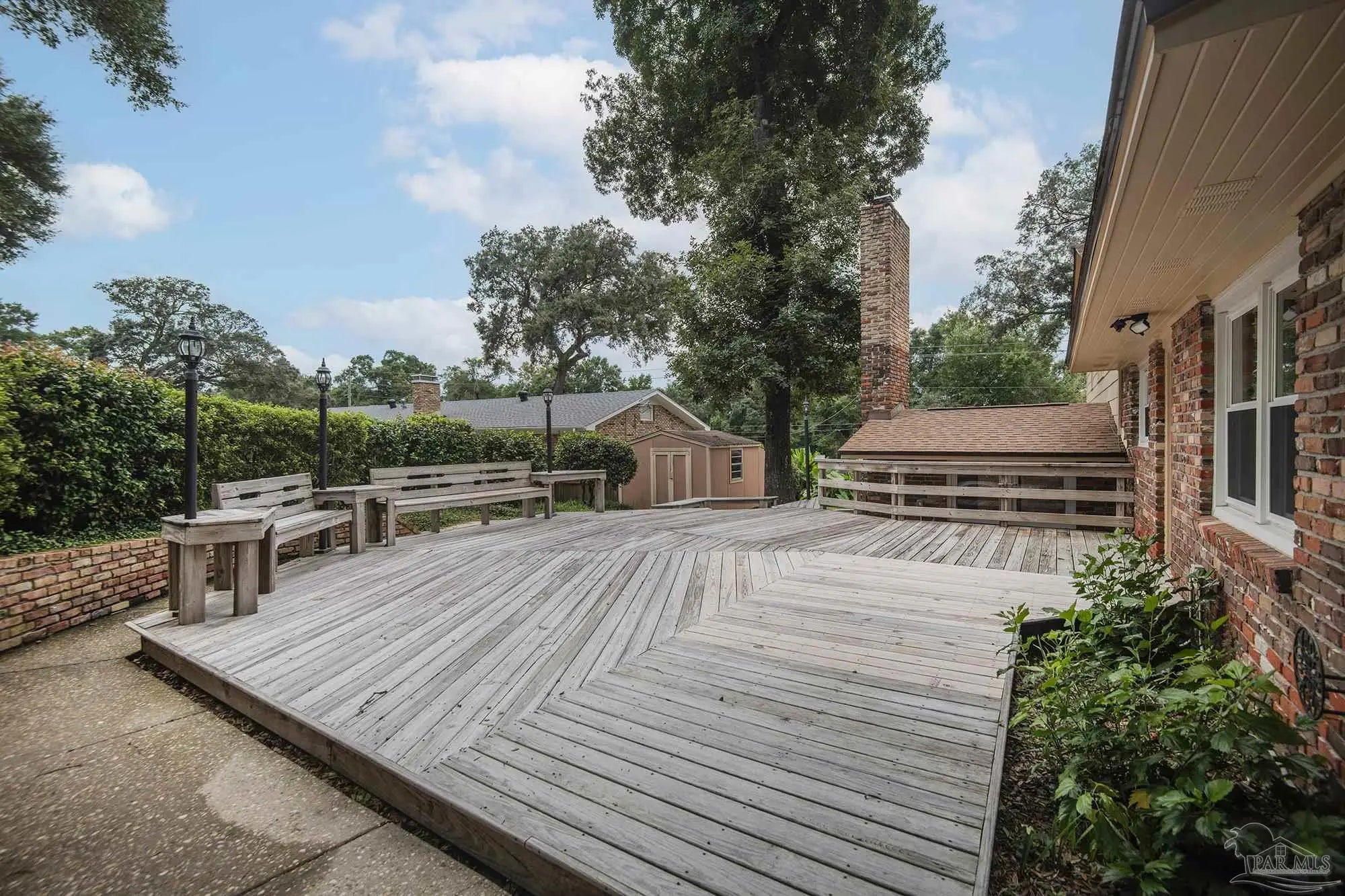 A real opportunity in Cordova Park for a great home with private space for remote working. This home has a lot to offer with 4 bedrooms, 2.5 baths along with a beautiful living room and family room. As you enter you will find the family room with brick fireplace for those cozy evenings. Go up a half flight of stairs and you have a spacious living room with bay window, formal dining room and kitchen. The kitchen offers upgraded kitchen cabinets installed in 2016 with quartzite counter tops, Kitchen Aid double ovens and Bosch dishwasher replaced in 2020, range hood in 2019 and Wolff gas cooktop in 2024. You will also find a reverse osmosis water filter installed in 2025. There are a lot of original, beautiful wood floors in the living areas and additional bedrooms. The main bedroom suite had a bath update in 2010, doubled in size, water closet with pedestal sink, large shower, new cabinets with granite countertops and new lighting. The hall bathroom was also updated in 2011 with new cabinets, granite countertops and new tile. Now, enter through the garage to the amazing space that has so much to offer, it could easily be turned into the perfect home office area, home school space, exercise room and could be your SAFE room as it has 2x6 studs and hurricane shutters. It has a side entrance and its own HVAC. The roof was replaced in 2019, tankless hot water in 2014, 20 gallon hot water in garage in 2020 and the home was re-piped in 2011(except for studio/office and some areas in garage). Outside is perfect for entertaining with an oversized deck and patio area. There is a yard building for all your tools and sprinkler system with a well for low cost watering. A few more hurricane extras are rafter tail tie-downs, hurricane film added to sliding glass door, impact storm door, hurricane braced garage doors, impact glass for bay window and dining room. Also you will note the two power poles off the back (2/400-amp power) to the home.