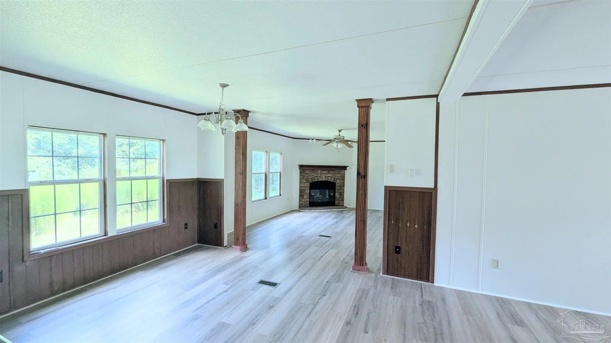 **Welcome to Your Country Retreat!** Nestled on a serene 2-acre lot, this charming 4-bedroom, 2-bathroom home blends modern comfort with the beauty of nature. As you approach the property, you'll be captivated by the lush, wooded views that create a picturesque and peaceful ambiance. Step inside to discover fresh paint and new luxury vinyl plank flooring that flows seamlessly throughout the open floor plan, enhancing the inviting atmosphere. The spacious living area transitions effortlessly into a bright kitchen featuring a center island and plenty of cabinetry for all your storage needs. The kitchen/dining area combo makes it ideal for entertaining guests while a cozy den with a fireplace provides additional space to unwind or enjoy quiet evenings at home. Additionally, the plentiful windows flood the space with natural light, adding to the overall warmth and welcoming vibe. The large primary suite is a true sanctuary complete with a spacious walk-in closet and a generous ensuite bath complete with a double sink vanity, walk-in shower, and a luxurious soaking tub. Additionally, the other well-sized bedrooms offer comfortable accommodations for guests or can easily be transformed into a home office to suit your lifestyle needs. Take a moment to relax on your charming front deck, sipping morning coffee while soaking in the tranquility of your private surroundings, accompanied by the soothing sounds of nature. This home is more than just a living space; it’s a lifestyle choice that embraces peaceful country living. Don’t miss the opportunity to own this private escape in the woods, where serene landscapes await you. Make this beautiful property your own and enjoy the ideal balance of comfort and nature. CALL and schedule your showing TODAY and step into a world of beauty and tranquility—your country living dream is just a visit away! Buyer to verify all information during due diligence.