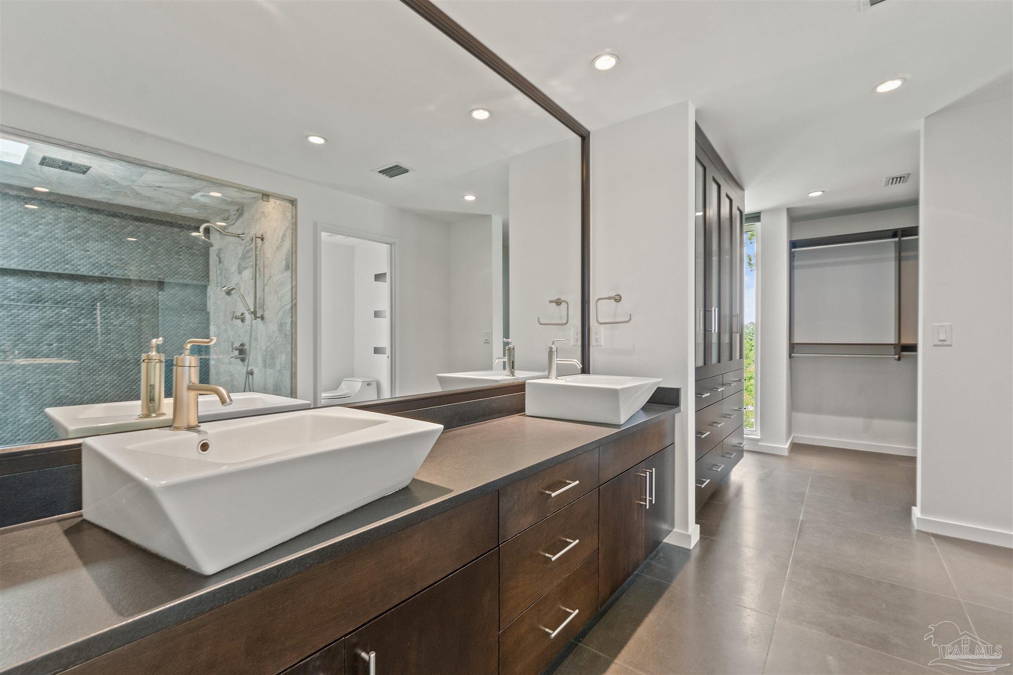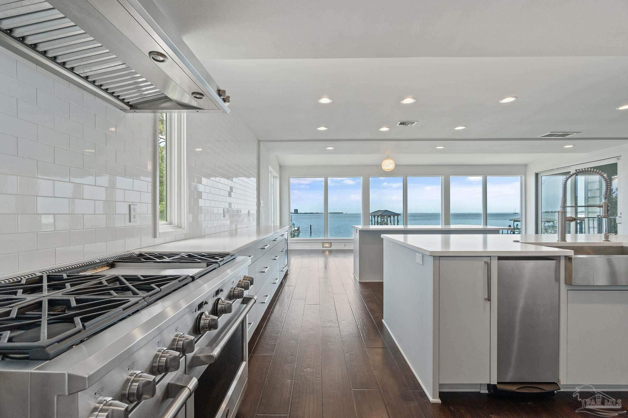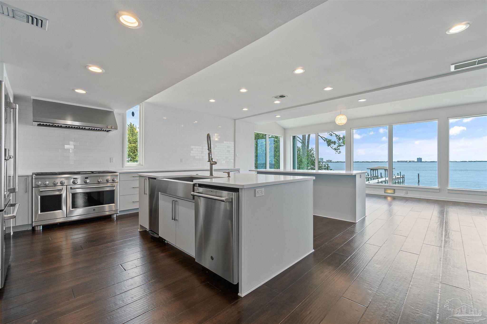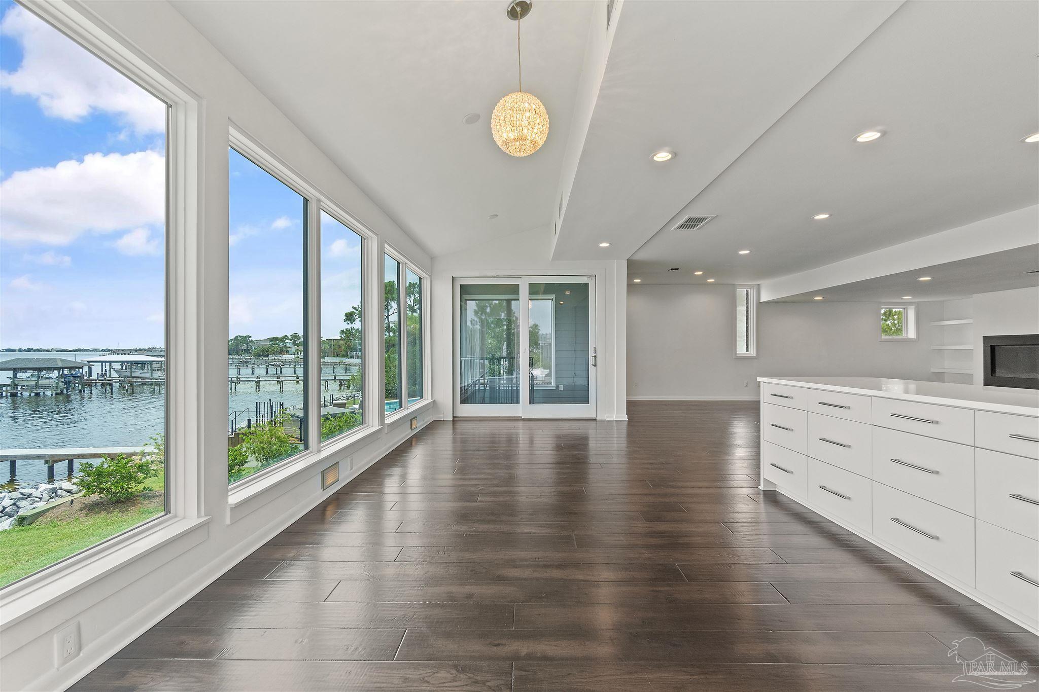 COME LIVE THE DREAM. This modern home was extensively renovated with timeless designs. It features a deep water boat dock! Bring your vessel. Enjoy waterfront living at it finest just 15 minutes to downtown and 5 minutes to the beach. The home is built with concrete and steal and located in Gulf Breeze Proper, in the 32561. Features include every bedroom with a bath and the Master suite has a multihead luxury spa style walk in shower.The wide open waterfront views are feature from all primary rooms. Sunsets and Sunrise are to be enjoyed daily They evening lights of Pensacola Beach provide an ambiance you are sure to enjoy. The kitchen features gas cooking and a gourmet set up with storage islands with a full size pantry for pots and pans and food storage. The is plenty of nautical storage on site and a work out room. The home is close to Publix and has walkability to A+ rated schools, parks, Andrews Institute, sushi bars and restaurants. There is a covered boat slip with lift will hold up to 10,000 lbs with full utilities on the dock. Yard care and mowing to be provided by the landlord. House may be purchased for $2,300,000 and is also listed for sale in the MLS.