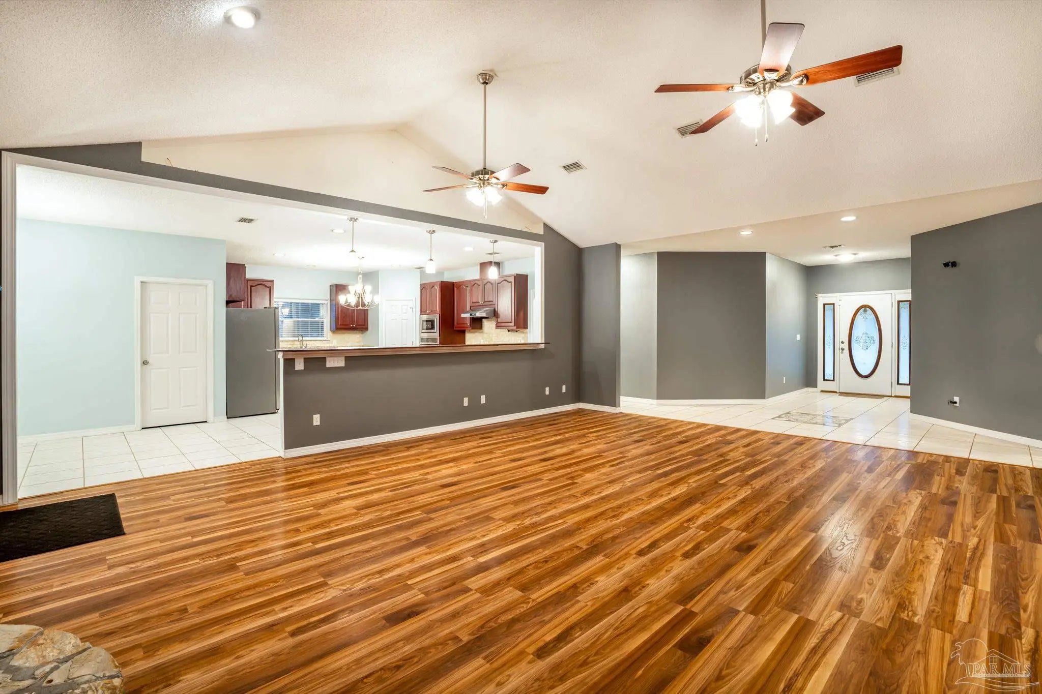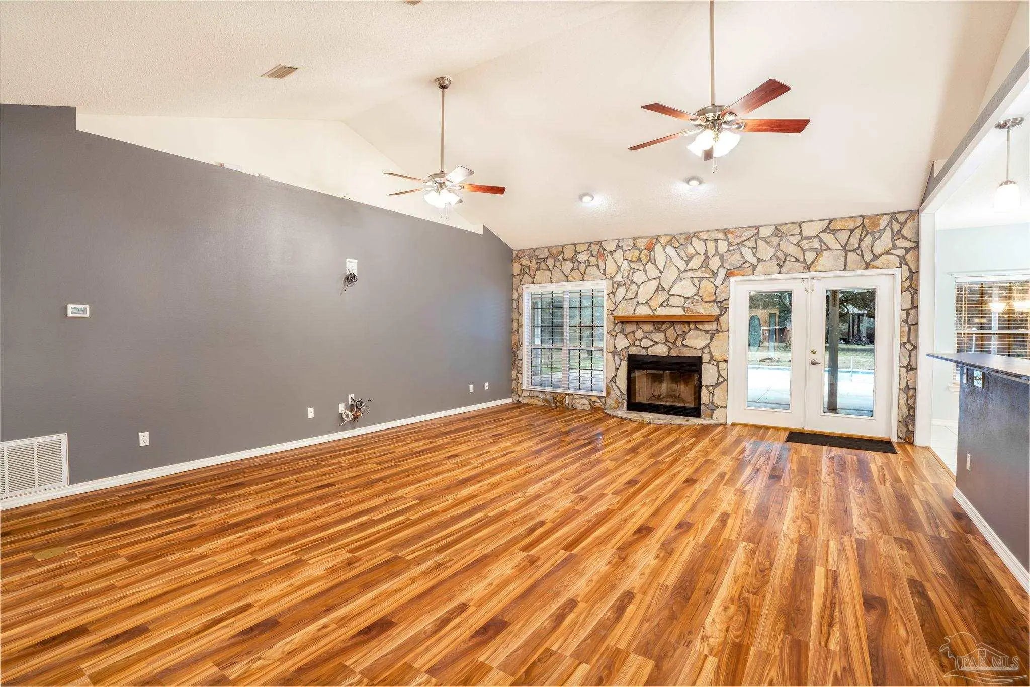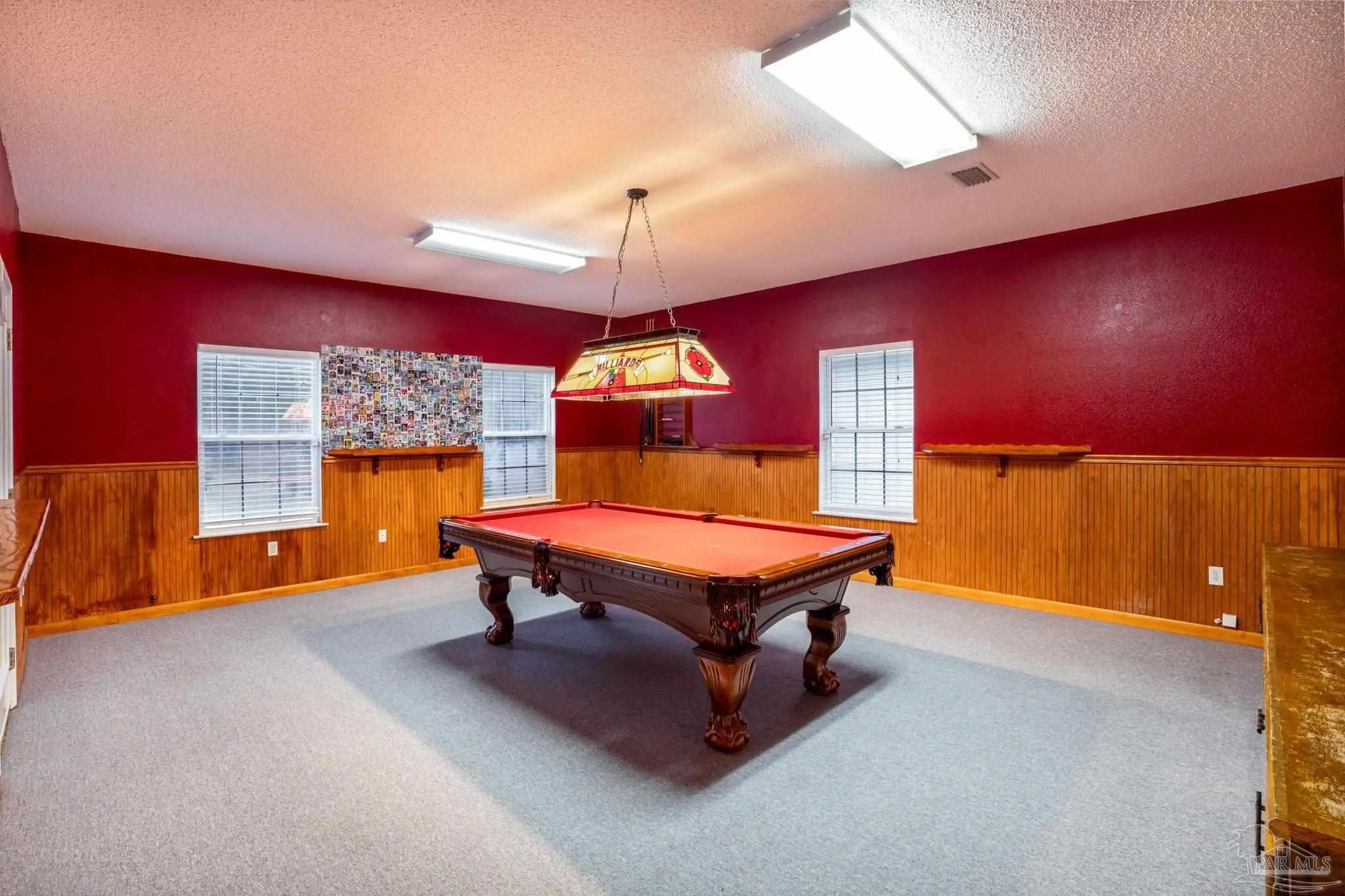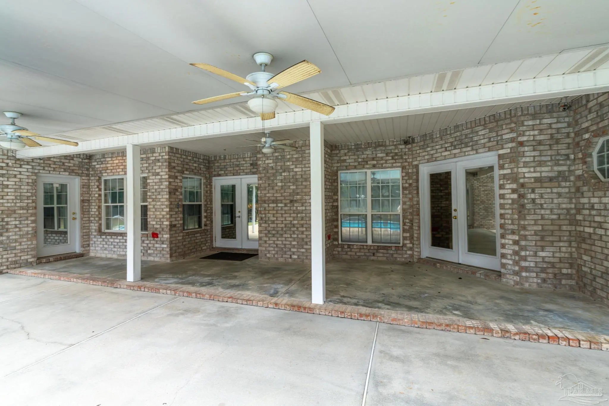 Sit on your wrap around porch and discover 4 acres of privacy in Florida, ideally located just 20 minutes from downtown, close to the interstate, and only 30 minutes to the beach. Surrounded by beautiful trees, this property offers seclusion without sacrificing convenience—with no HOA. Lots of freedom living here at this estate. Inside, the spacious layout is perfect for multi-generational living, featuring a generous primary suite plus two additional en-suites/Mother-in-law suites. The open kitchen has been updated with granite countertops, modern appliances, and refreshed bathrooms with new sinks, lighting, and fixtures. Stylish tile flooring runs throughout main entry area and wet areas, giving the home a fresh clean feel. Laminate in the living areas and carpet in bedrooms. Step outside to your own private oasis. A covered porch overlooks the sparkling pool and expansive backyard—ideal for relaxing or entertaining. A massive pole barn with oversized doors offers endless possibilities: storage, detached 2-car garage, workshop, or recreational space, complete with RV hookup. There’s also a separate climate-controlled finished office/gym/storage on the back of the garage, a luxury chicken coop with caged run, and plenty of room for boats, RVs, and toys. This property extends about 50 yards beyond the back fence, providing even more space to enjoy. Solar panels keep energy costs extremely low (with option to pay off and remove if preferred. quotes in hand), adding efficiency and long-term savings. All this, plus the convenience of being minutes from Navy Federal Credit Union and only a short drive to the Gulf Coast beaches, makes this estate the perfect blend of privacy, function, and lifestyle. New Arcitectural Shingle roof installed prior to closing with applicable offer.