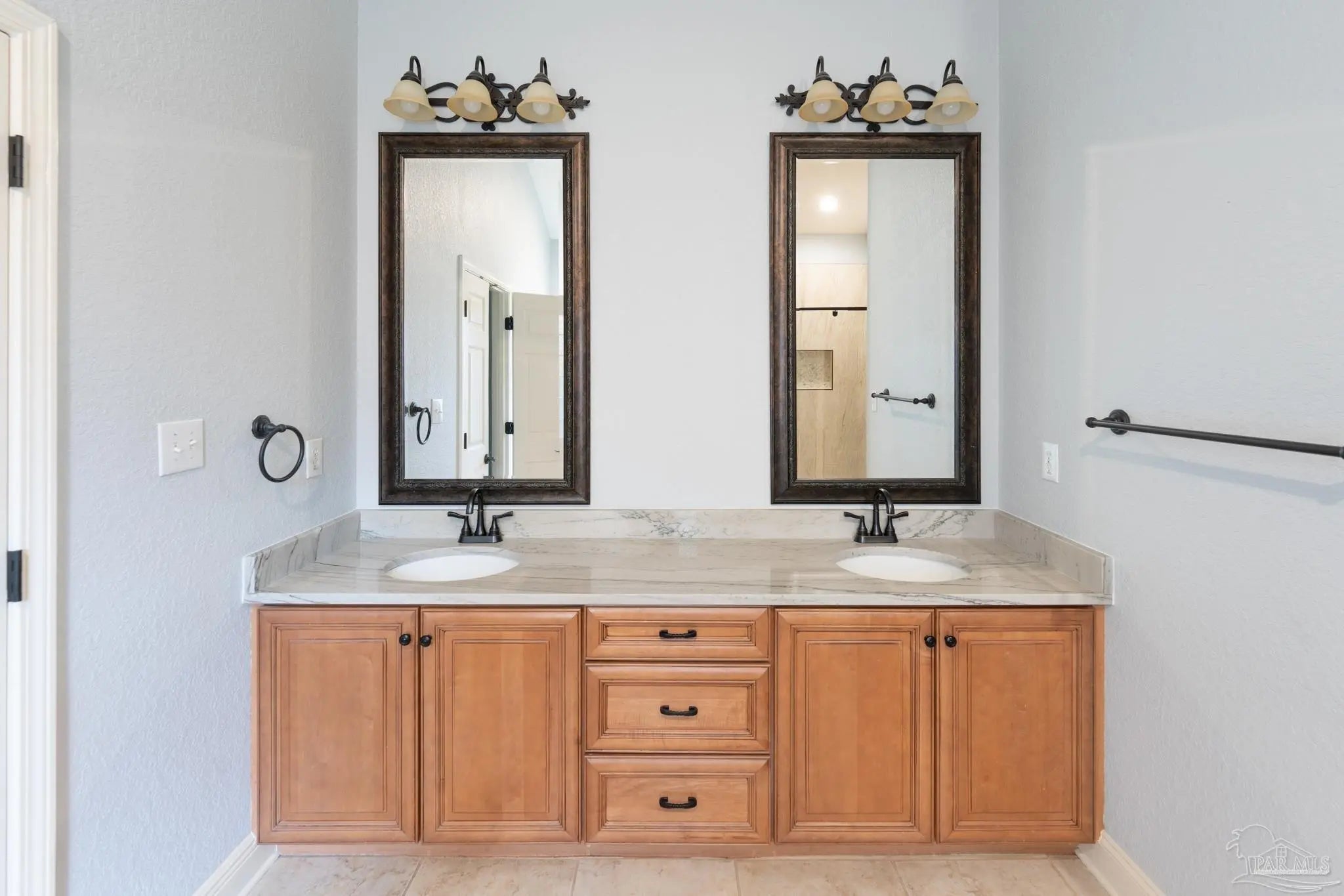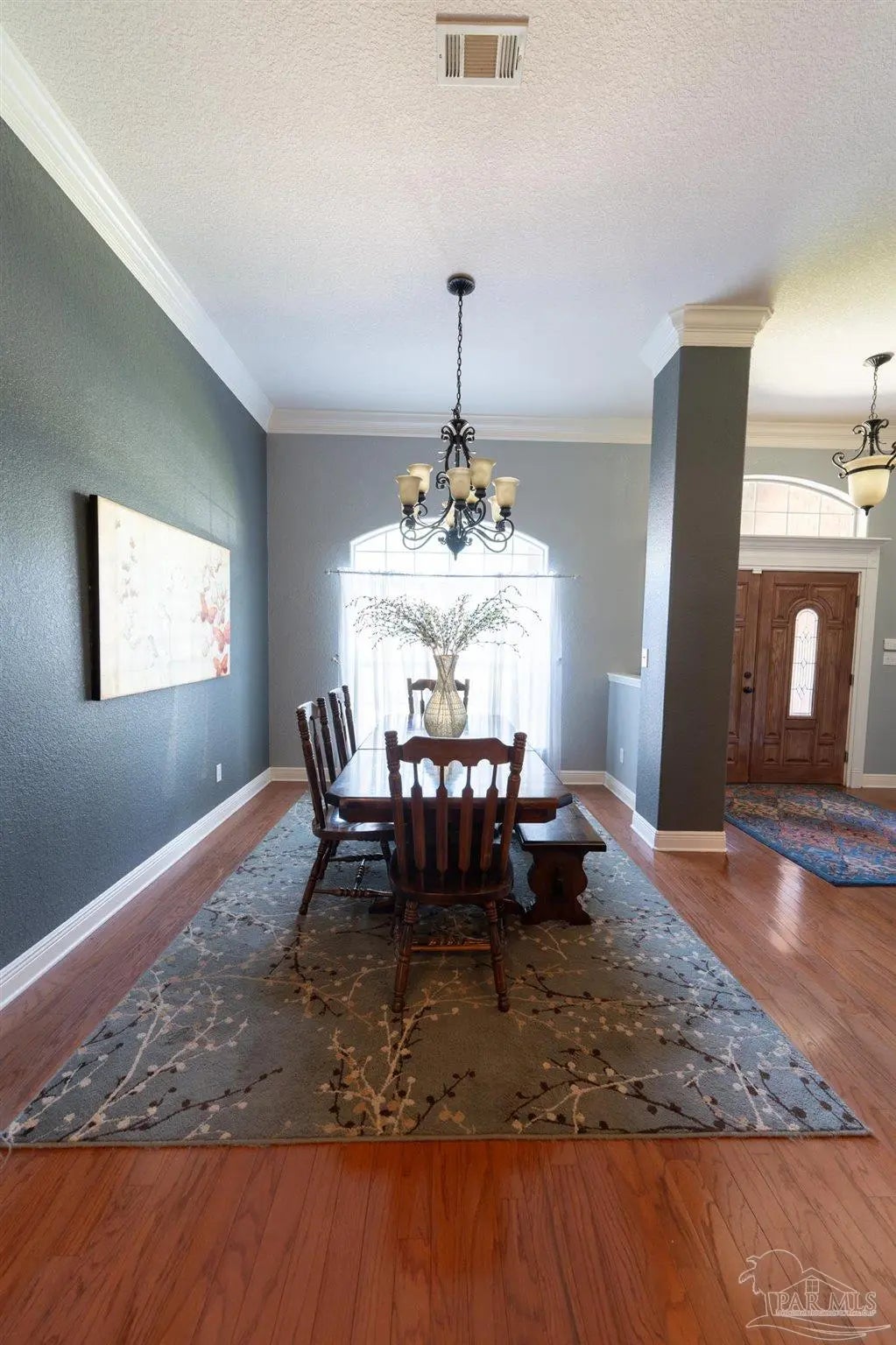 A Home Made for Gathering in Grande Oaks Farms Imagine starting your mornings in a sunlit kitchen with granite counters, coffee brewing as kids get ready for school at nearby Pine Meadow and Tate High. Picture evenings spent by the glow of the fireplace, family dinners in the formal dining room, and weekends grilling on the screened porch while friends gather in the oversized backyard. This 5-bedroom, 3.5-bath brick home was designed for both everyday comfort and special moments. The open living area, soaring ceilings, and elegant crown molding set the stage for a warm and welcoming feel. Retreat to your spa-inspired primary suite with a garden tub, double vanities, and a spacious walk-in closet. With a 3-car side-entry garage, hardwood floors, and a quarter-acre lot in the sought-after Grande Oaks Farms community, this home blends timeless style with practical upgrades, ready for you to create your next chapter. Two Primary Suites & Room for Everyone in Grande Oaks Farms