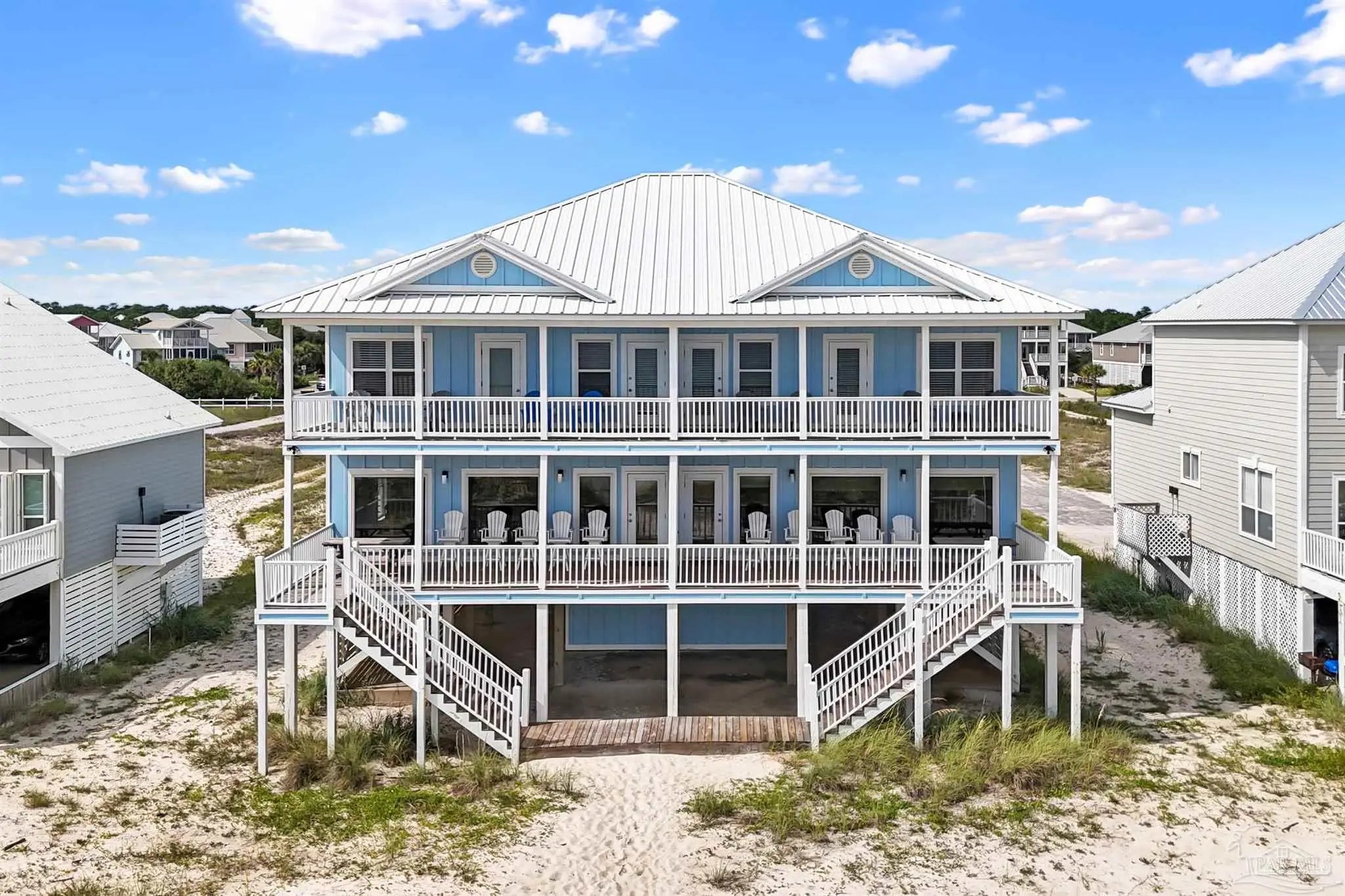Wake up to the sound of the Gulf and enjoy the beach just steps from your back deck. This Gulf front duplex in Morgantown sits on 75 feet of shoreline and offers the best of both worlds—plenty of space for family and friends plus the option to generate strong rental income. Each side is 2,052 square feet with 4 bedrooms and 3 bathrooms, giving you a total of 8 bedrooms, 6 baths, and 4,104 square feet under one roof.The home has been well maintained with updates including new Hardie board siding, windows and a 4 year old metal roof, so the heavy lifting has already been done. Both sides are currently used as vacation rentals and have a solid history, making it easy to step right in if you choose. If rental income isn’t the priority, it also works perfectly as a multi-generation beach retreat, giving everyone their own space while still being together.Morgantown is a community designed for people who love the beach without the hustle of crowded tourist areas. You’ll find two pools, tennis courts, and a friendly neighborhood feel. From the house, it’s a quick drive to historic Fort Morgan or The Beach Club and Jesse's on the Bay for dining and amenities.This isn’t just a beach house—it’s a place for long mornings on a quiet stretch of sand, afternoons by the pool, and evenings spent watching the sun drop into the Gulf with the people who matter most.This duplex has solid rental numbers and is turn key, fully furnished, and rental ready! The monthly HOA fee also includes internet and cable for both units. Buyer to verify all information during due diligence.
