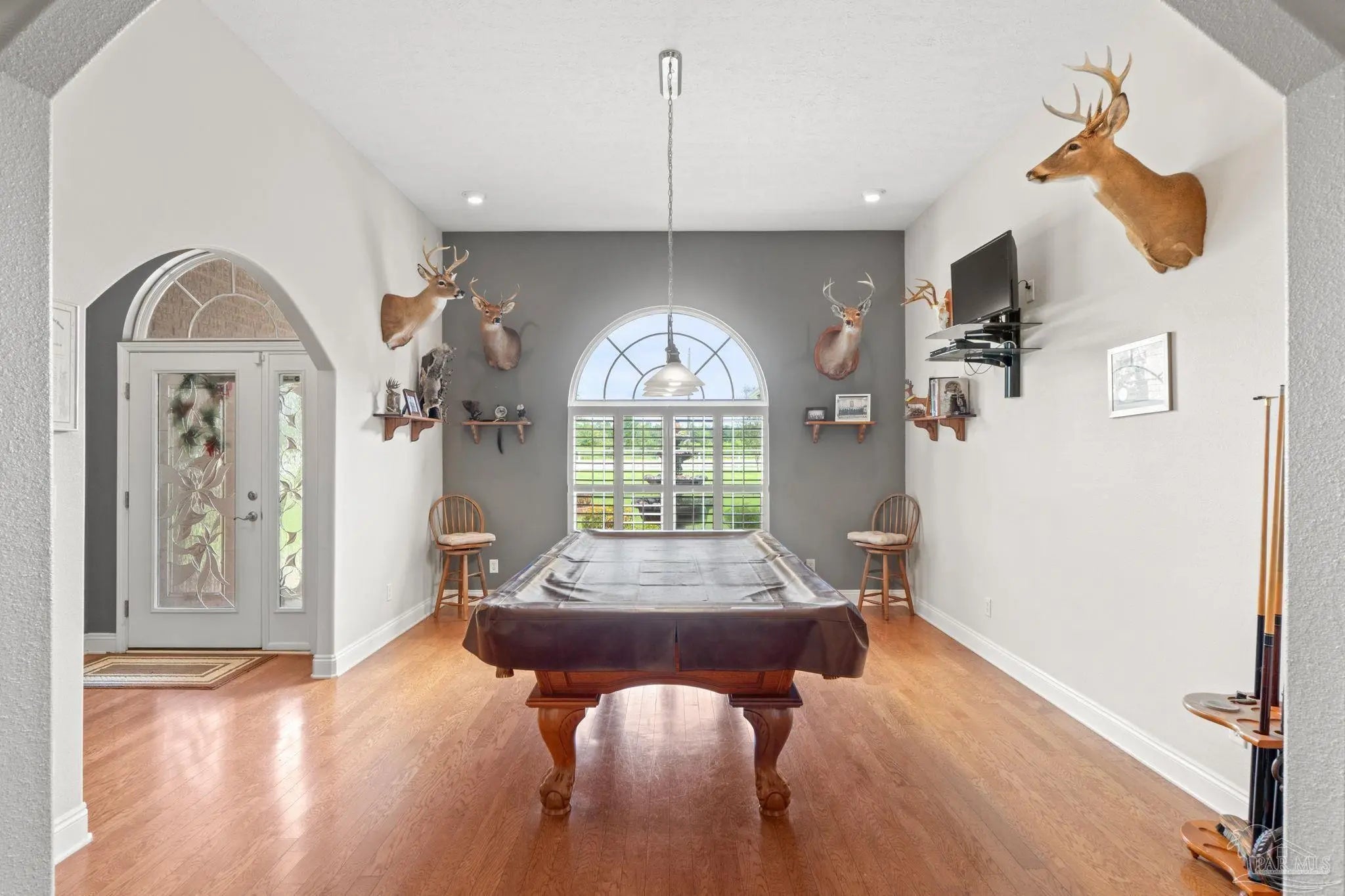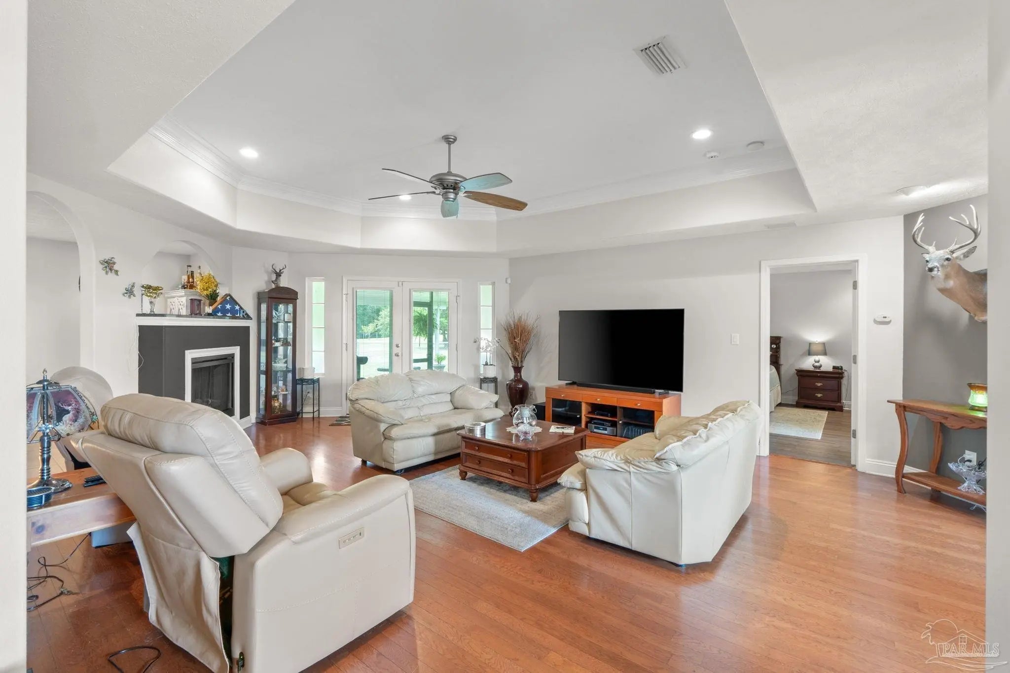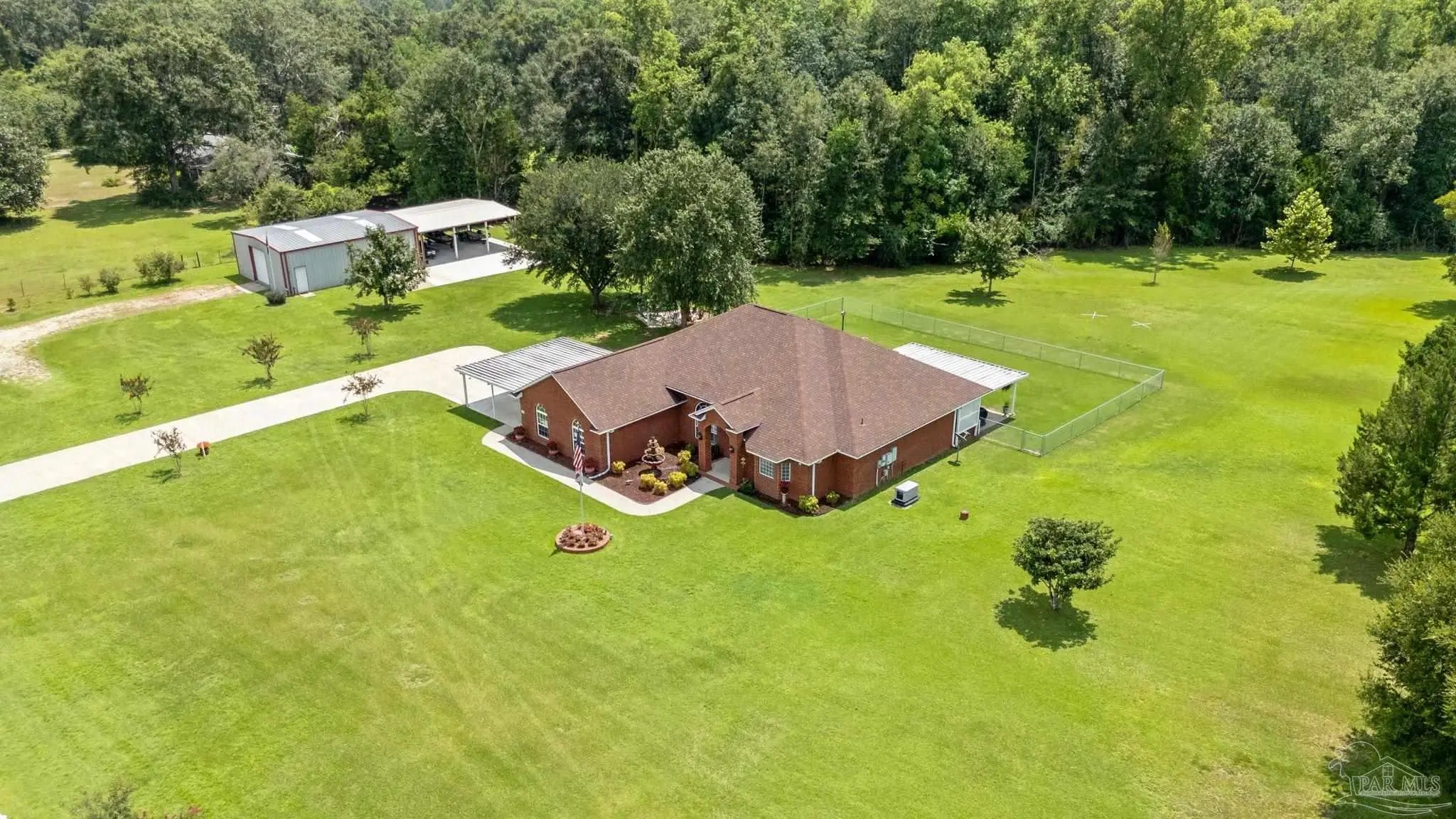 Beautiful Brick Country Estate on 7.5 Acres! Welcome to 4381 Molino Road, a charming brick country estate with space, character, and modern updates. Built in 2006, this 3-bedroom, 2-bath home offers 2,432 square feet of comfortable living space, set on 4 acres plus an adjoining 3.5 parcel for a total of 7.5 acres included in this listing. From the moment you arrive, you’ll be struck by the curb appeal: lush grass, classic white horse fencing along the road, a flagpole out front, and charming landscaping. Step inside to a warm foyer with rich hardwood floors, architectural windows, arched doorways, and a living room with a tray ceiling, and electric fireplace. The bright dining room and large kitchen are made for gathering, with stainless steel appliances, a pantry closet, and a spacious breakfast nook that fits a full-sized table. The primary suite features 2023 luxury vinyl plank flooring, its own tray ceiling, double doors to the screened porch, and a spa-like ensuite with a separate soaking tub and abundant natural light. Two additional bedrooms with plush carpet offer plenty of comfort for family or guests. Out back, you’ll enjoy a screened-in porch, covered patio, and expansive yard. The property also includes a large detached metal building and attached pole barn with 3 11ft bays that has both power and water, perfect for a workshop, storage, or hobbies. There is also another pole barn at the back of the property. Recent updates provide peace of mind: roof (2022), HVAC (2021), water heater (2022), concrete driveway, termite bond, and fabric hurricane shutters. This rare combination of acreage, upgrades, and country charm makes 4381 Molino Road a true fine. Don’t miss it!