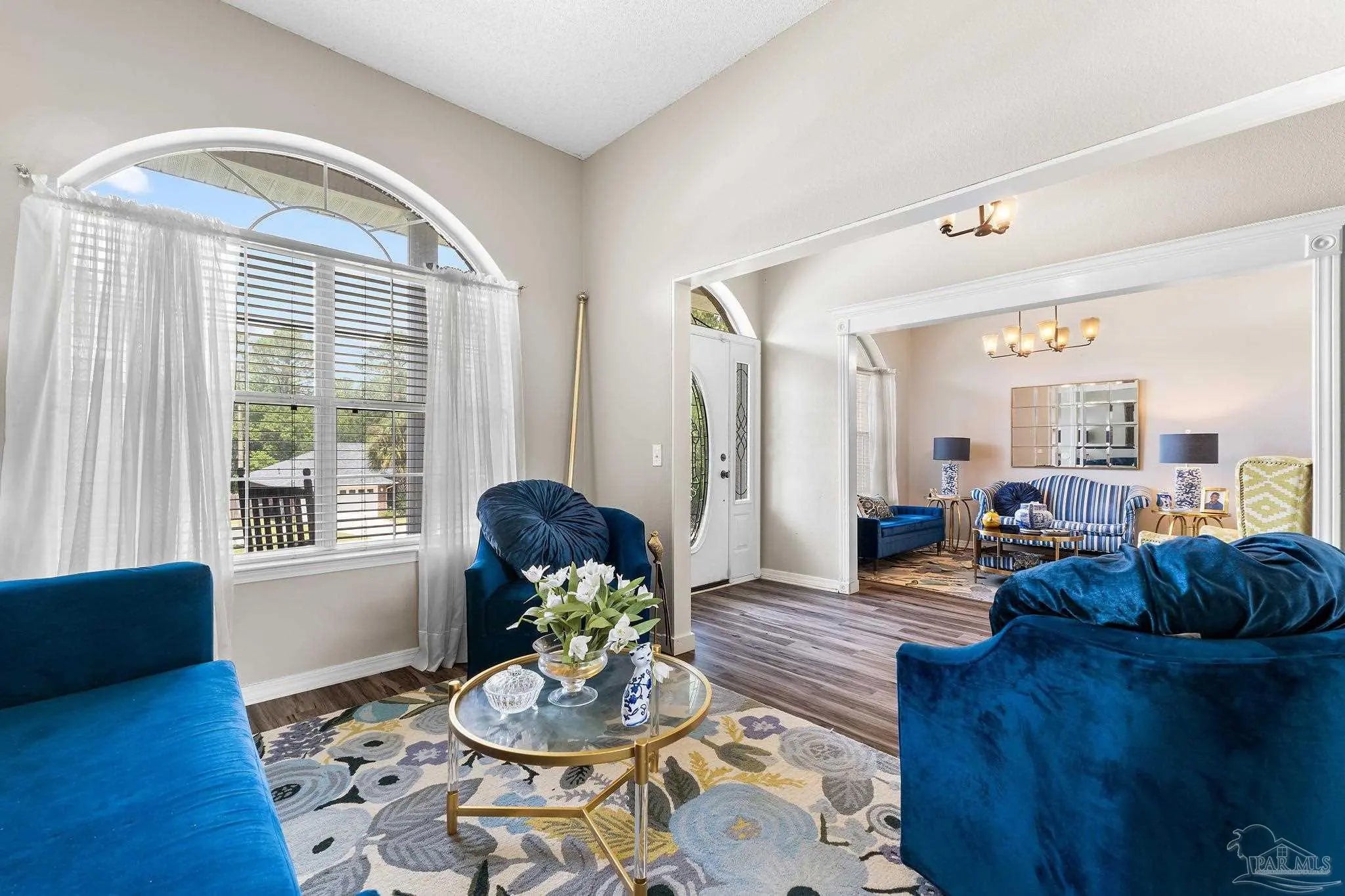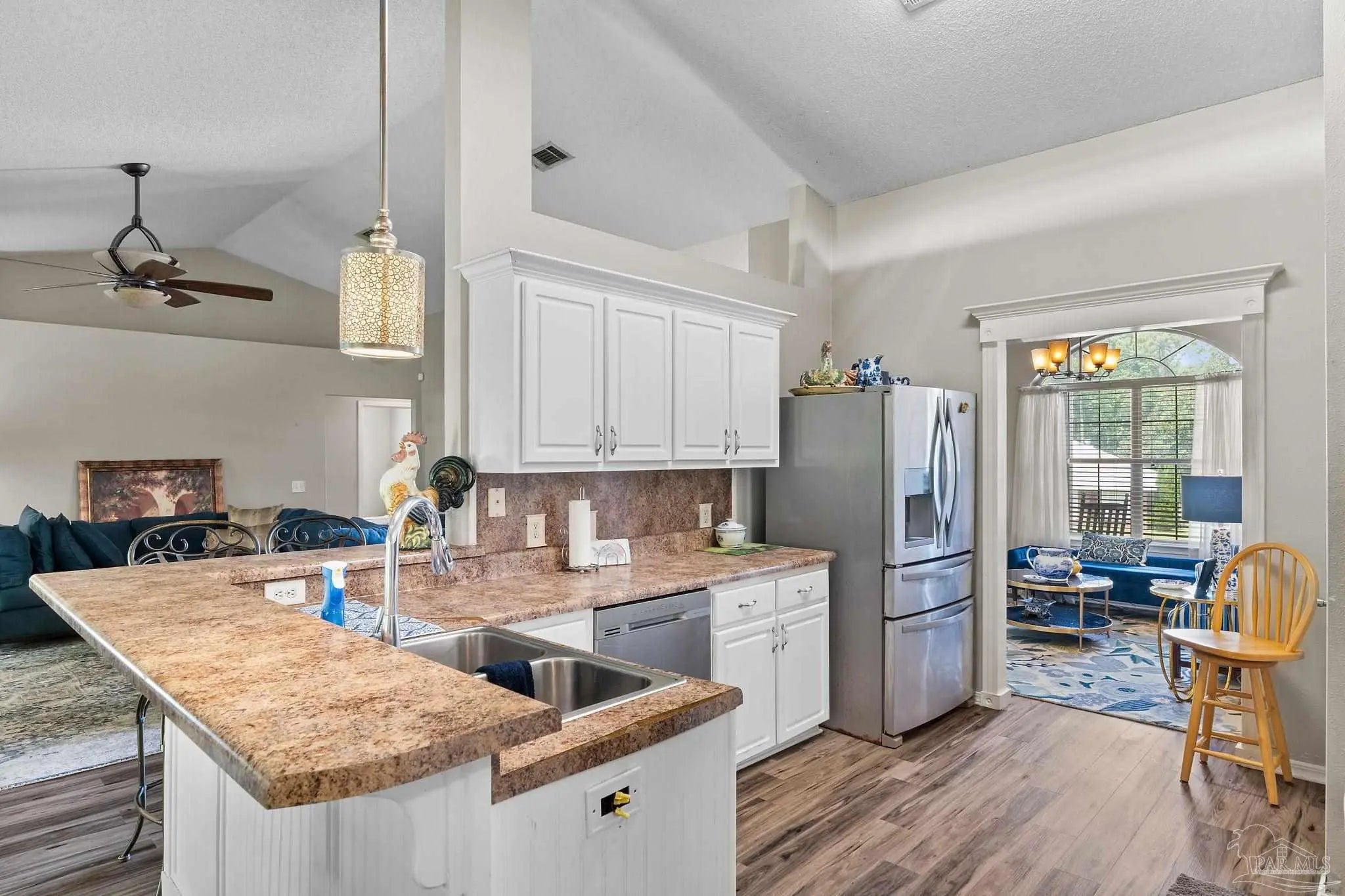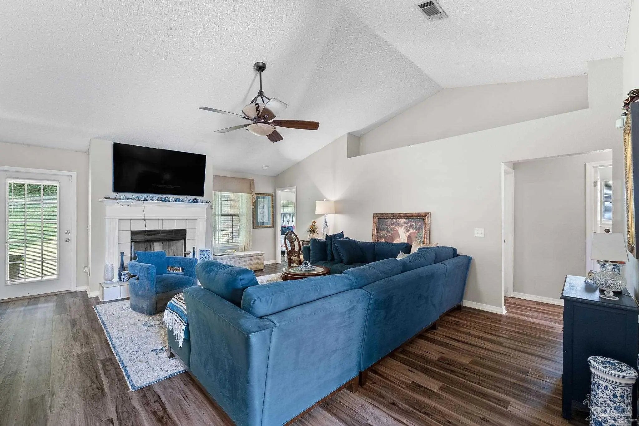 ? Turnberry Treasure in Cantonment – Elevated Living Awaits ? Welcome to this stunning 4-bedroom, 2-bath home in the highly desirable Turnberry subdivision, where modern comfort meets timeless charm. Perfectly perched on a gentle hill, this residence offers both a sense of grandeur and a tranquil retreat. Step inside to be greeted by luxury vinyl plank flooring throughout—no carpet in sight—adding elegance and easy maintenance to every room. The open floor plan flows seamlessly, anchored by a warm fireplace and soaring vaulted ceilings that create an airy, inviting atmosphere. The chef-inspired kitchen features a built-in microwave and a standing double oven, making meal prep and entertaining a breeze. Gather around the spacious living and dining areas, or step out to the cozy covered porch to relax and enjoy the peaceful surroundings. Retreat to the private master suite, complete with a spa-like bathroom boasting a double vanity, separate soaking tub, and walk-in shower—the perfect place to unwind at the end of the day. Located in the heart of Cantonment and just 15 minutes from Downtown Pensacola, this home provides easy access to shopping, dining, and entertainment while still offering the quiet serenity of a sought-after neighborhood. This home is more than a place to live—it’s a lifestyle. Don’t miss your chance to call this Turnberry gem your new “home sweet home.”