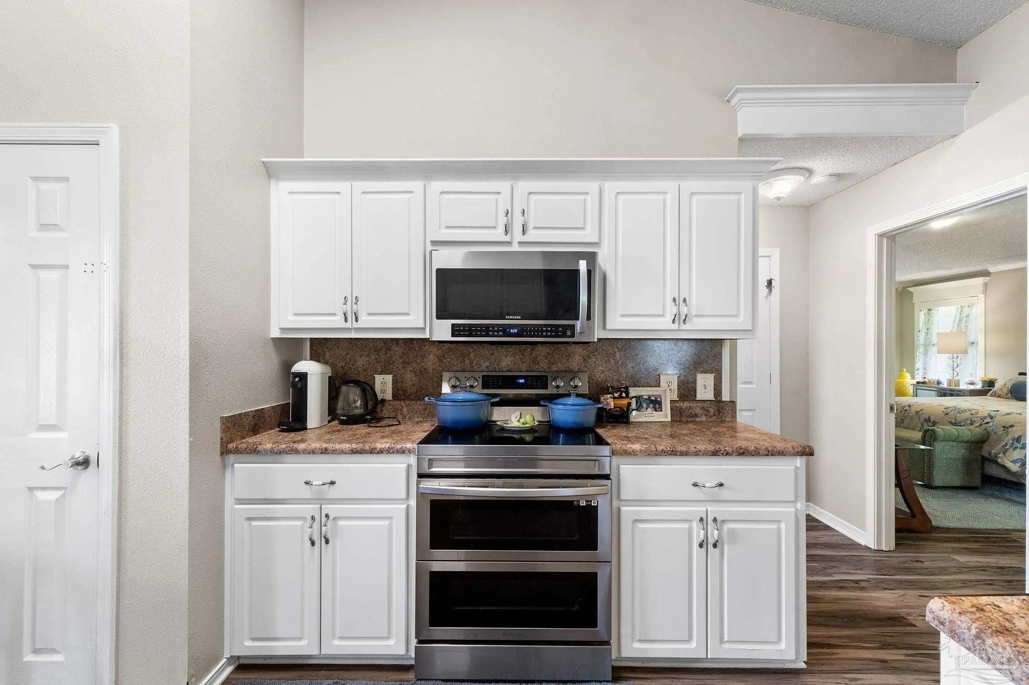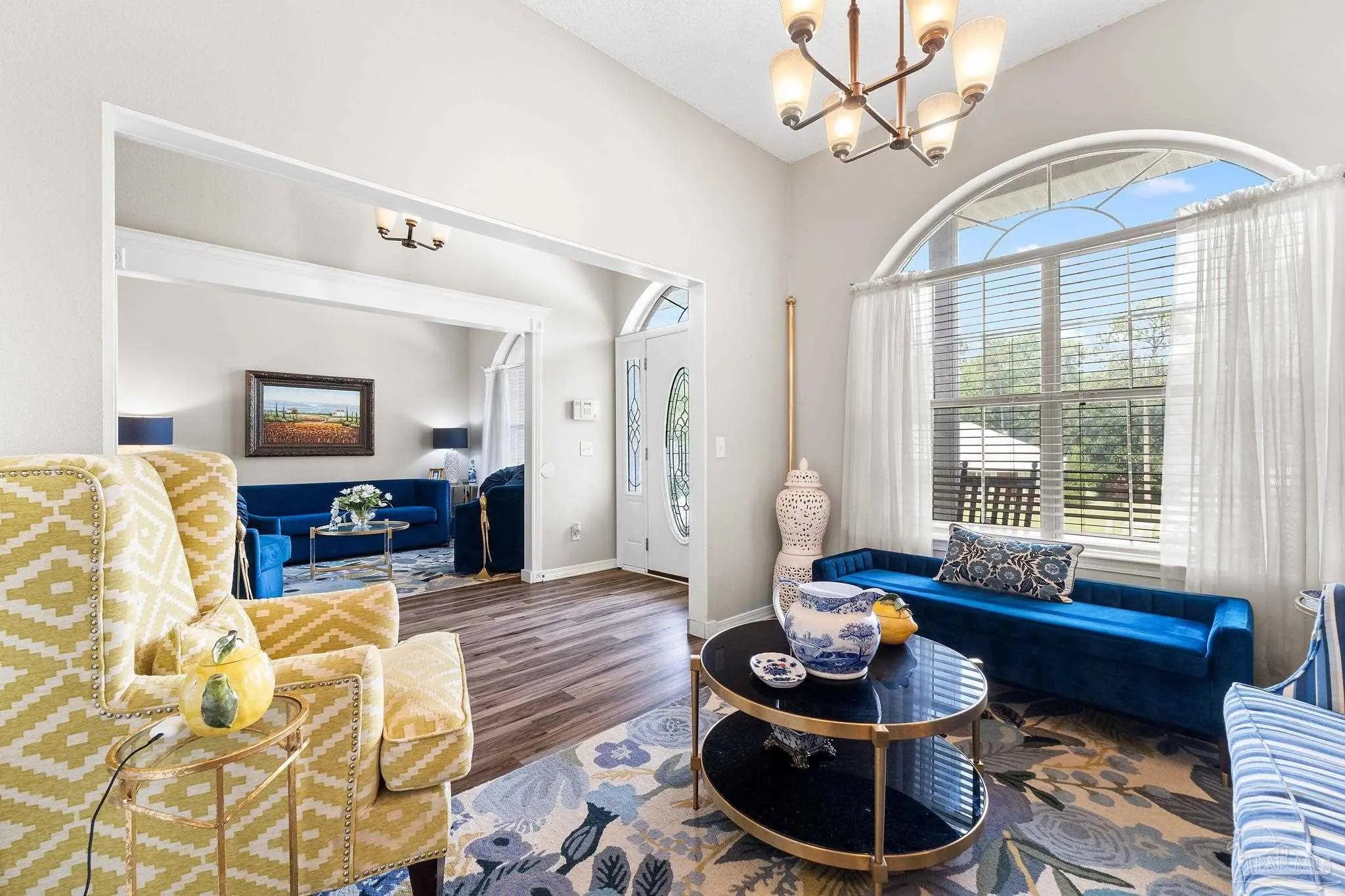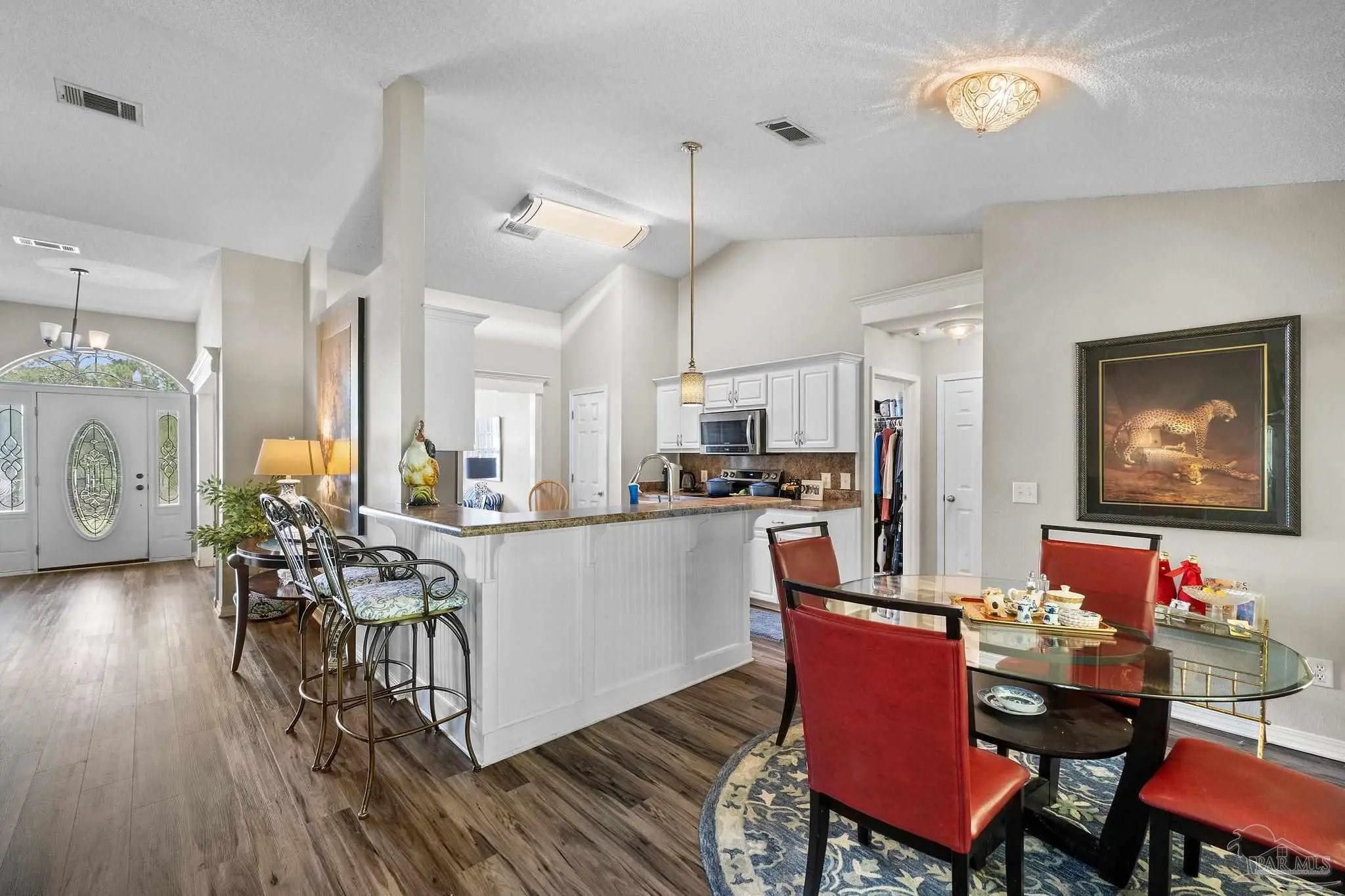 ? Turnberry Treasure in Cantonment – Elevated Living Awaits ? Welcome to this stunning 4-bedroom, 2-bath home in the highly desirable Turnberry subdivision, where modern comfort meets timeless charm. Perfectly perched on a gentle hill, this residence offers both a sense of grandeur and a tranquil retreat. Step inside to be greeted by luxury vinyl plank flooring throughout—no carpet in sight—adding elegance and easy maintenance to every room. The open floor plan flows seamlessly, anchored by a warm fireplace and soaring vaulted ceilings that create an airy, inviting atmosphere. The chef-inspired kitchen features a built-in microwave and a standing double oven, making meal prep and entertaining a breeze. Gather around the spacious living and dining areas, or step out to the cozy covered porch to relax and enjoy the peaceful surroundings. Retreat to the private master suite, complete with a spa-like bathroom boasting a double vanity, separate soaking tub, and walk-in shower—the perfect place to unwind at the end of the day. Located in the heart of Cantonment and just 15 minutes from Downtown Pensacola, this home provides easy access to shopping, dining, and entertainment while still offering the quiet serenity of a sought-after neighborhood. This home is more than a place to live—it’s a lifestyle. Don’t miss your chance to call this Turnberry gem your new “home sweet home.”