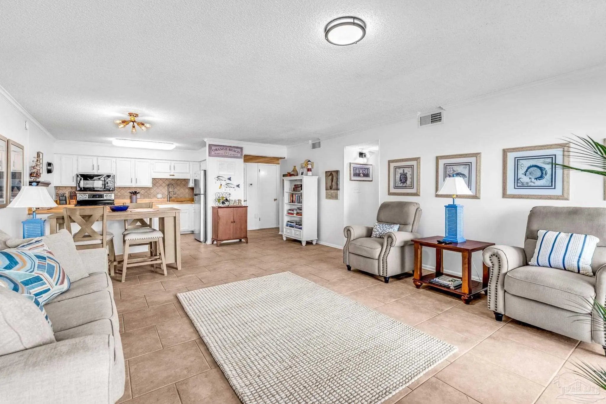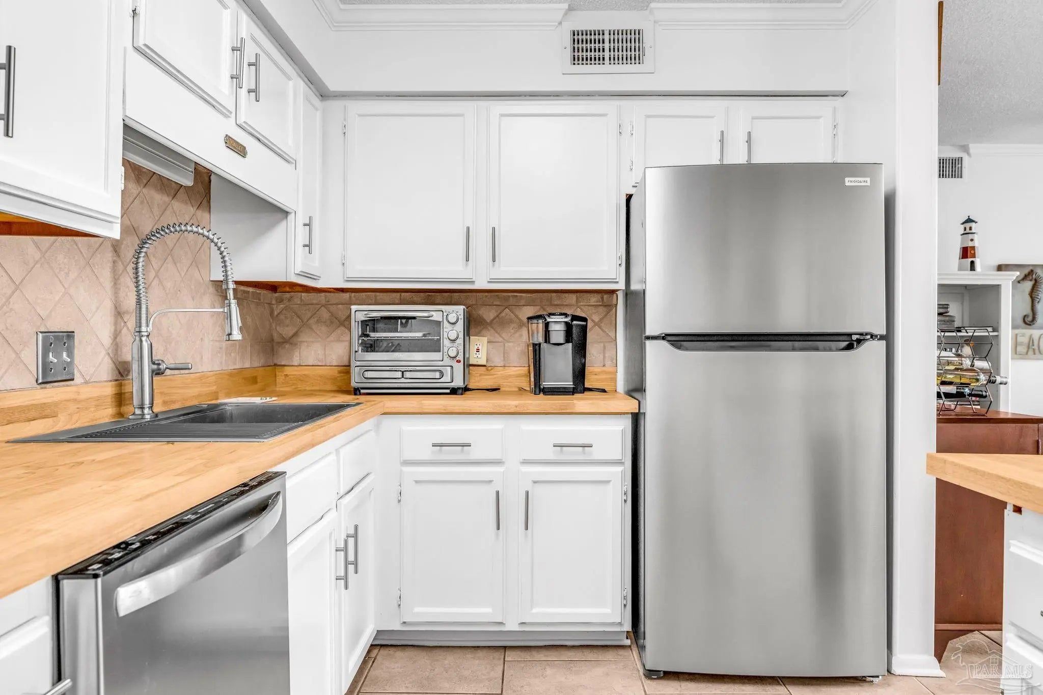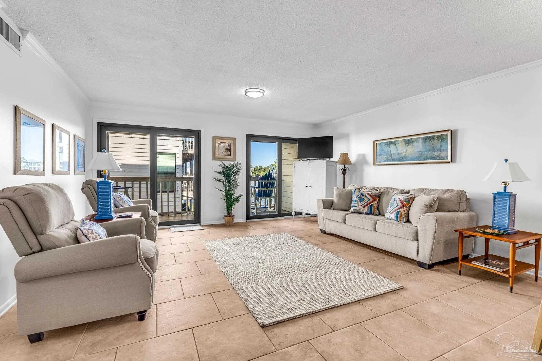 Bright, fresh, and beautifully updated — this fully renovated 2-bed, 2-bath bayfront condo in Orange Beach is truly move-in ready. Every major feature has been replaced within the past year, including HVAC, 40-gallon water heater, refrigerator, washer and dryer. The kitchen shines with butcher-block countertops, a deep farmhouse-style sink, new breakfast bar seating, and all-new furnishings throughout—right down to the bedding, curtains, sleeper sofa and fresh interior paint. Soak in sweeping bay views from the open-concept living area and the covered outdoor deck. Step outside and enjoy an amenity-rich community offering a sparkling pool, tennis/pickleball courts, and direct bay access for boating and fishing. First-come, first-served boat slips make getting on the water effortless. The conveniently-located complex delivers rare first-come, first-served boat slips (deep water, no bridges to Gulf), private boat launch, fishing pier, large bayside pool, and tennis/pickleball courts. A private owner’s storage room downstairs adds even more convenience, complete with an additional refrigerator for your fresh catch and new outdoor polywood deck furniture. Just minutes from Orange Beach dining, beaches, and entertainment—this turnkey coastal retreat is priced to move. The unit is being sold fully furnished and rental-ready with a strong rental history already in place. Whether it's a primary home, second home or investment property, this condo is truly turn-key. Buyer to verify all measurements and details.