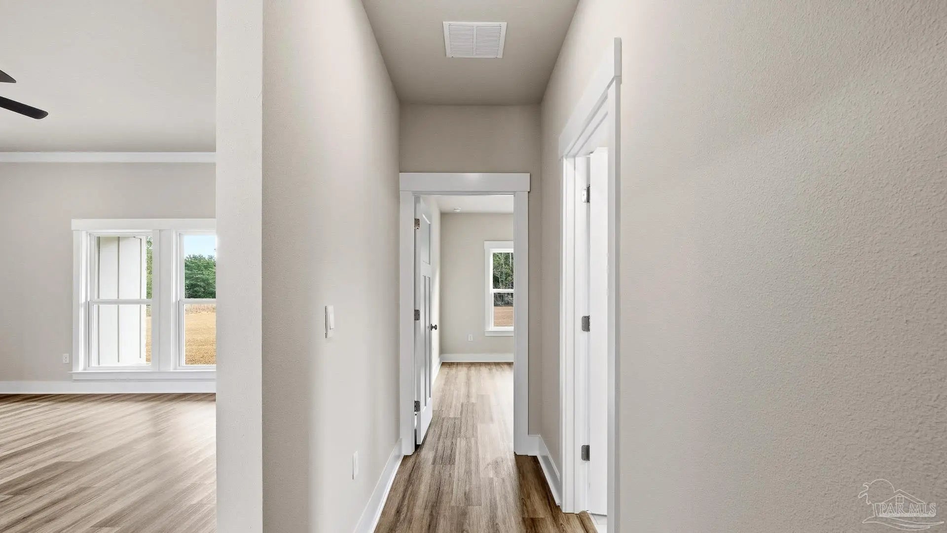 Welcome to 5900 Greenfield St! This stunning home is spanning on 2 acres in Pace, and combines tranquility with convenience. The Hickory plan is a must see with a welcoming front porch with double 8' mahogany doors that invite you into a large, open family room with high ceilings and beautiful custom trim. The gourmet kitchen features beautiful countertops, and modern stainless-steel appliances. The private owner's suite will be your oasis, and it features an ensuite bath including a dual vanity, soaking tub, and a spacious walk-in shower. The oversized walk-in closet is a dream with wood shelving for storage. This split floor plan offers maximum privacy with two additional bedrooms and a hall bathroom on the main floor and a large fourth bedroom and full bathroom upstairs. This flexible space would be perfect as an in-law suite, playroom, or private office. The opportunities are endless. Enjoy peaceful country-style living just minutes from city conveniences, shopping, schools, and more—all while having room to spread out on your own private piece of Pace. Call us for an exclusive tour!