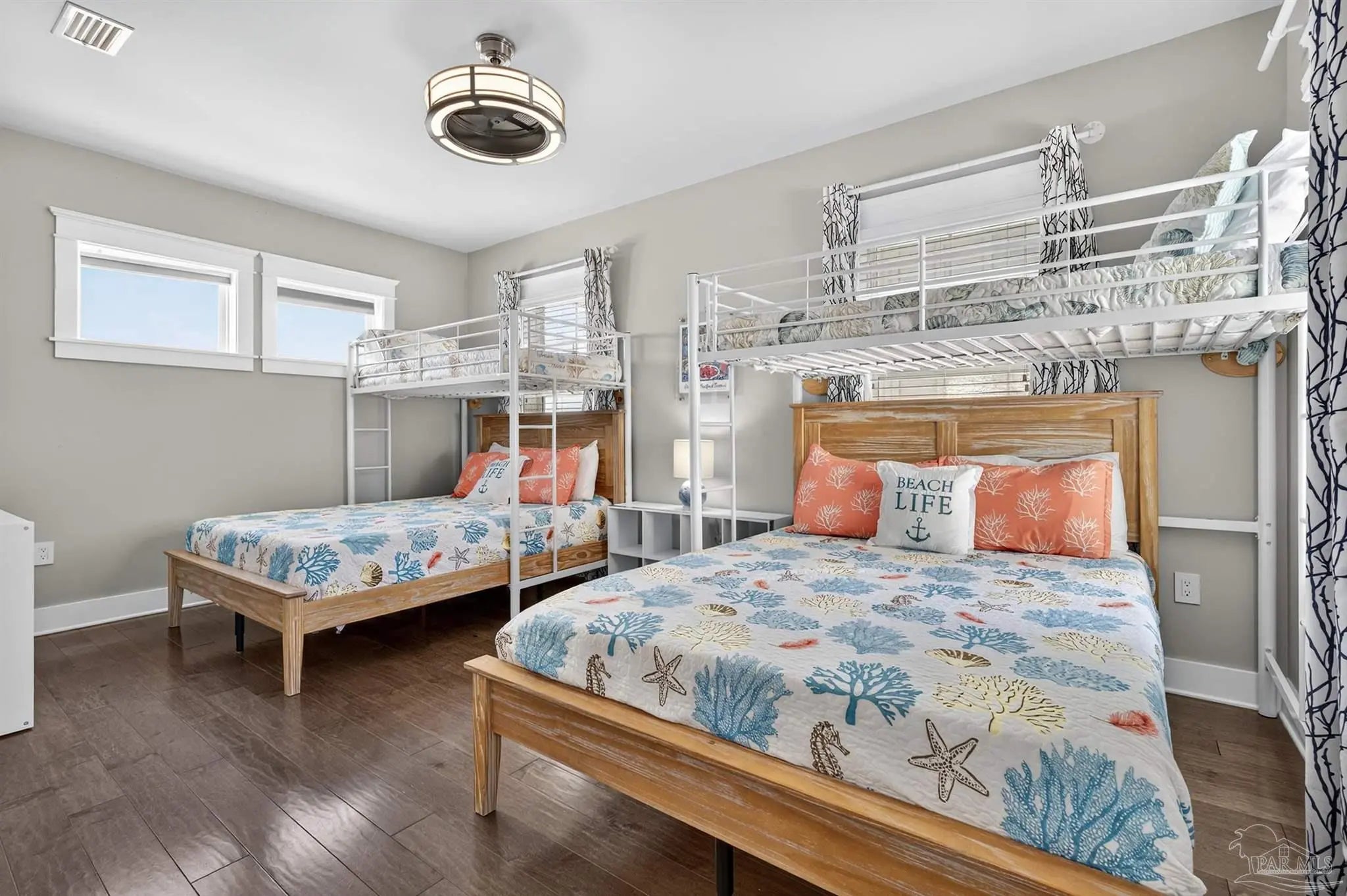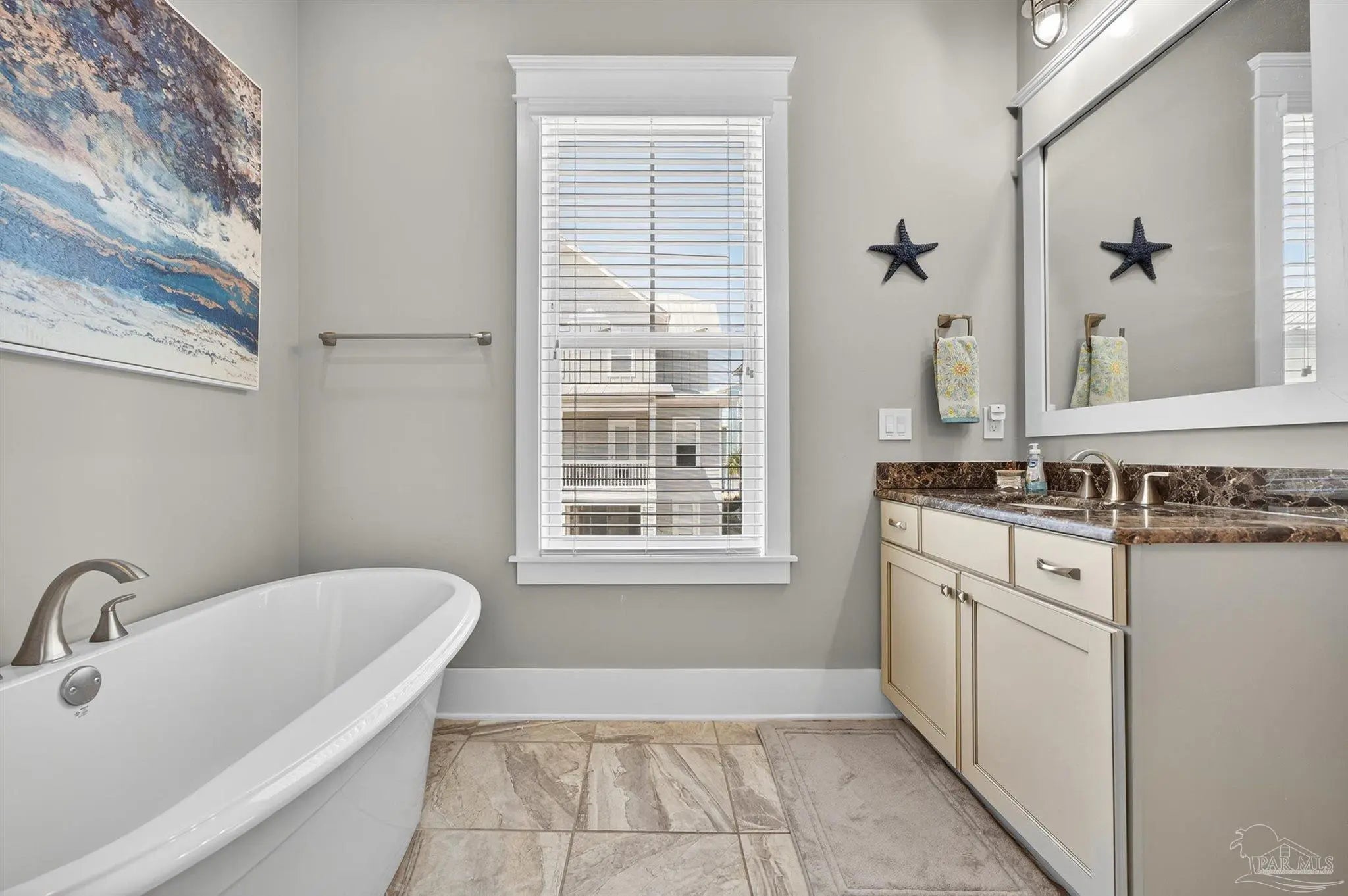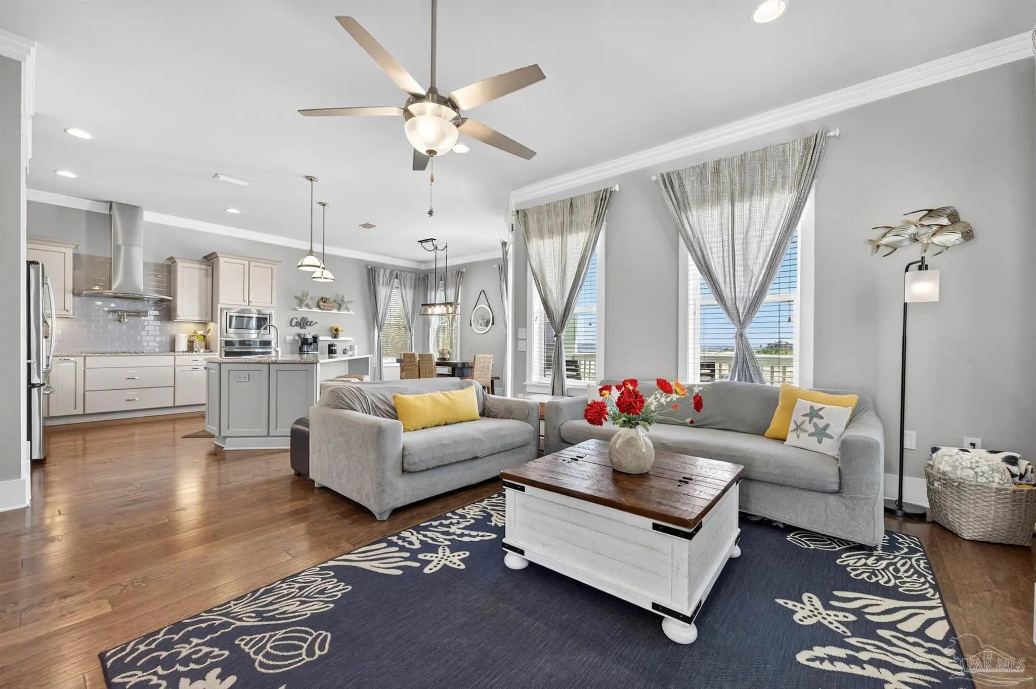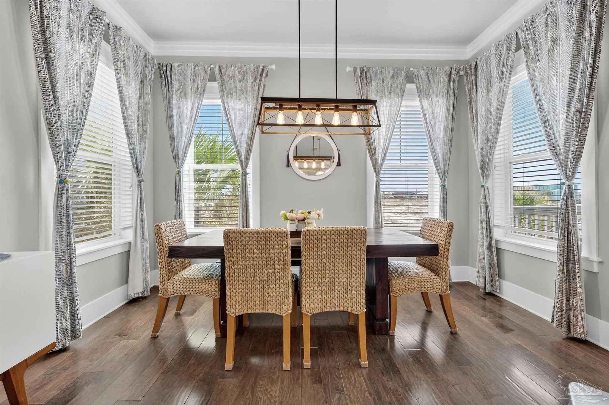 Welcome to By the Sea, a gated community on Navarre Beach offering deeded sound access, a sparkling community pool, and the perfect blend of coastal luxury and convenience! The property has consistently generated over $100K in annual rental income for the past three years, making it an outstanding primary residence, second home, or investment opportunity. Conveying with a golf cart (2023 battery) and two brand-new 2024 AC units, this home is move-in and rental-ready. This exceptional 4-bedroom, 4.5-bathroom home enjoys one of the neighborhood’s most desirable locations, backing up to over 300 acres of preserved land with sweeping views of the Santa Rosa Sound. From here, you’re just a short walk or bike ride to the pool, Gulf beach access 37B, or the Gulf Islands National Seashore with its 8 miles of pristine, protected shoreline. Step inside to find an open floor plan where natural light and water views create a relaxed coastal ambiance. The chef’s kitchen is a true highlight, featuring a spacious island with breakfast bar, granite countertops, stainless steel appliances, and a pantry. The main living area flows seamlessly to a covered deck overlooking the sound and leads to a private outdoor retreat. Here, you’ll find a large covered patio, outdoor shower, fire pit, and unobstructed views of the sound! The primary suite is the only bedroom on the second floor, offering a peaceful escape with its walk-in closet, private balcony, and bathroom complete with double vanities, soaking tub, spacious walk-in shower, and private water closet. Upstairs, three additional bedrooms each feature generous closets and private en suite bathrooms. A full laundry room with cabinetry and sink adds convenience to the third level. The home also features an oversized 2 car garage that could double as a workshop. Whether you’re seeking a serene coastal lifestyle or a proven income-producing property, this home embodies the best of quaint island life on Navarre Beach!