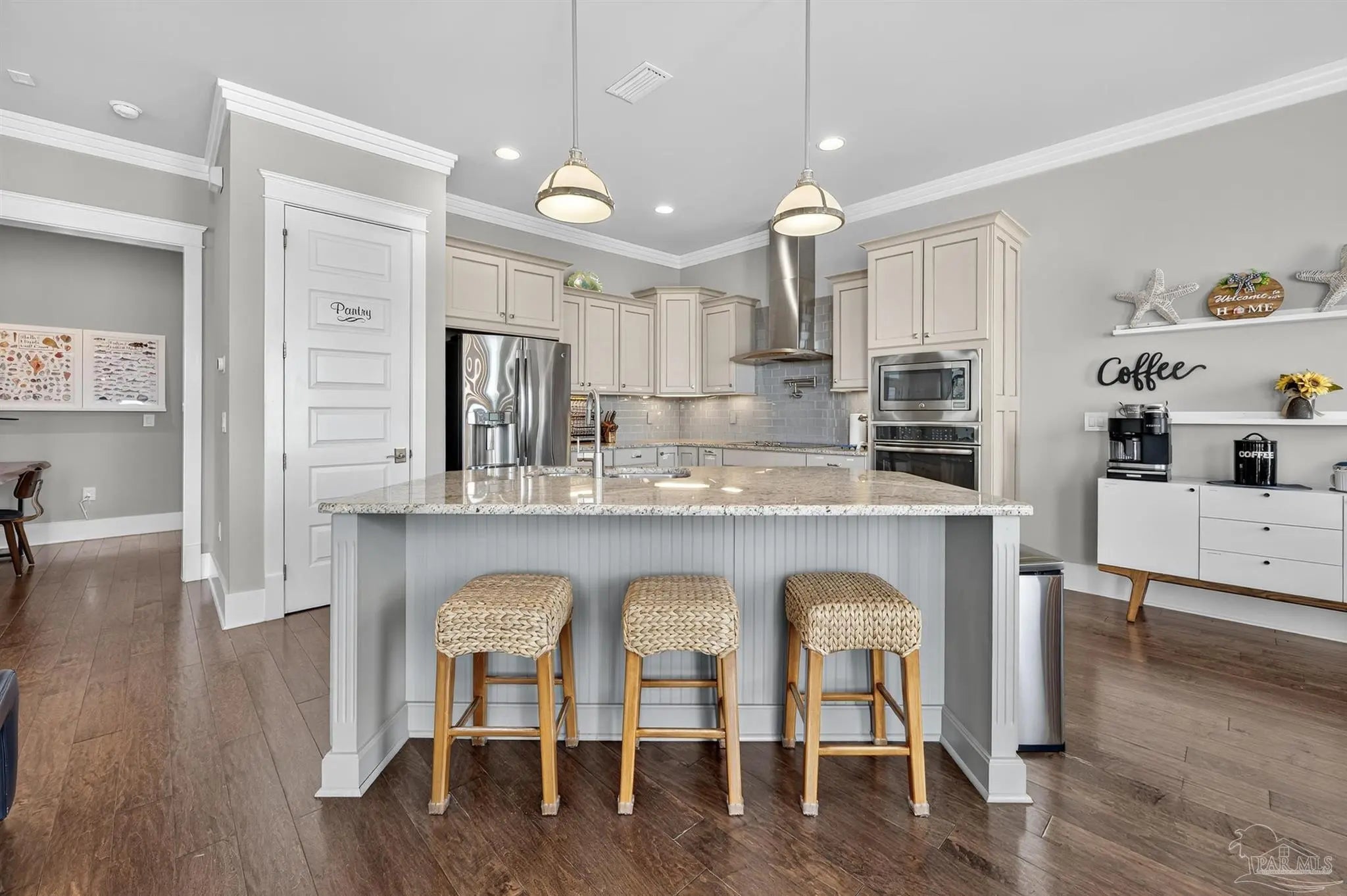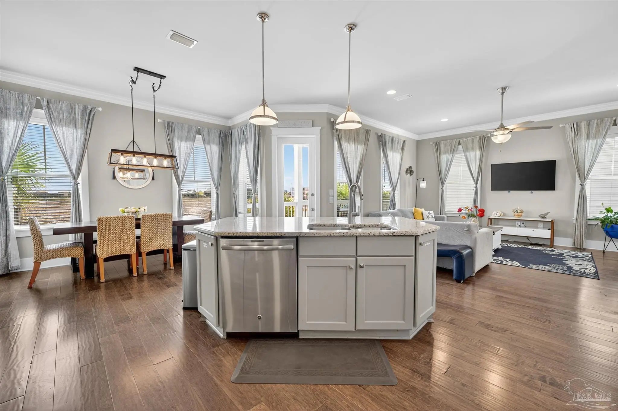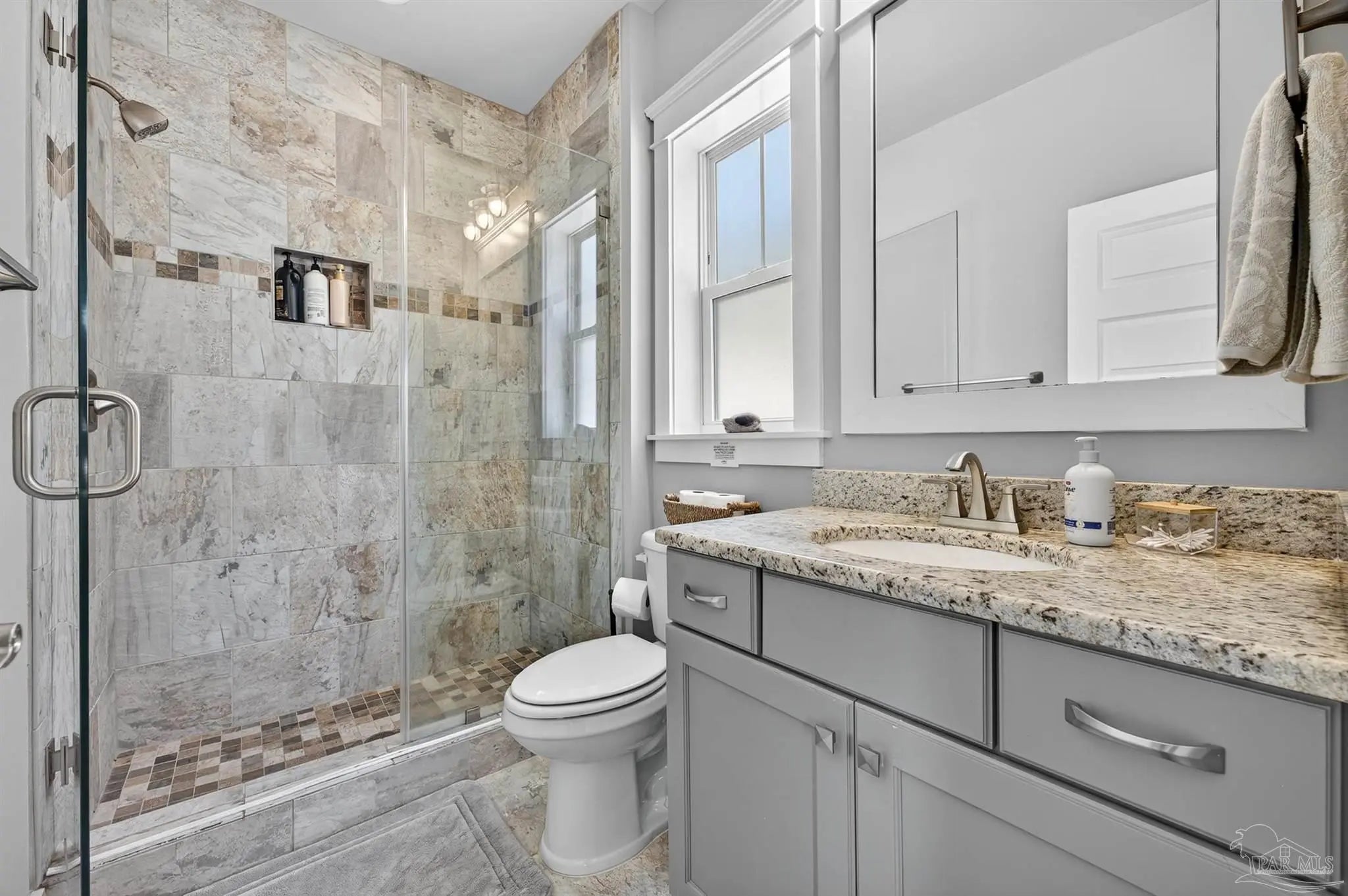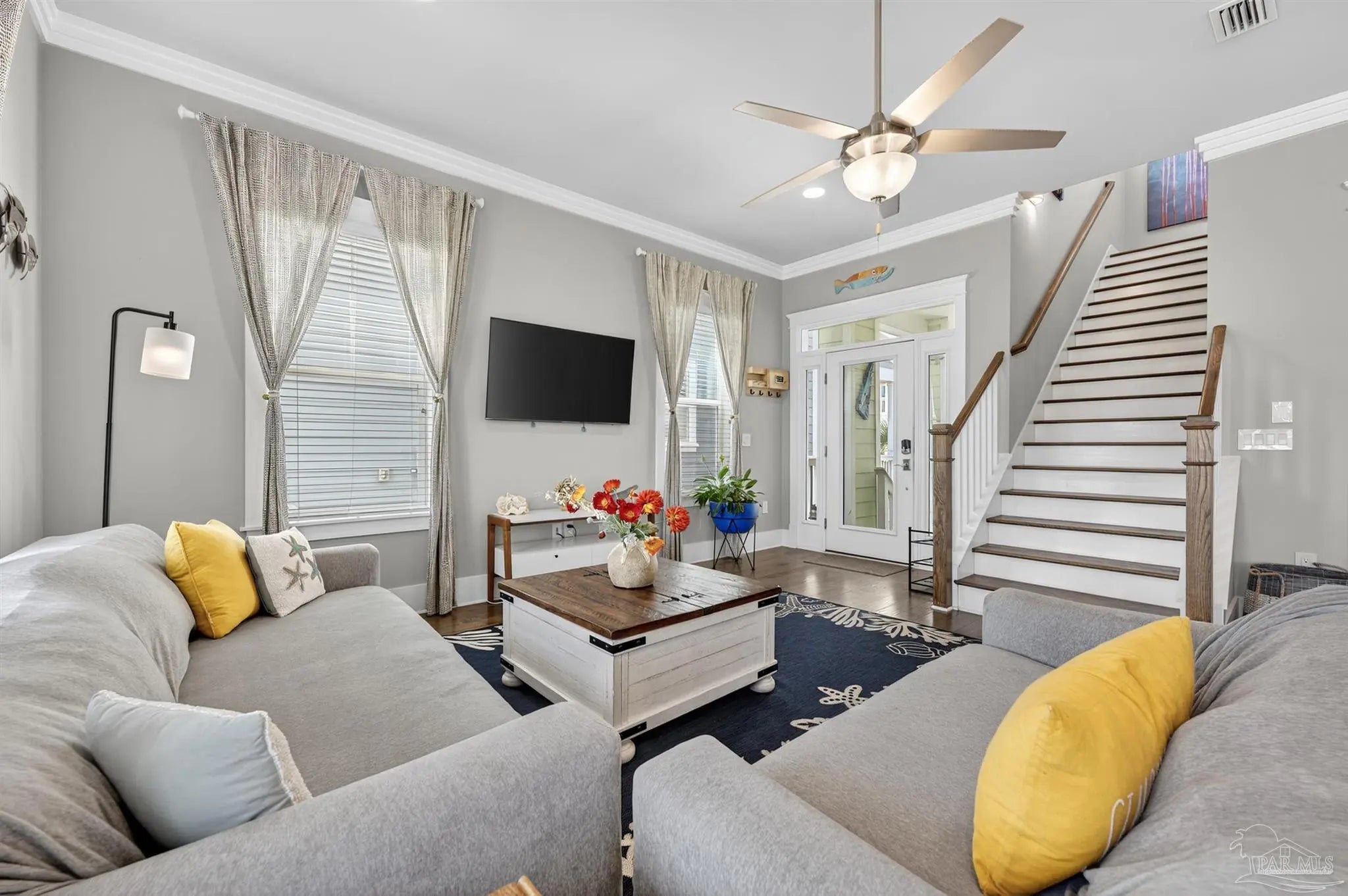 Welcome to By the Sea, a gated community on Navarre Beach offering deeded sound access, a sparkling community pool, and the perfect blend of coastal luxury and convenience! The property has consistently generated over $100K in annual rental income for the past three years, making it an outstanding primary residence, second home, or investment opportunity. Conveying with a golf cart (2023 battery) and two brand-new 2024 AC units, this home is move-in and rental-ready. This exceptional 4-bedroom, 4.5-bathroom home enjoys one of the neighborhood’s most desirable locations, backing up to over 300 acres of preserved land with sweeping views of the Santa Rosa Sound. From here, you’re just a short walk or bike ride to the pool, Gulf beach access 37B, or the Gulf Islands National Seashore with its 8 miles of pristine, protected shoreline. Step inside to find an open floor plan where natural light and water views create a relaxed coastal ambiance. The chef’s kitchen is a true highlight, featuring a spacious island with breakfast bar, granite countertops, stainless steel appliances, and a pantry. The main living area flows seamlessly to a covered deck overlooking the sound and leads to a private outdoor retreat. Here, you’ll find a large covered patio, outdoor shower, fire pit, and unobstructed views of the sound! The primary suite is the only bedroom on the second floor, offering a peaceful escape with its walk-in closet, private balcony, and bathroom complete with double vanities, soaking tub, spacious walk-in shower, and private water closet. Upstairs, three additional bedrooms each feature generous closets and private en suite bathrooms. A full laundry room with cabinetry and sink adds convenience to the third level. The home also features an oversized 2 car garage that could double as a workshop. Whether you’re seeking a serene coastal lifestyle or a proven income-producing property, this home embodies the best of quaint island life on Navarre Beach!
