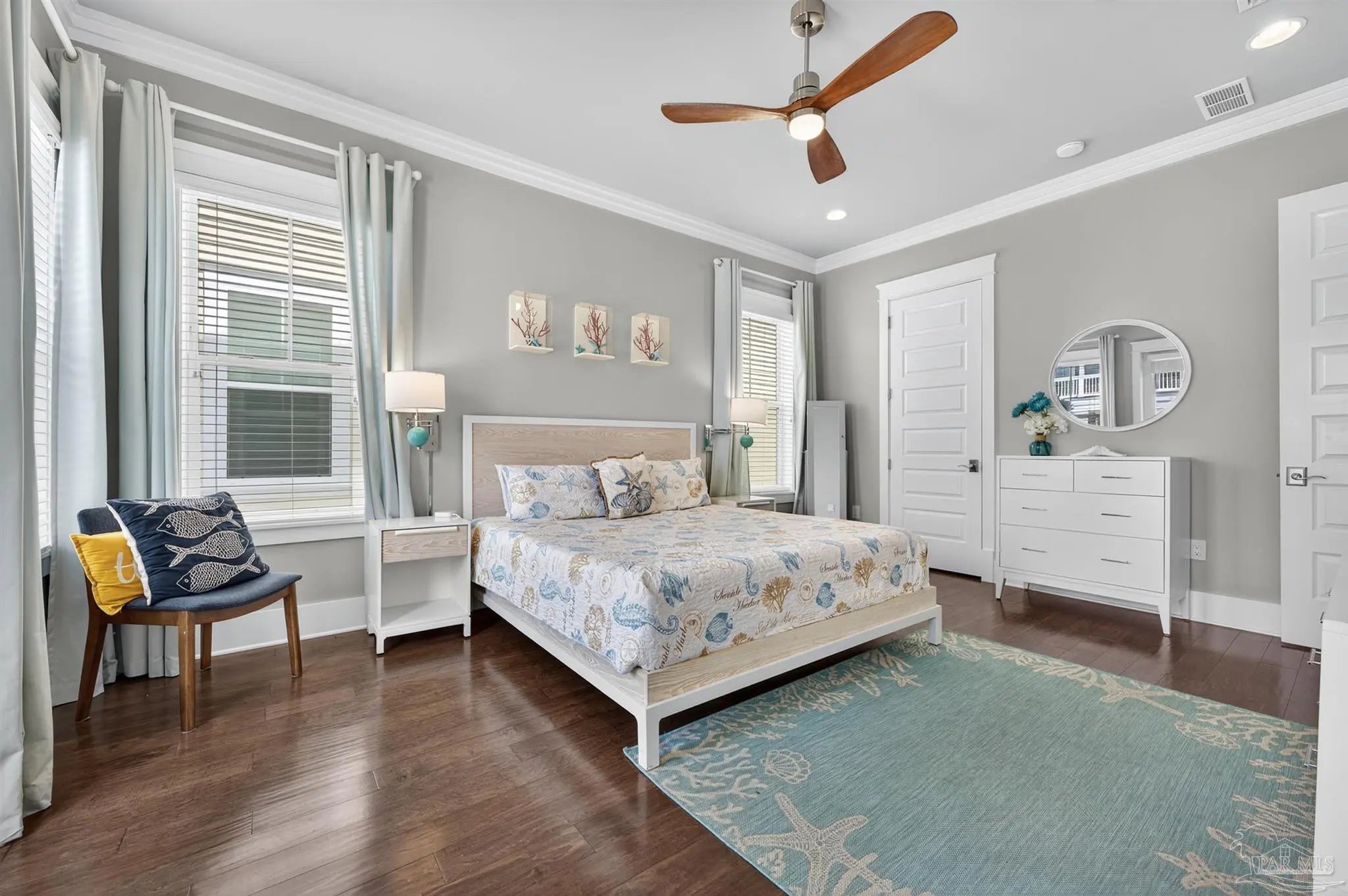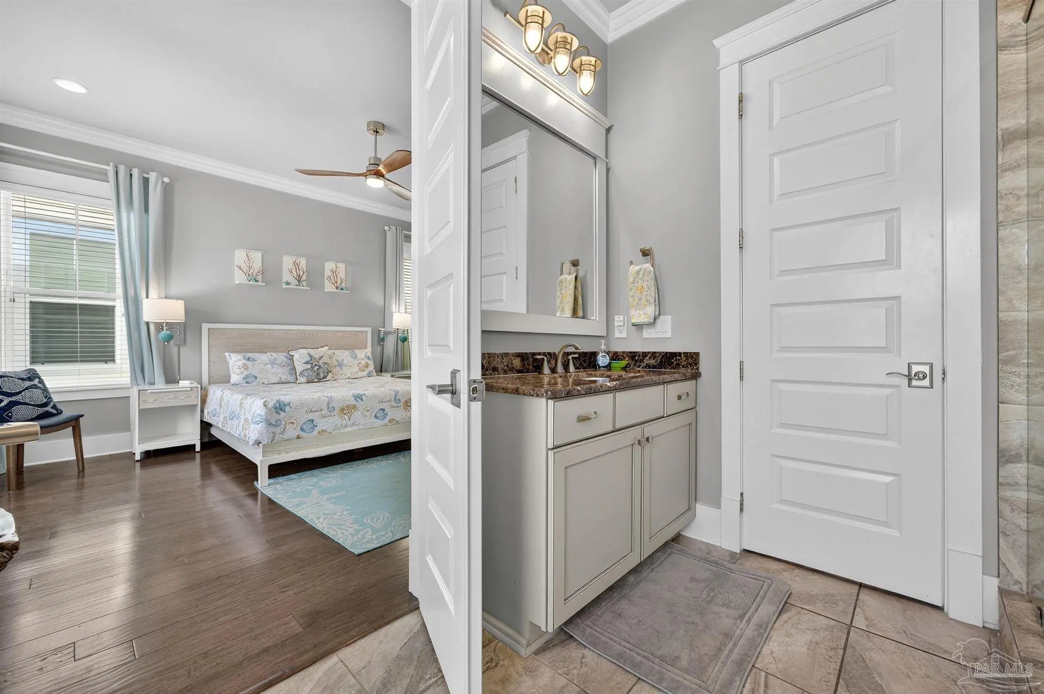 - Storage, Baseboards, Ceiling Fan(s), Crown Molding, High Ceilings, Recessed Lighting