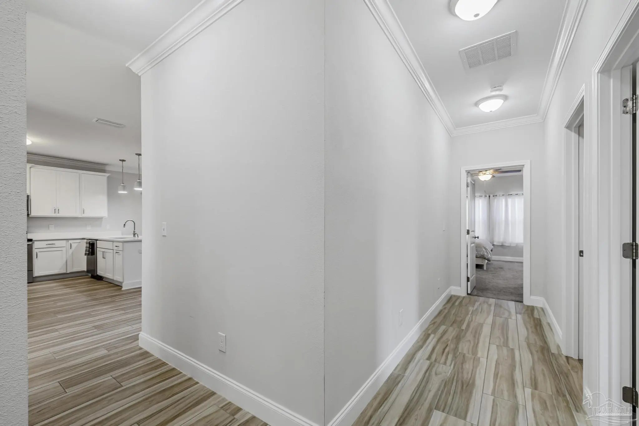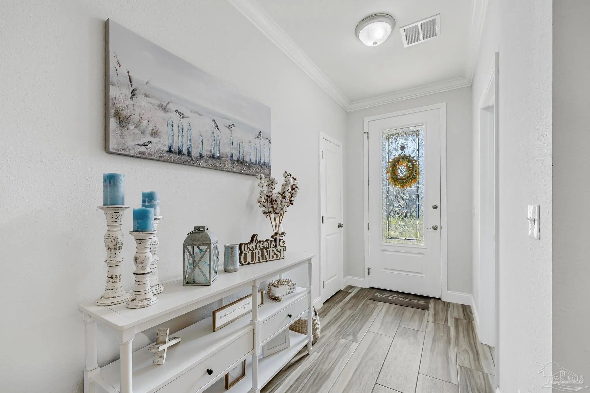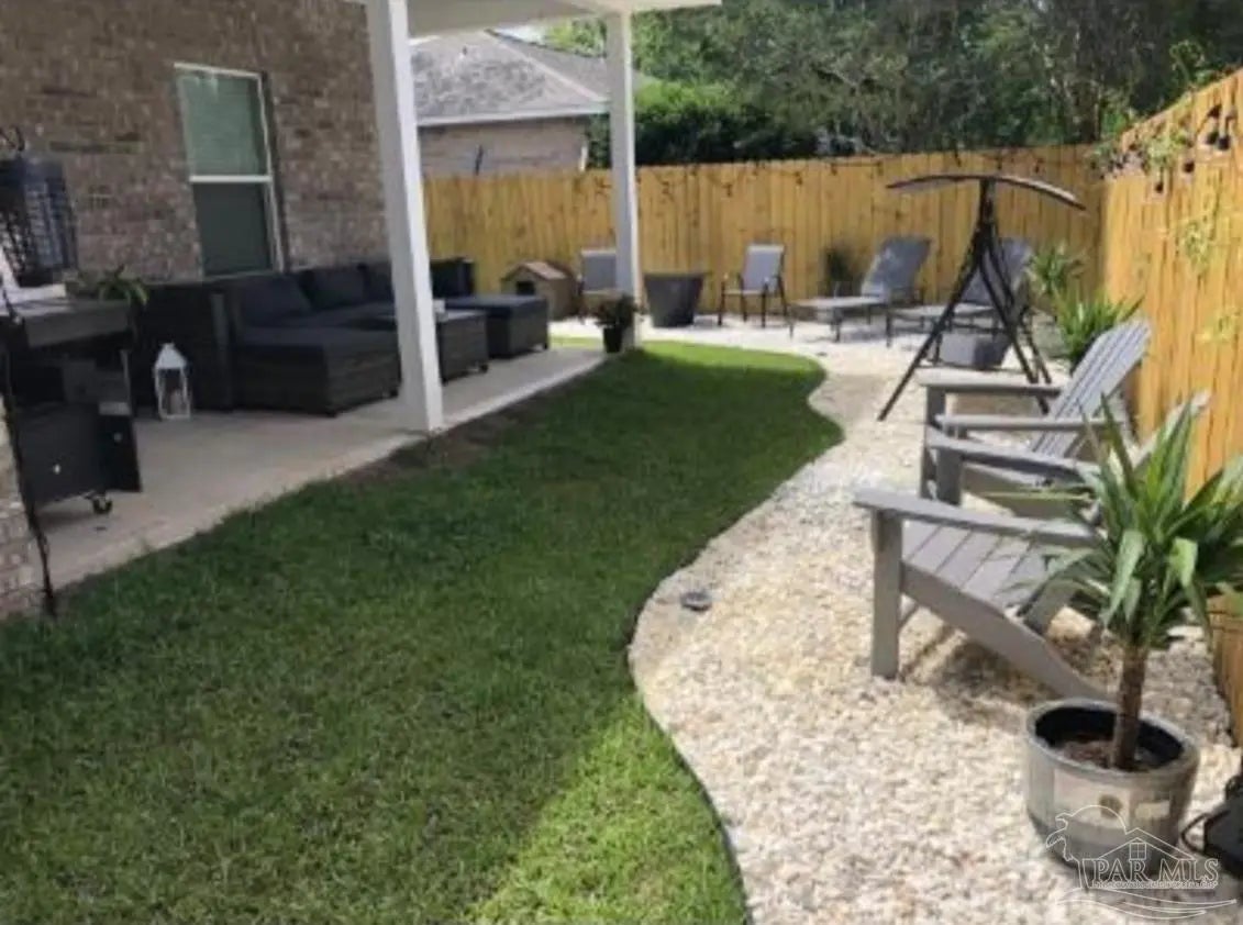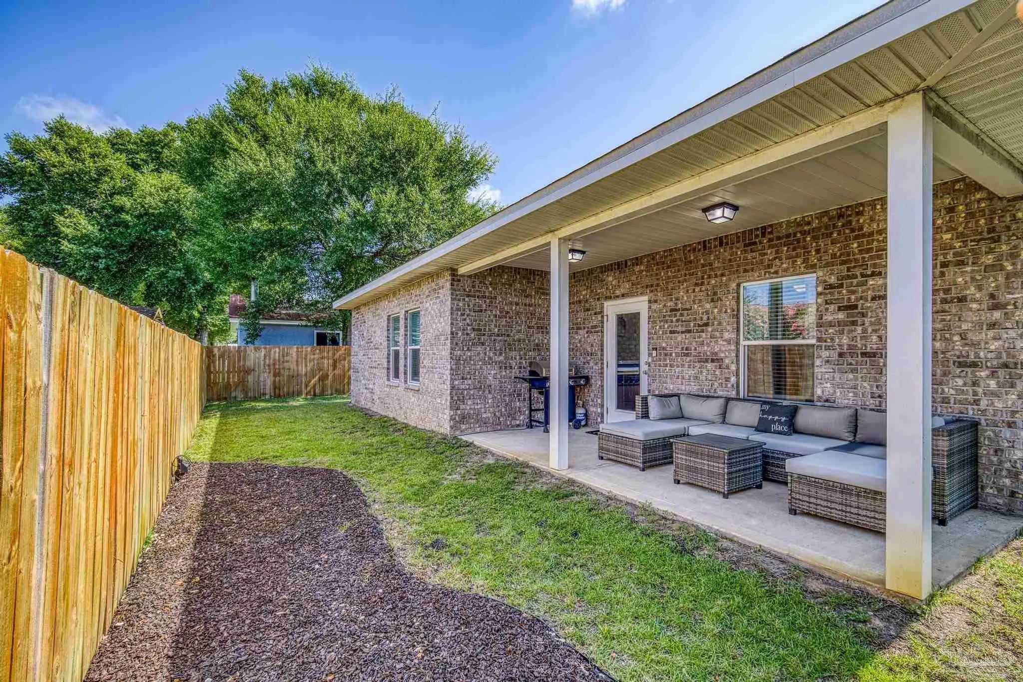 Coastal Living Meets Everyday Convenience – Just Minutes from Navarre Beach & Hurlburt Field Welcome to this beautifully maintained 3-year-old home that offers the ideal balance of lifestyle and location. Perfectly positioned just 6 miles from the sugar-white sands of Navarre Beach and only 4 miles from Hurlburt Field, this home is a standout for both beach lovers and military families seeking a convenient, coastal retreat. Step inside to discover a thoughtfully designed interior featuring 9-foot ceilings, an open-concept layout perfect for entertaining, and designer finishes throughout. The kitchen and bathrooms are highlighted by sleek quartz countertops, while the spacious master suite boasts a vaulted ceiling and a beautifully tiled walk-in shower. Additional upgrades include custom blinds, tile flooring, and energy-efficient features that help keep utility costs low. Major systems—including the HVAC, roof, and hot water heater—were all installed in 2022, offering peace of mind and long-term value. Home has custom hurricane shutters. Washer and Dryer only 3 years old will convey. Outside, the private, fully fenced backyard provides a peaceful escape—ideal for relaxing evenings or weekend gatherings. Located in a family-friendly neighborhood with access to top-rated schools and local amenities, this home is more than just a place to live—it’s your gateway to an elevated lifestyle. Don’t miss the opportunity to make this exceptional property yours—schedule your private showing today!