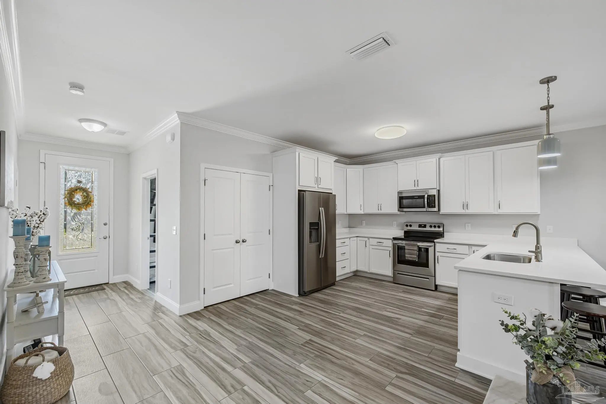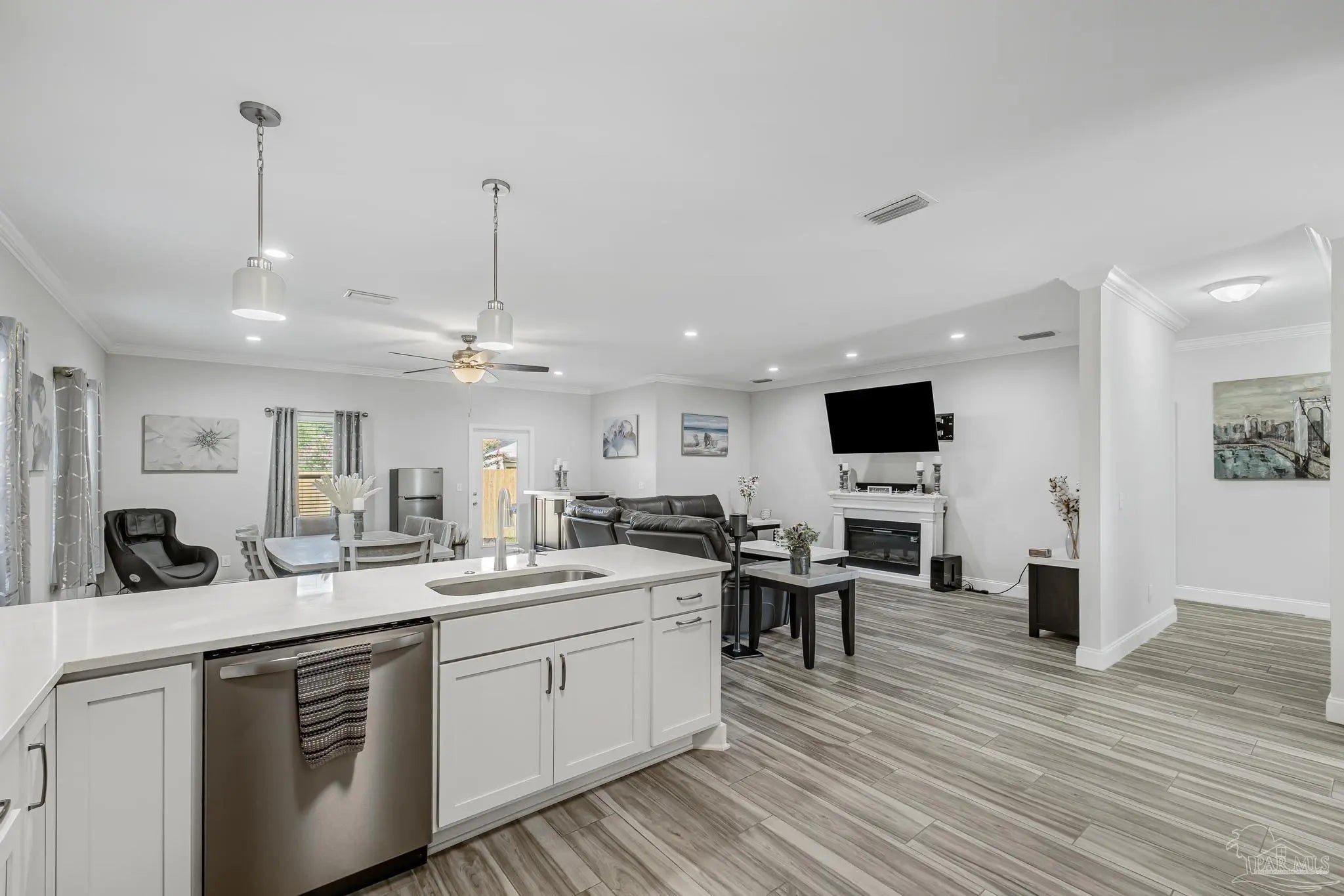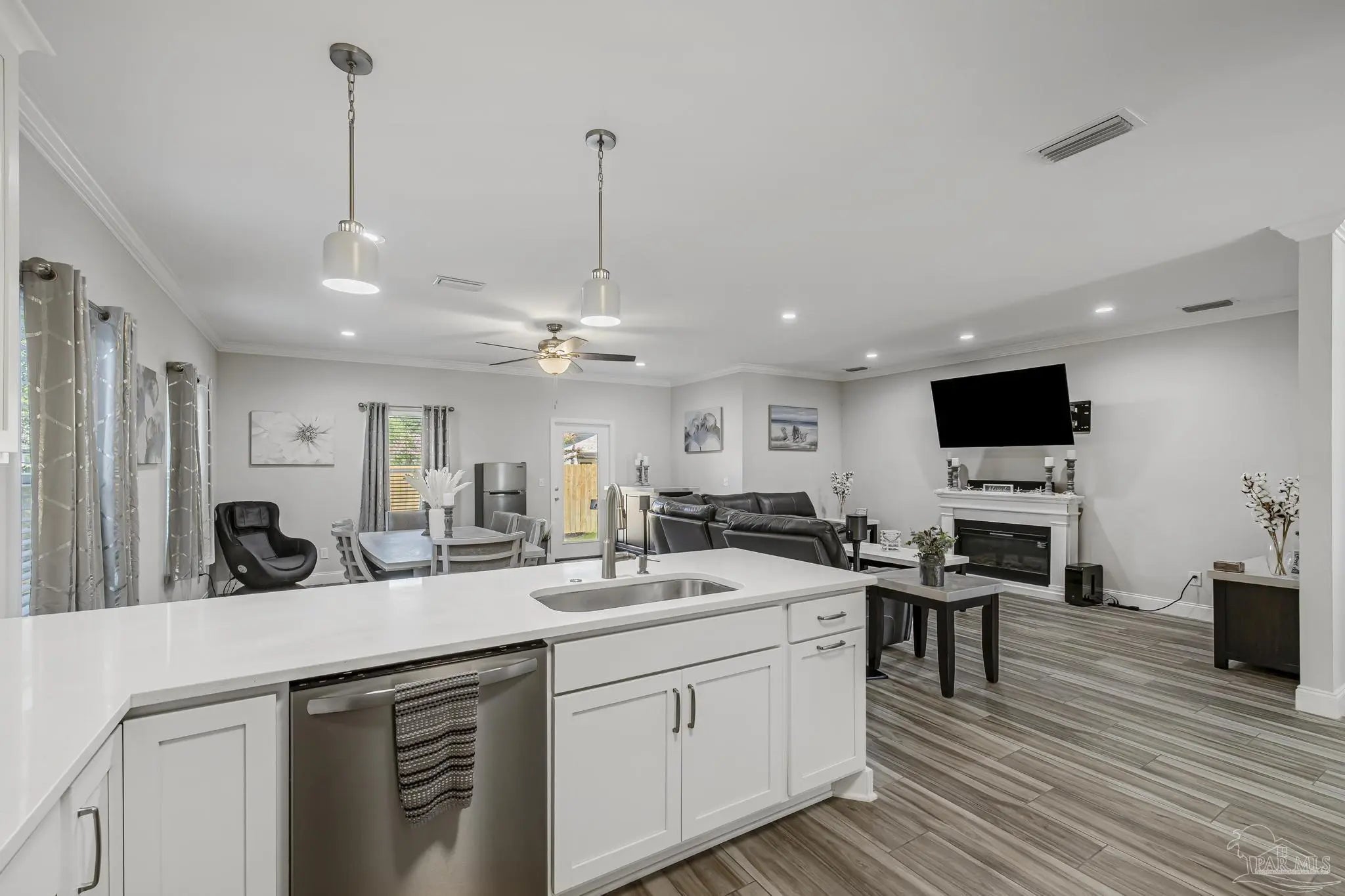 Coastal Living Meets Everyday Convenience – Just Minutes from Navarre Beach & Hurlburt Field Welcome to this beautifully maintained 3-year-old home that offers the ideal balance of lifestyle and location. Perfectly positioned just 6 miles from the sugar-white sands of Navarre Beach and only 4 miles from Hurlburt Field, this home is a standout for both beach lovers and military families seeking a convenient, coastal retreat. Step inside to discover a thoughtfully designed interior featuring 9-foot ceilings, an open-concept layout perfect for entertaining, and designer finishes throughout. The kitchen and bathrooms are highlighted by sleek quartz countertops, while the spacious master suite boasts a vaulted ceiling and a beautifully tiled walk-in shower. Additional upgrades include custom blinds, tile flooring, and energy-efficient features that help keep utility costs low. Major systems—including the HVAC, roof, and hot water heater—were all installed in 2022, offering peace of mind and long-term value. Home has custom hurricane shutters. Washer and Dryer only 3 years old will convey. Outside, the private, fully fenced backyard provides a peaceful escape—ideal for relaxing evenings or weekend gatherings. Located in a family-friendly neighborhood with access to top-rated schools and local amenities, this home is more than just a place to live—it’s your gateway to an elevated lifestyle. Don’t miss the opportunity to make this exceptional property yours—schedule your private showing today!