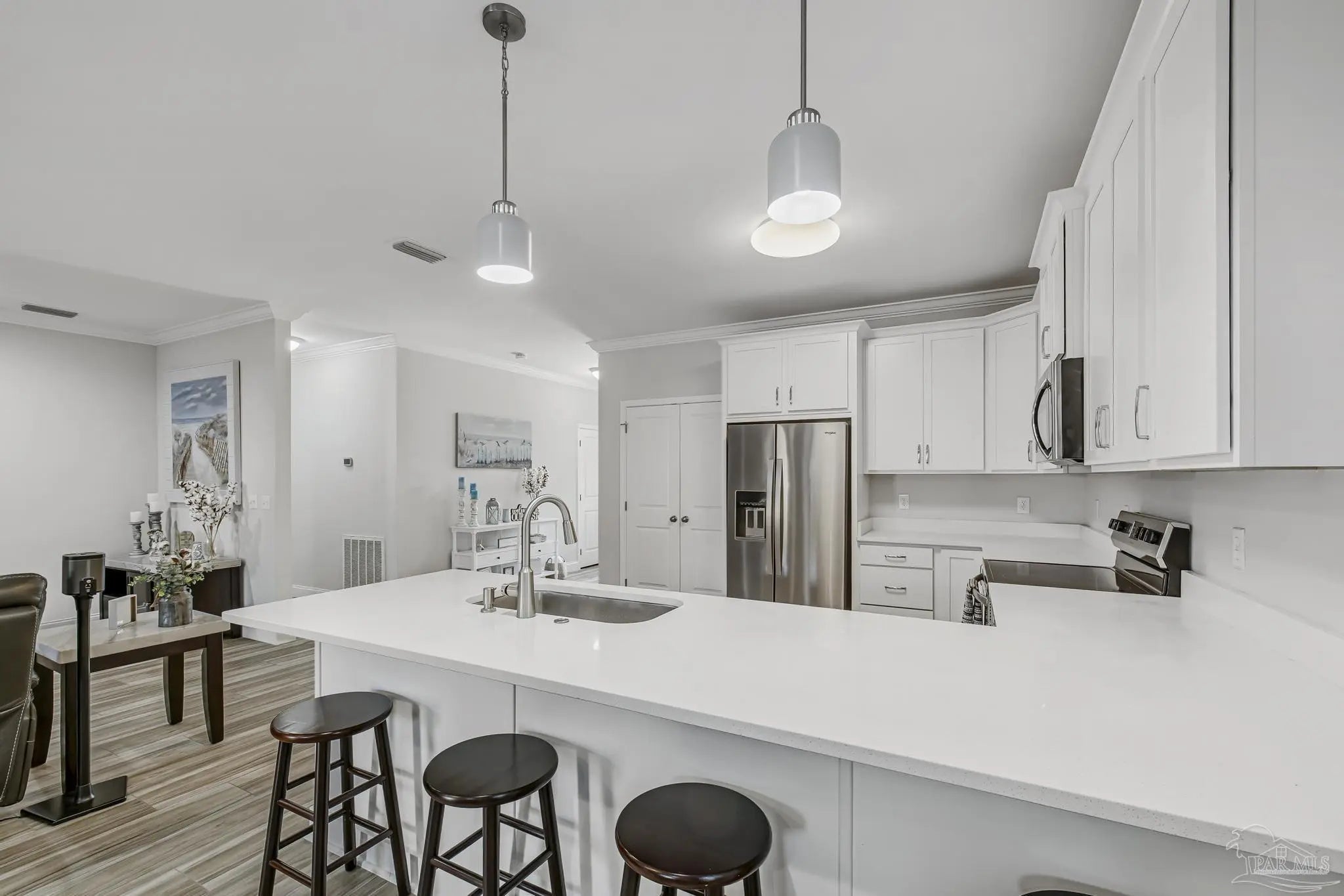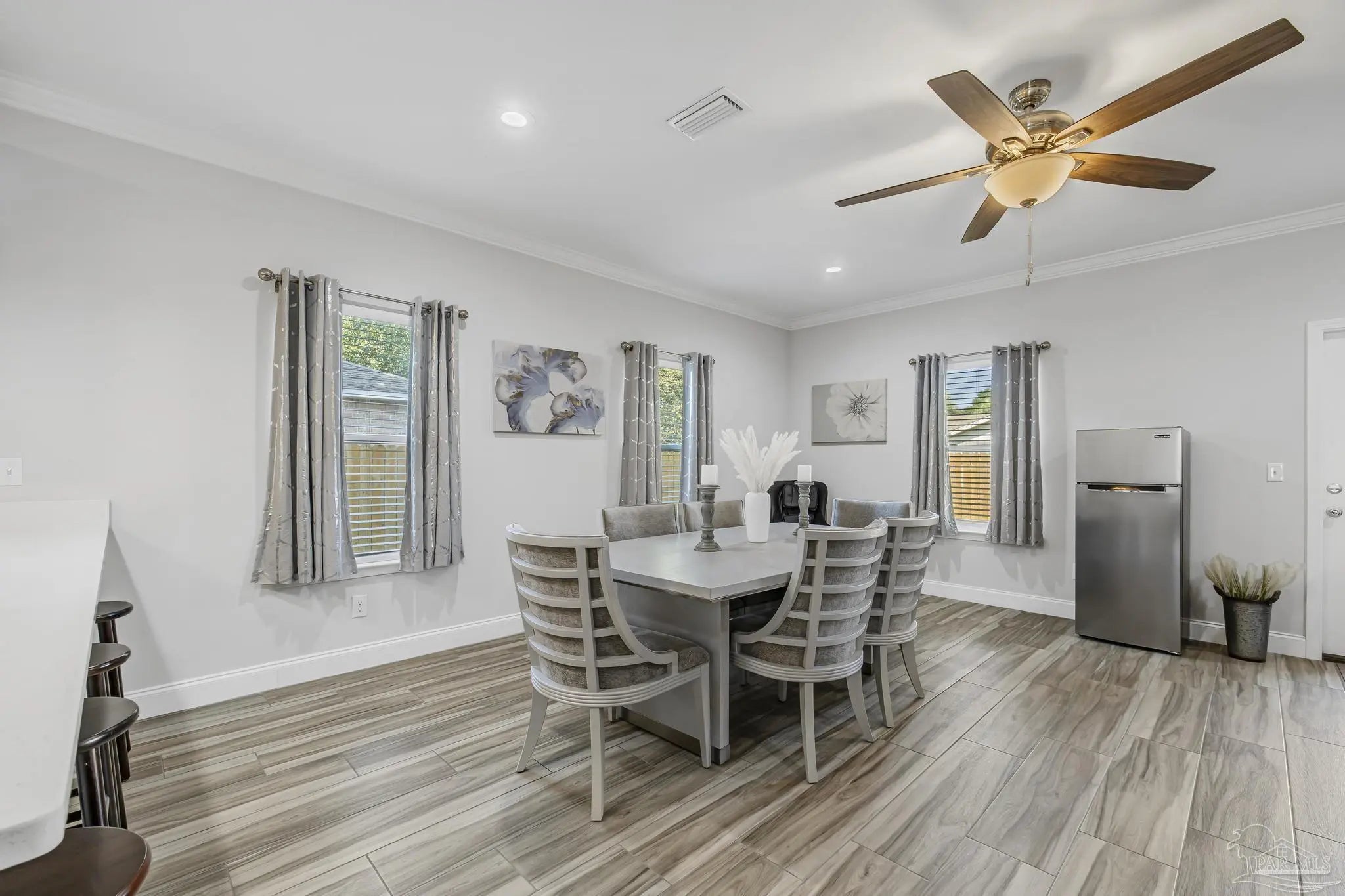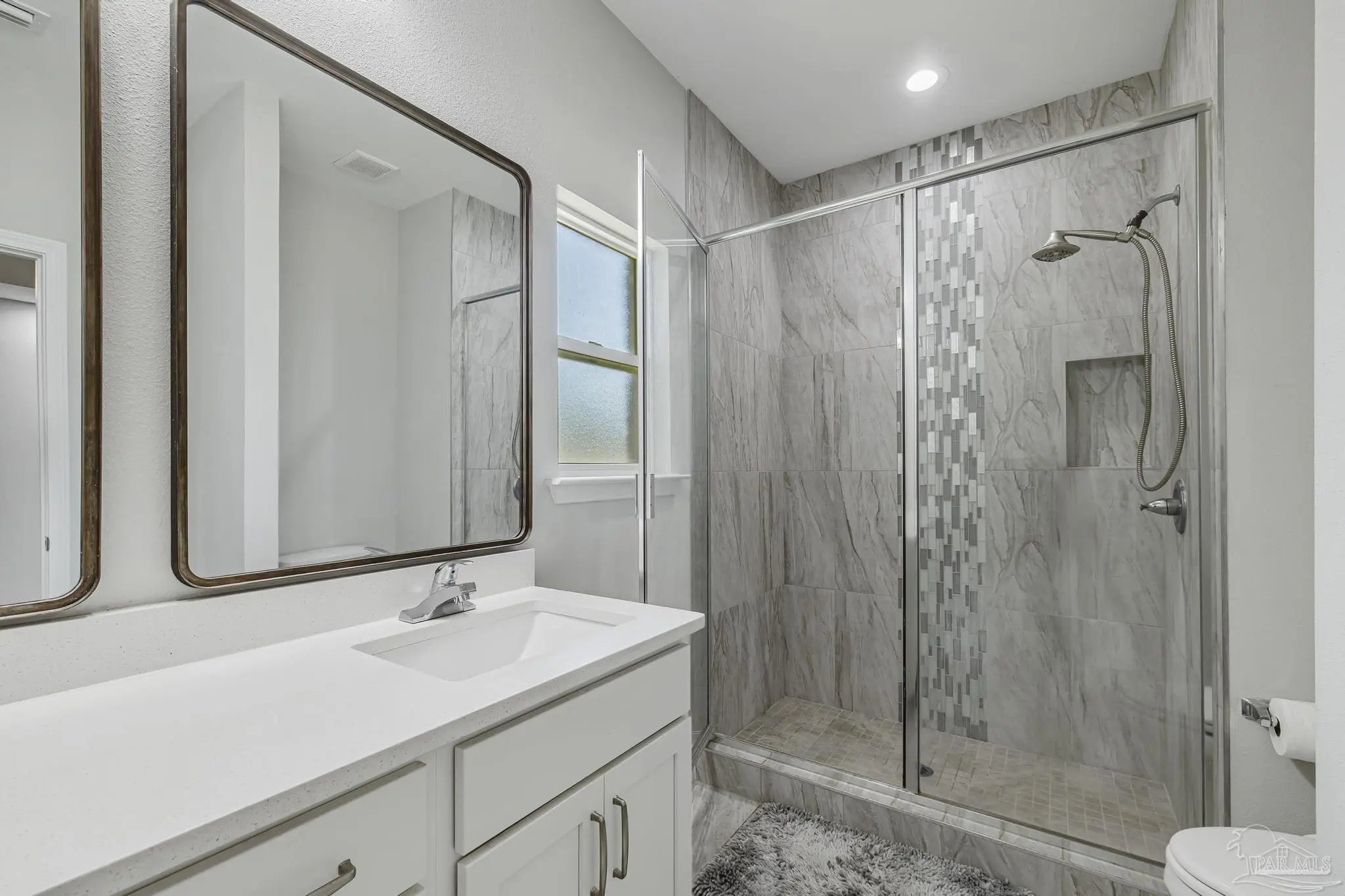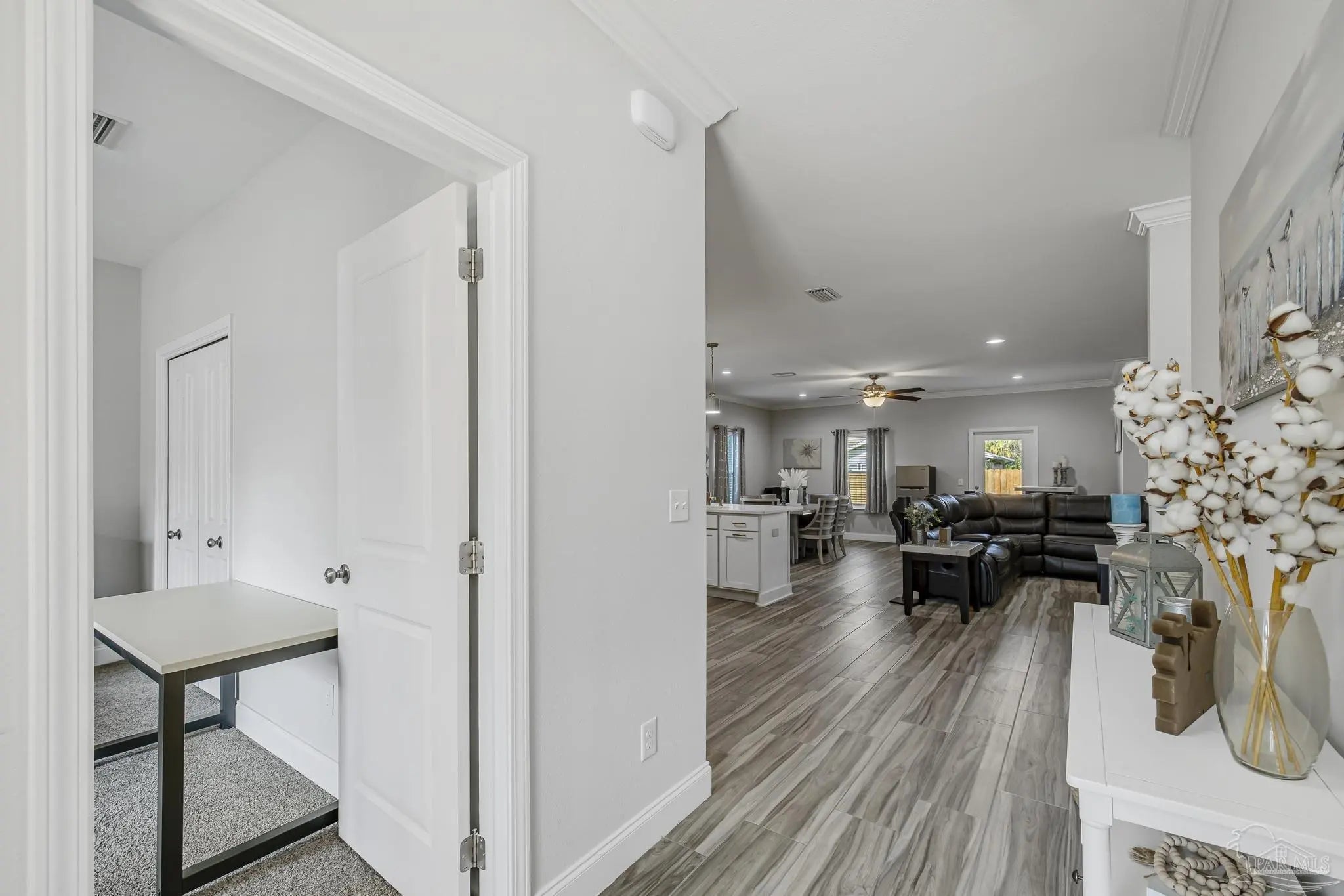 Coastal Living Meets Everyday Convenience – Just Minutes from Navarre Beach & Hurlburt Field Welcome to this beautifully maintained 3-year-old home that offers the ideal balance of lifestyle and location. Perfectly positioned just 6 miles from the sugar-white sands of Navarre Beach and only 4 miles from Hurlburt Field, this home is a standout for both beach lovers and military families seeking a convenient, coastal retreat. Step inside to discover a thoughtfully designed interior featuring 9-foot ceilings, an open-concept layout perfect for entertaining, and designer finishes throughout. The kitchen and bathrooms are highlighted by sleek quartz countertops, while the spacious master suite boasts a vaulted ceiling and a beautifully tiled walk-in shower. Additional upgrades include custom blinds, tile flooring, and energy-efficient features that help keep utility costs low. Major systems—including the HVAC, roof, and hot water heater—were all installed in 2022, offering peace of mind and long-term value. Home has custom hurricane shutters. Washer and Dryer only 3 years old will convey. Outside, the private, fully fenced backyard provides a peaceful escape—ideal for relaxing evenings or weekend gatherings. Located in a family-friendly neighborhood with access to top-rated schools and local amenities, this home is more than just a place to live—it’s your gateway to an elevated lifestyle. Don’t miss the opportunity to make this exceptional property yours—schedule your private showing today!