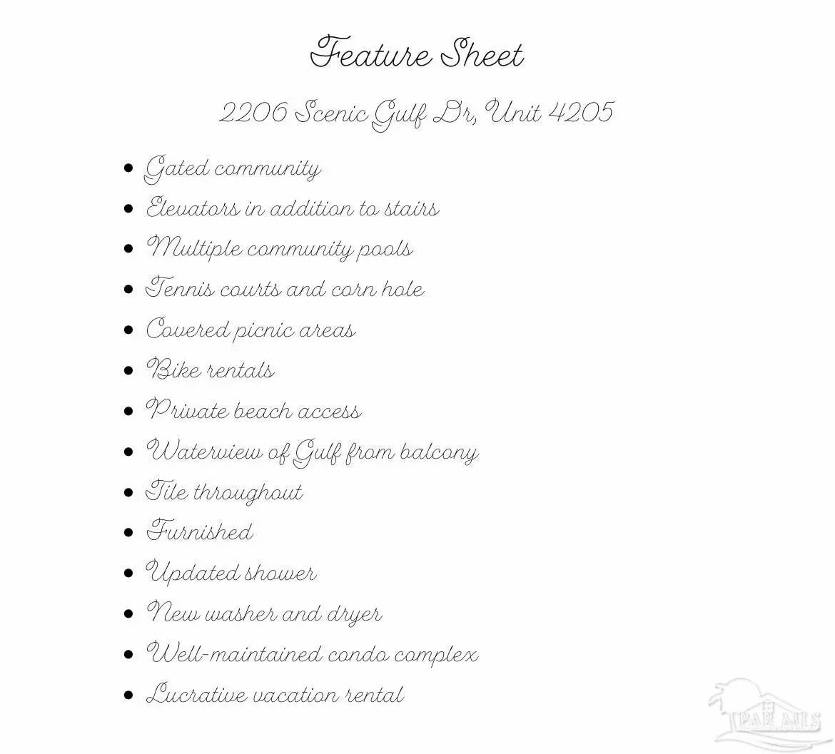 This beautifully updated 1 bedroom, 1.5 bath condo comfortably sleeps 4 and offers the perfect mix of relaxation and convenience in the heart of Miramar Beach. Since joining the vacation rental market in May, this charming unit has already earned over $20,000, making it a fantastic investment opportunity or personal beach retreat. Projections for this rental are $32,000-$42,000 annually. Inside, you'll find comfortable furnishings and modern appliances, creating a fresh and welcoming space for guests. There is a queen bed in the bedroom and 2 twin bunks in the hall. The bathrooms include 2 vanities/toilets and 1 shower with a full sized washer and dryer inside the unit. Enjoy the fully-equipped kitchen, and a private balcony. ideal for sipping your morning coffee as the salt air breezes in from the Gulf. Conveniently, there is an elevator available to bring you to the 2nd floor where this condo is located. Nestled in a gated community, the complex is located across from the private beach on the Gulf and has amenities such as an exercise room, pool, bikes, tennis courts, cornhole, and more. Just steps from popular local spots like Captain Dave's and Kenny D's, you're also a short bike ride from The Carb Trap and local coffee shops. Whether you're enjoying a day on the beach, dining out, or relaxing on the balcony, everything you need is right here. If you're looking to grow your rental portfolio or secure a dreamy beachside getaway, this condo is sold furnished and offers turnkey convenience, strong rental performance, and all the charm of Miramar Beach living.