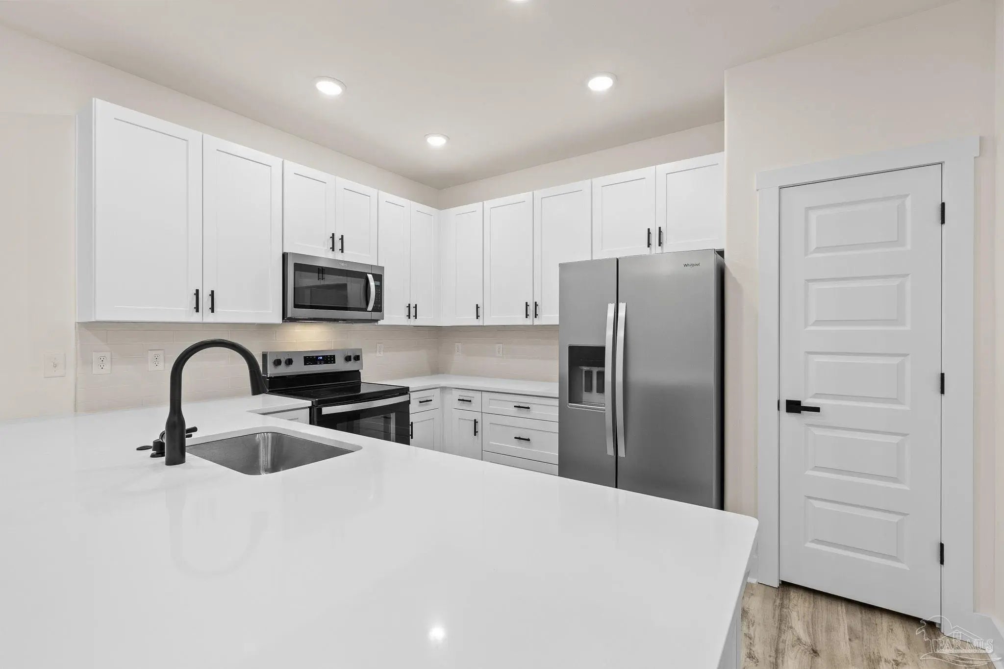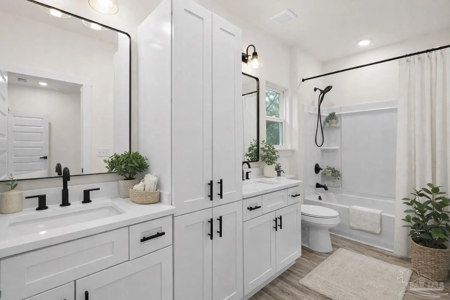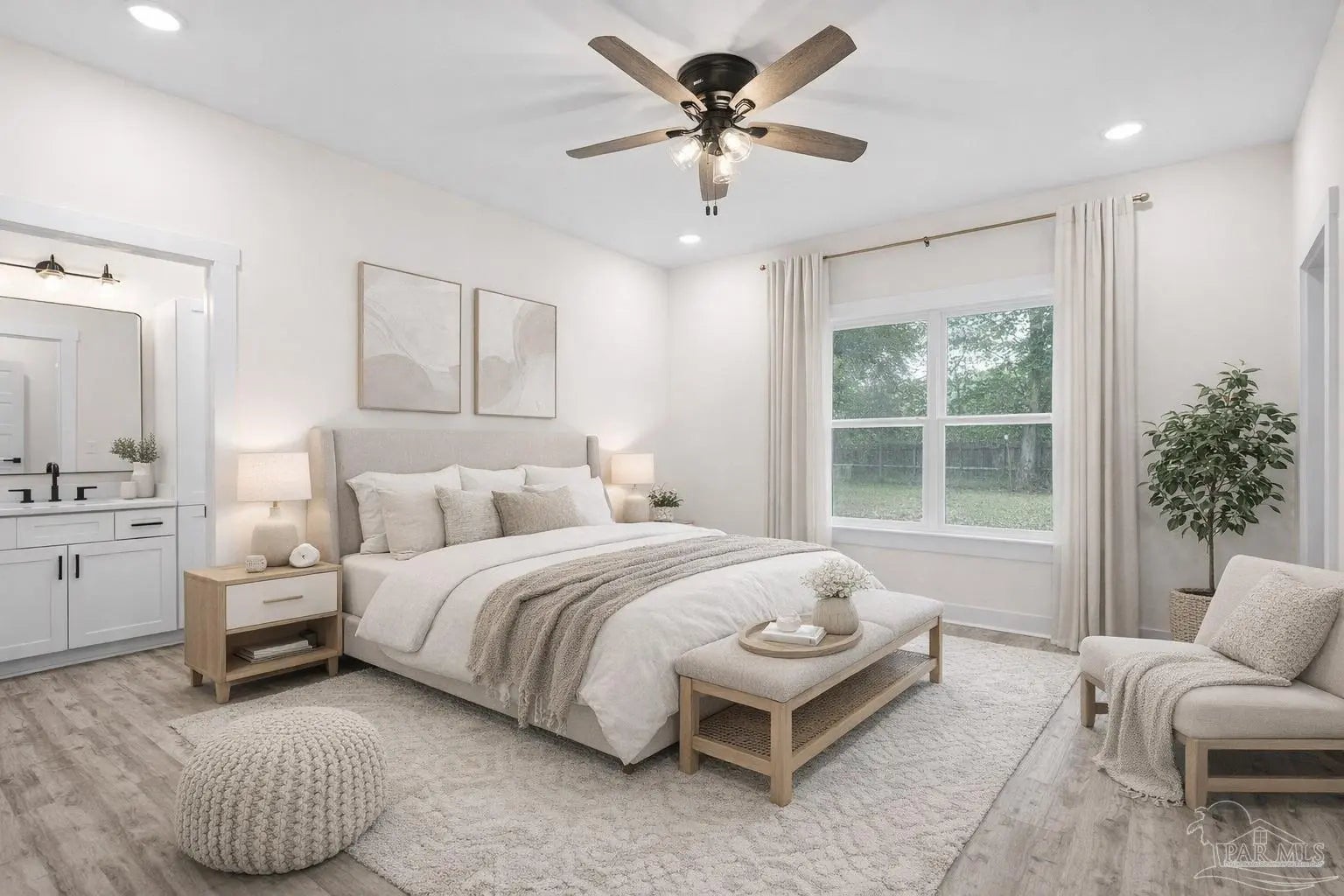 This newly completed 2-bedroom, 2-bath Pensacola residence is move-in ready and waiting for its first owner. Thoughtfully designed and expertly built, this modern new construction delivers clean lines, efficient flow, and elevated finishes throughout. Inside, nine-foot ceilings and an open-concept layout create a bright, airy feel, while luxury vinyl plank flooring, soft-close cabinetry, and quartz-style countertops add a polished, contemporary edge. Every square foot is intentional — designed to live beautifully and effortlessly from day one. An attached garage, energy-efficient construction, hurricane protection, and brand-new stainless steel appliances provide comfort, security, and peace of mind — allowing you to focus on enjoying your home. The location completes the lifestyle: approximately 15 minutes to Downtown Pensacola, 20 minutes to NAS, and 30 minutes to the white sands of Pensacola Beach. Close to everything, the perfect balance of convenience and coastal living. Quality, value, and modern design come together here. This is an excellent opportunity to start your story in a brand-new, move-in-ready home in the ever growing Pensacola area. Additional incentive available: This home qualifies for a reduced interest rate through a seller-paid rate buy-down. Text for details and to learn more.Please note, some images shown are virtually staged