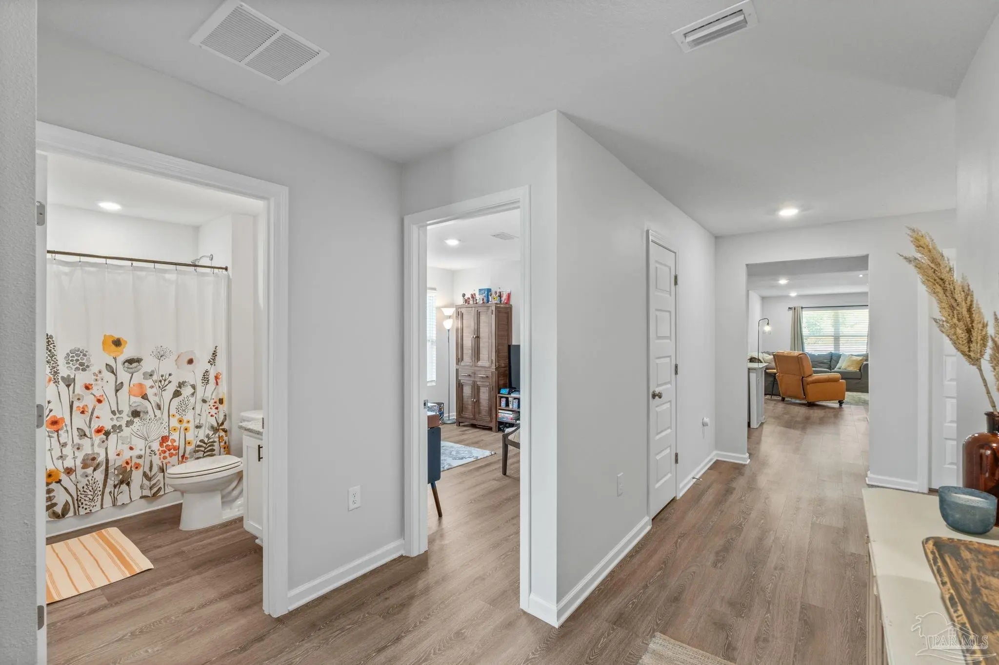 FRESH, FAB AND FURNISHED! Welcome to this stylishly decorated 4-bedroom, 2-bathroom home for sale in the Preserve at Deer Run community, located in the heart of NW Pensacola/Beulah—one of the fastest-growing areas in Escambia County. This highly desirable floorplan combines modern design, open-concept living and convenience. The furnishings were thoughtfully purchased for this home and will CONVEY with the sale if the you desire a move-in ready dream home! Inside, the spacious foyer leads to two bedrooms and a full bath up front. A versatile fourth bedroom with closet sits just off the entry, perfect for guests, a home office, work out room, playroom, or den. The split-bedroom layout offers both privacy and connection. The bright, modern kitchen features a large center island with breakfast bar, pantry, stainless steel appliances, and dining area that flows seamlessly into the living room—perfect for both casual meals and entertaining. An abundance of natural light from the back windows adds to the appeal, and allows views of the backyard with community greenspace beyond adding extra privacy to the fenced in yard. The generous primary suite provides room for a sitting area or desk, and includes dual vanities, an oversized walk-in shower, expansive walk-in closet, and additional linen storage. Convenient to Navy Federal, top-rated schools, shopping, medical facilities and easy I-10 access, this home has everything you need including a sparkling community pool, splash pad and barbecue grills for birthday parties, gatherings and summer enjoyment. Furniture was purchased specifically for this home and conveys if desired- it couldn’t be easier to make this home your very own so schedule your appointment today for a personal viewing!