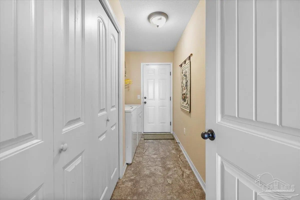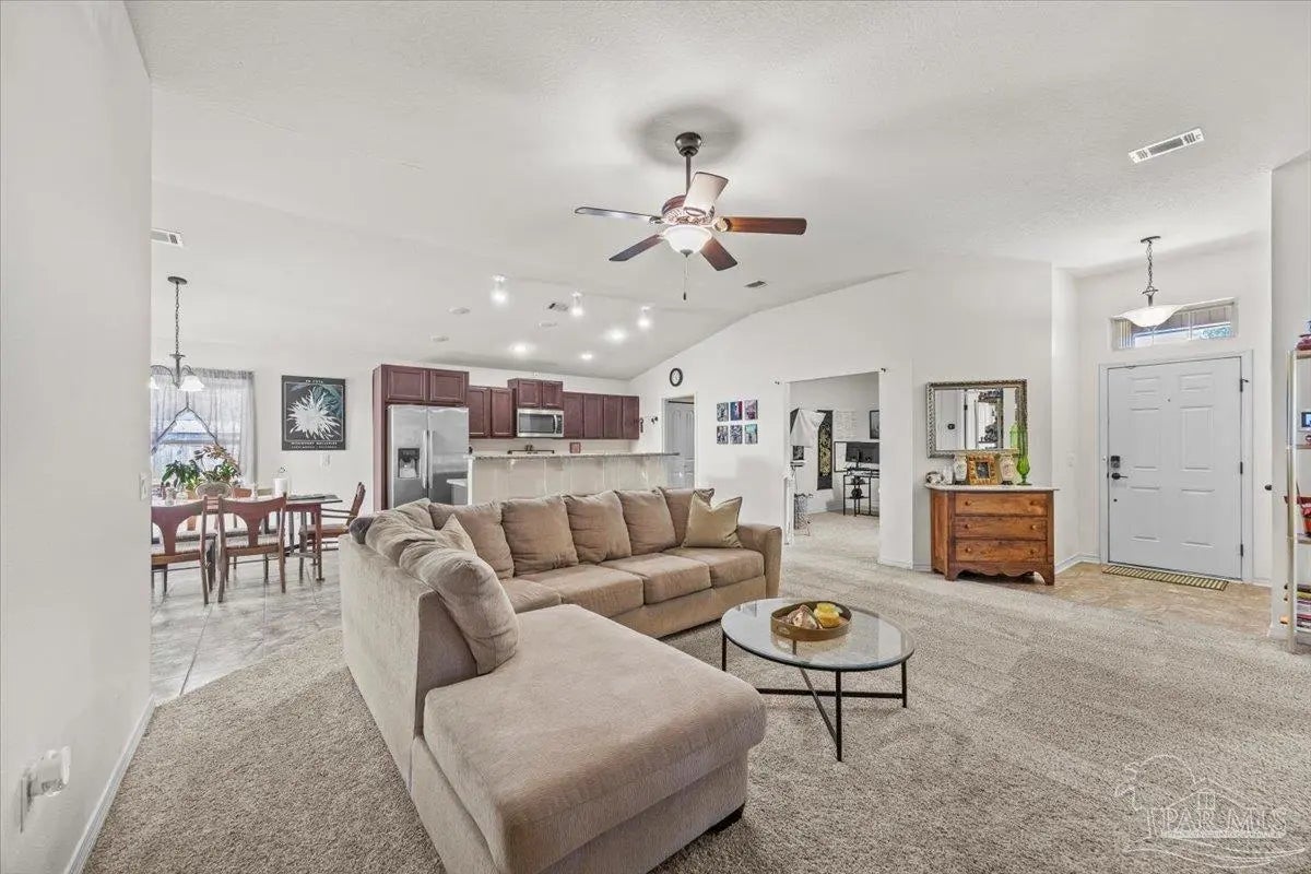 Welcome to your dream home in the desirable Woodlands community in Pace, Florida! This beautifully maintained 3 bedroom, 2 bathroom corner lot home features a spacious open floor plan with a split-bedroom layout for privacy, and a dedicated office. The chef-inspired kitchen boasts granite countertops and stainless steel appliances, flowing seamlessly into the living area for easy entertaining. Step outside to your private backyard oasis with a paver patio, shaded seating area, and custom brick fireplace, perfect for relaxing or hosting gatherings. With a double-car garage, meticulous updates, and a prime location near shopping, dining, parks, and top-rated schools, this move-in ready home offers both comfort and style.