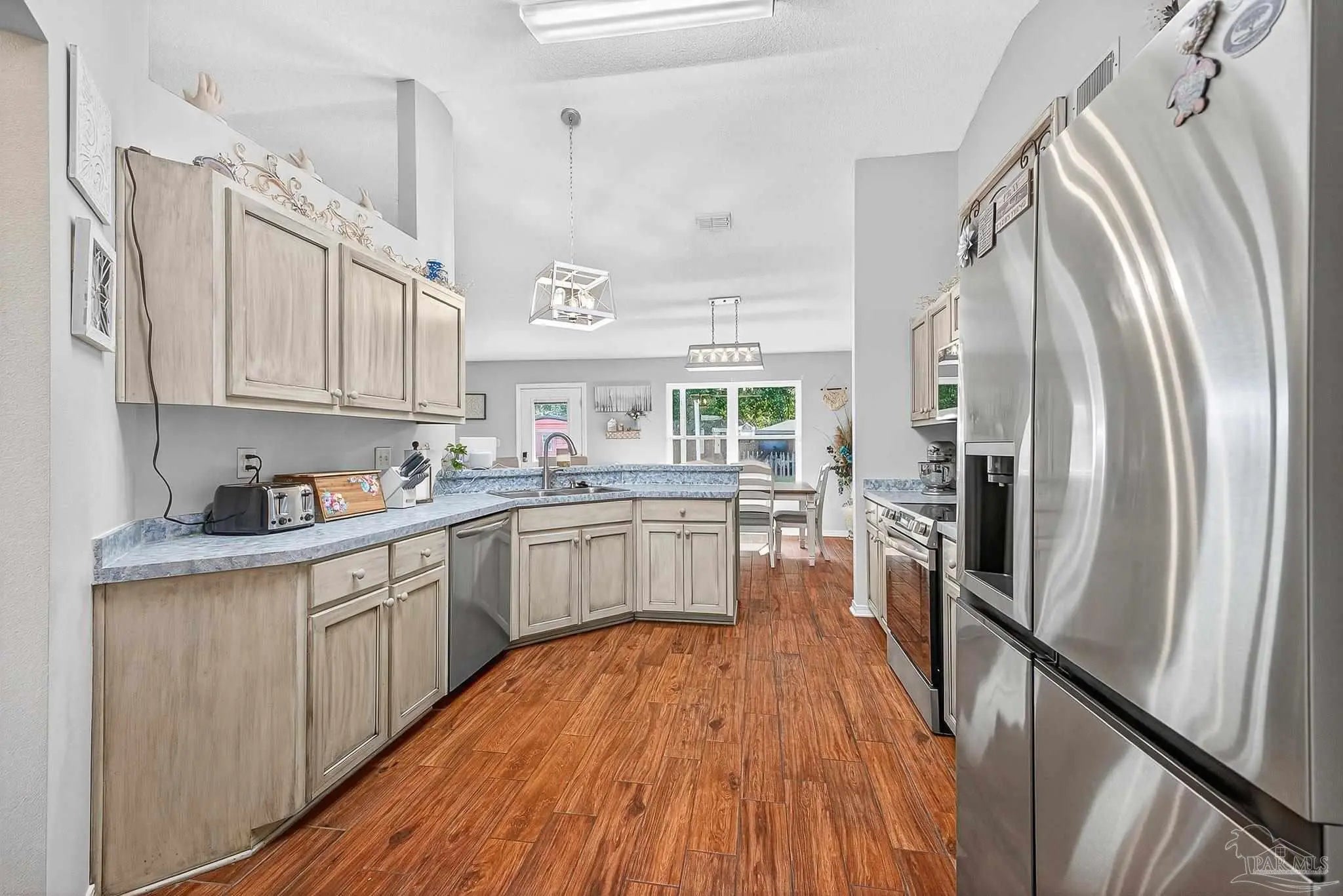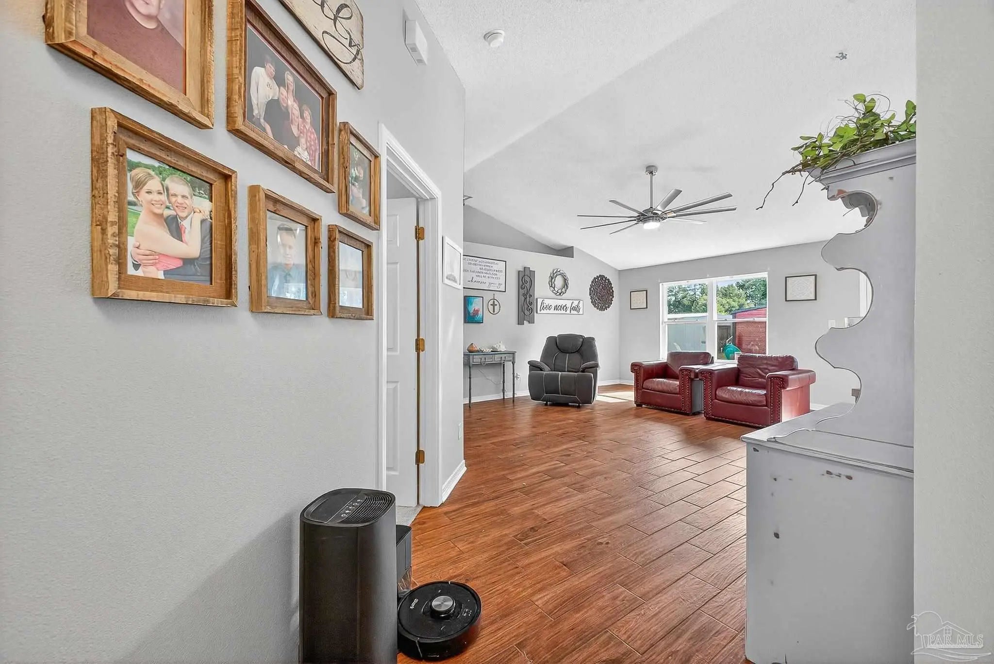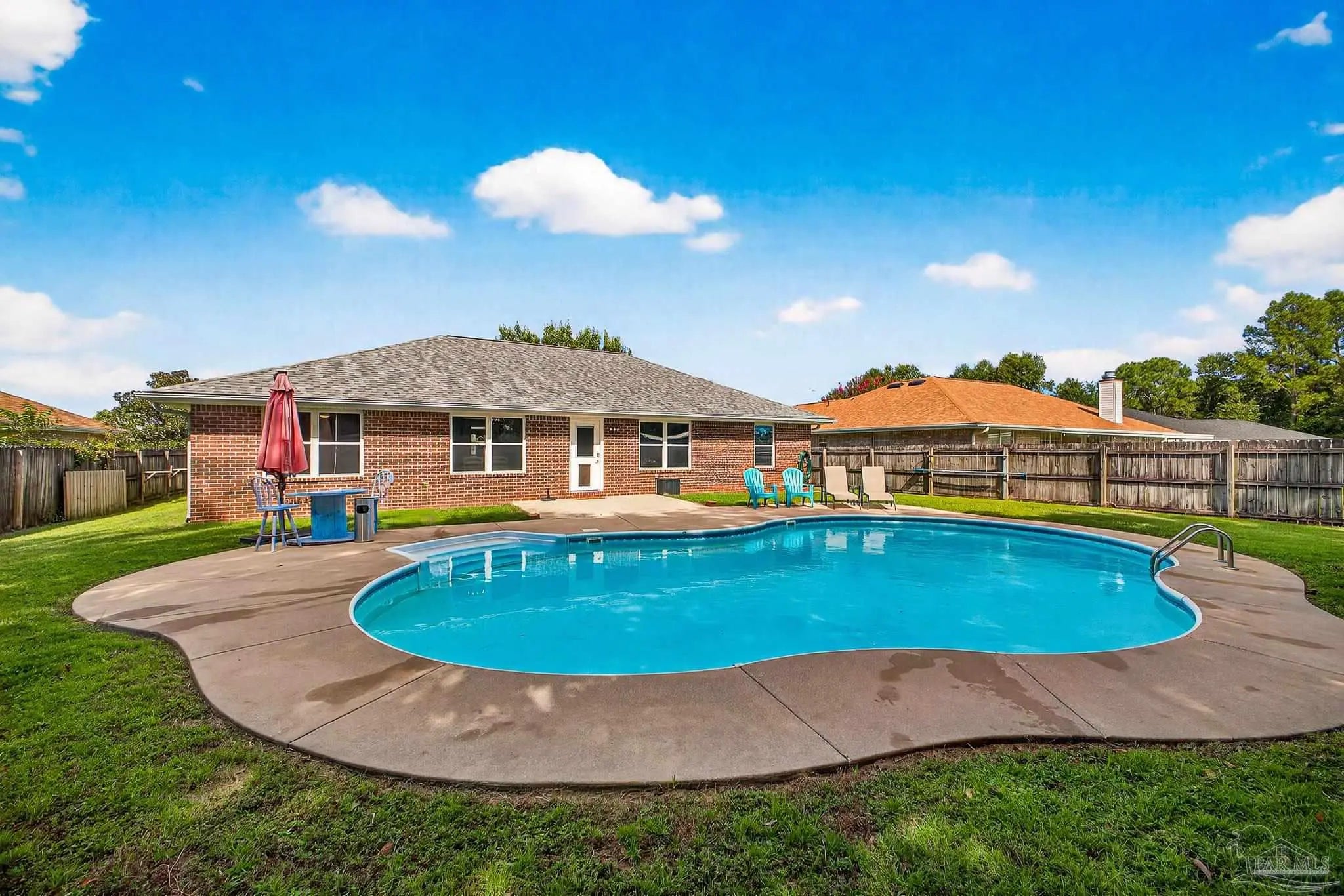 Welcome to this beautifully updated 4-bedroom, 2-bath home located in the Pace school district! Featuring a bright open concept design with vaulted ceilings, this home is perfect for both entertaining and everyday living. The kitchen shines with brand-new appliances and freshly painted cabinets, while the spacious living areas are enhanced by modern updates throughout. Step outside to your private backyard oasis, complete with a screened patio, fenced yard, and sparkling saltwater pool-perfect for relaxing or hosting gatherings year-round. Peace of mind comes with recent major upgrades, including a newer roof (2020), HVAC (2019), water heater (2022), and windows(2016), ensuring comfort and efficiency for years to come. With its ideal location, thoughtful upgrades, and inviting layout, this home is ready to welcome its next owners!