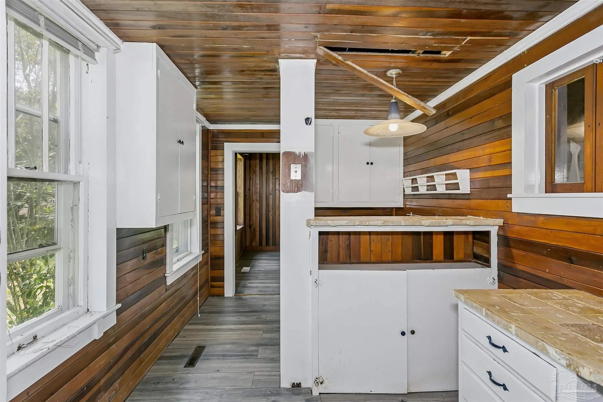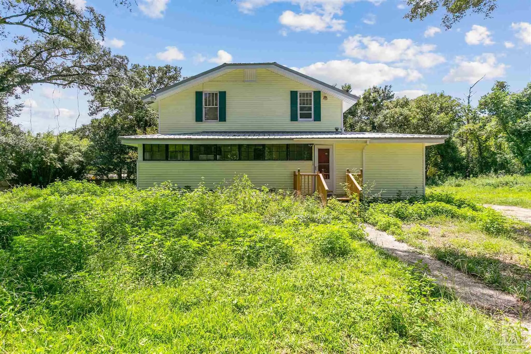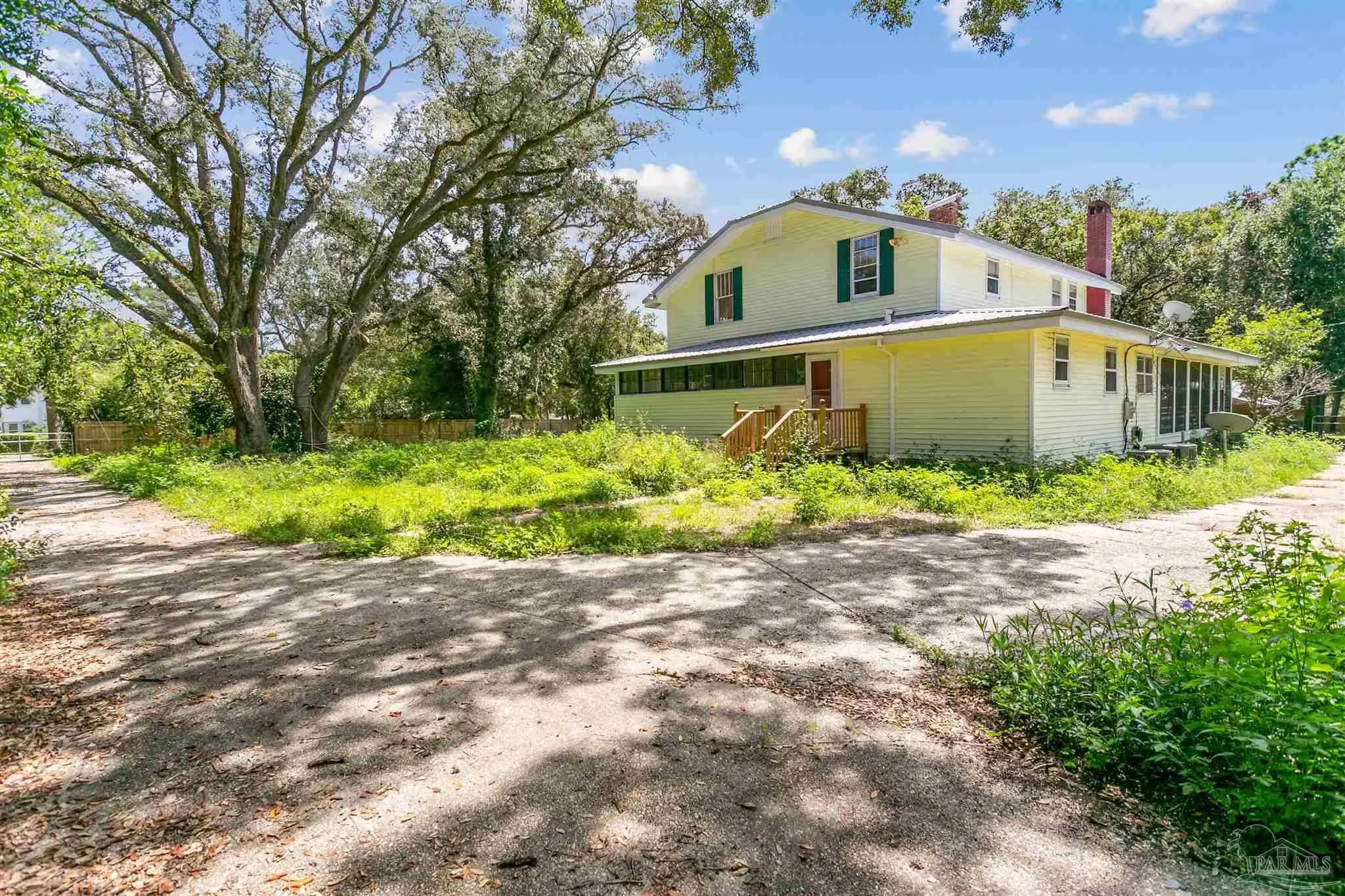 This is the home you've been waiting for near the beautiful beaches of Perdido Key. Situated on a flat .75 acres, just a block from the water on Bayou Grande. This historic 1925 built home is a charming 5 bedroom, 2 bath, waiting for its new owners to bring it to life. The first floor features a phenominal wrap around porch with a fireplace, oversized living area, spacious main bedroom, chef's kitchen with wood flooring, lots of storage, new copper sink, backsplash, a bar area and formal dining room/sunroom. An amazing feature of this home are the living areas including a perfectly placed and spacious flex room with the versatility to make it anything that you desire. Upstairs there are 4 large bedrooms and another full bathroom. The back yard is completely fenced in and has a large driveway with a double entry/exit. Plus, there is an oversized detached garage space! Short drive to downtown Pensacola, Bases, beaches and hospitals. The .75 acre property features lots of greenery for privacy, metal roof and lots of parking for boats, RVs or anything your heart desires. This property offers plenty of parking with its double entrance and exit drive ways. Flood zone X. Call today to schedule your private tour!