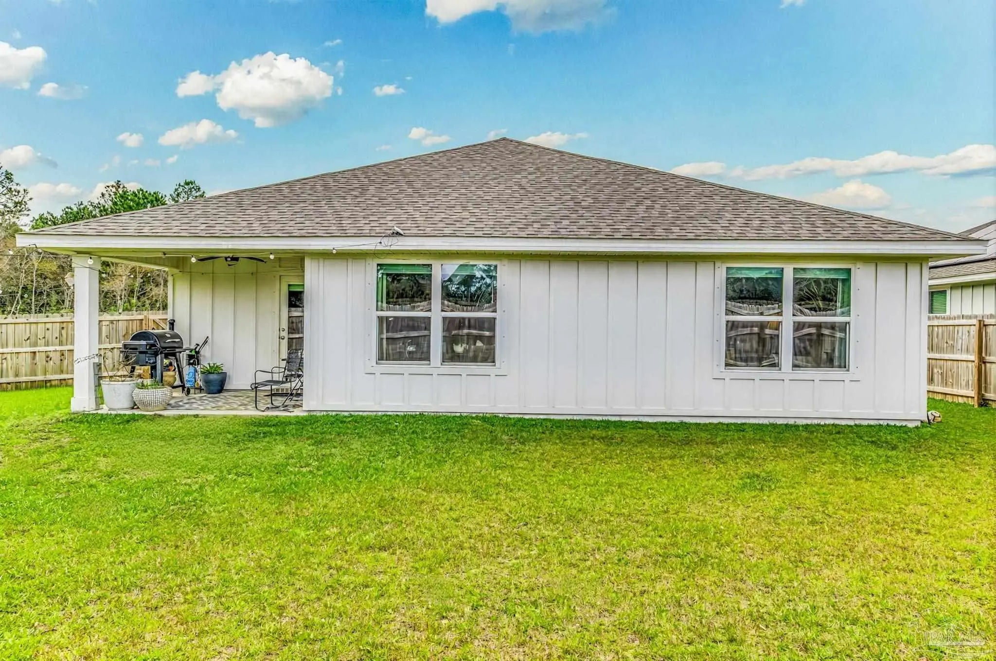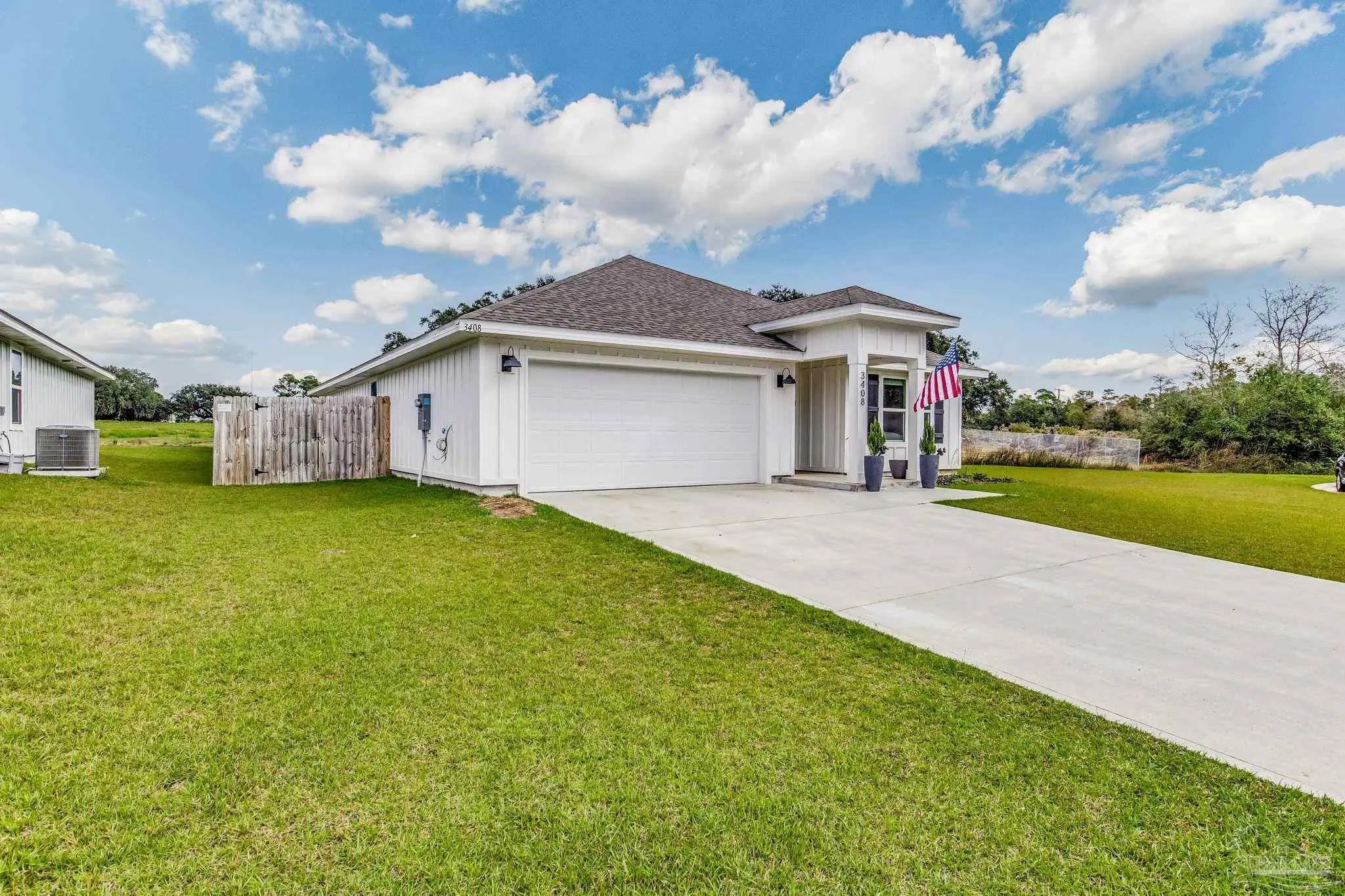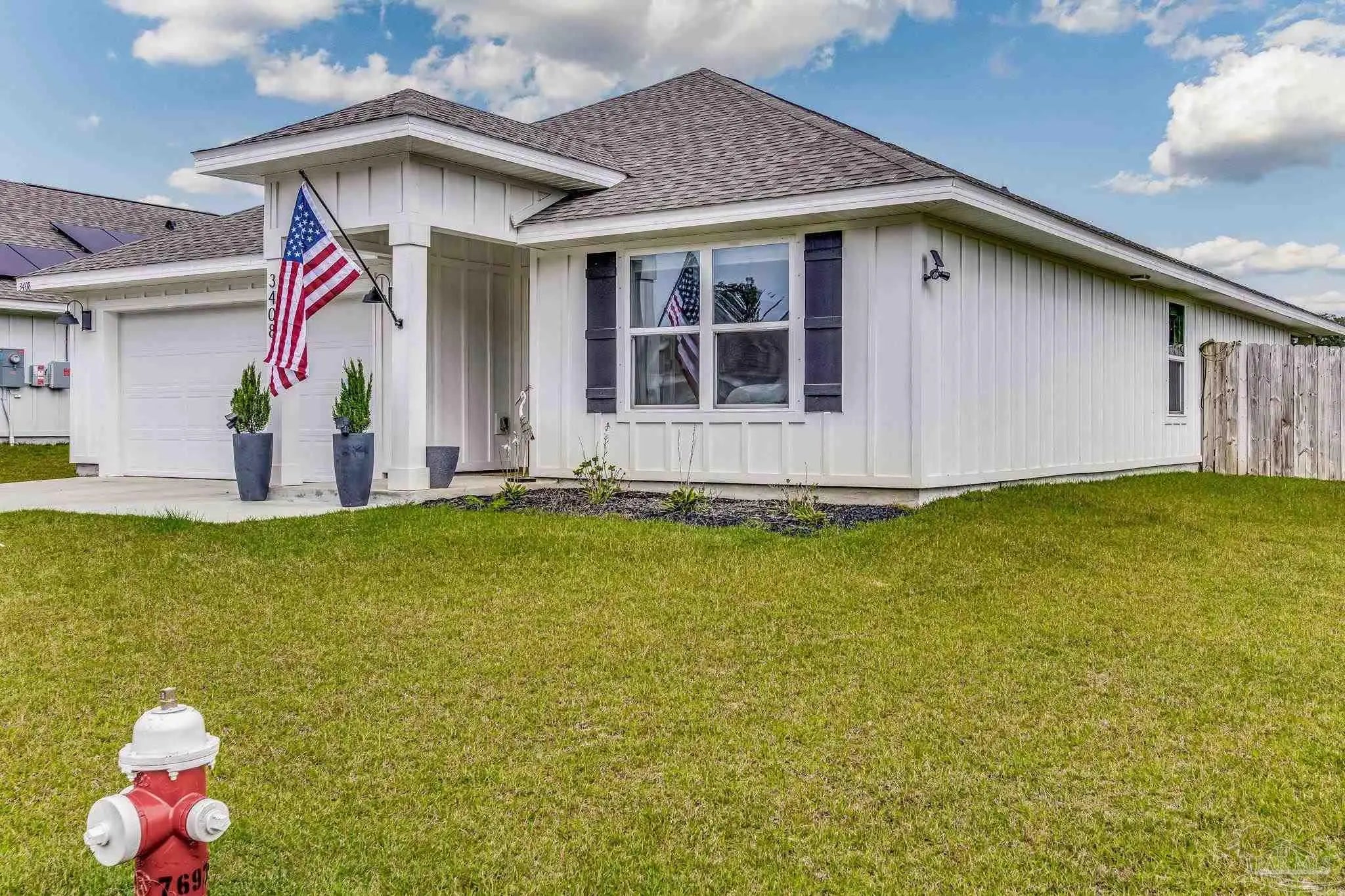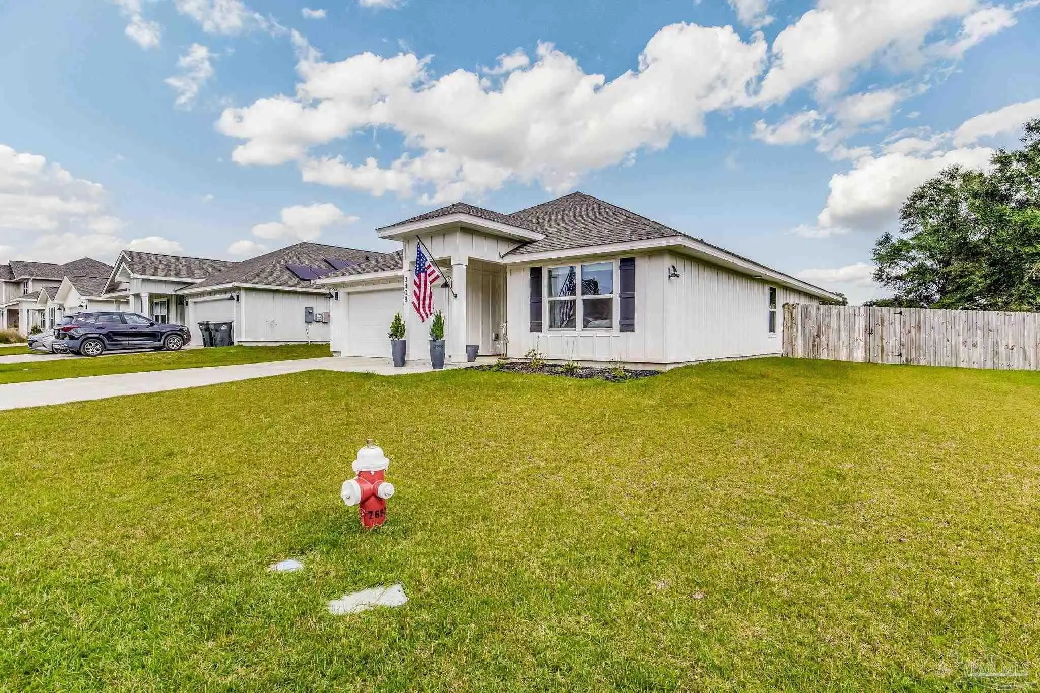 ** VA Assumable Loan **Tucked away on a quiet cul-de-sac, this beautiful 4-bedroom, 2-bath home sits on a fully fenced .27-acre lot in the desirable Fallschase at Pathstone community. Just minutes from I-10 (exit 5), you’ll enjoy quick access to Navy Federal Credit Union, schools, shopping, dining, and medical facilities. Built with hardy board siding, vinyl trim, and soffits, the exterior is designed for low maintenance. Step inside to find three spacious guest bedrooms up front, each with generous closets, and a convenient indoor laundry room with direct access to the two-car garage. At the heart of the home, an open-concept design blends the living room, dining area, and chef’s kitchen—perfect for both daily living and entertaining. The kitchen showcases an oversized granite island, stainless steel appliances, large pantry, and stylish brass hardware for a modern touch. The private primary suite is located just off the living area, featuring a spa-inspired bathroom with a walk-in closet, dual vanities, and a sleek glass-framed shower. Durable luxury vinyl plank flooring runs throughout the home—no carpet! Smart Home Technology comes standard, including KwikSet keyless entry and a Skybell video doorbell for peace of mind. Community amenities include a sparkling pool and playground, creating a welcoming neighborhood atmosphere. Move-in ready and ideally located, this home combines comfort, style, and convenience—all in one perfect package.