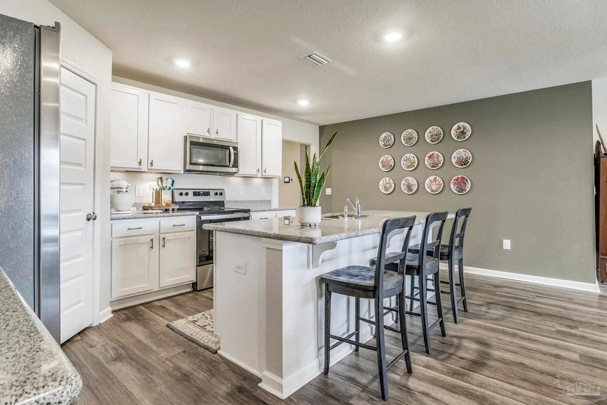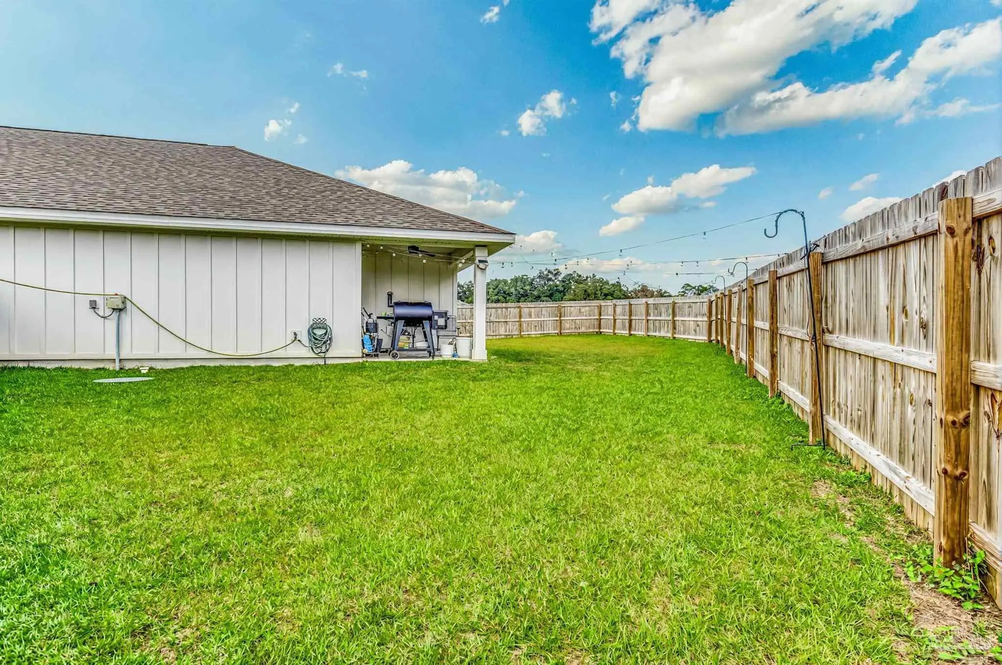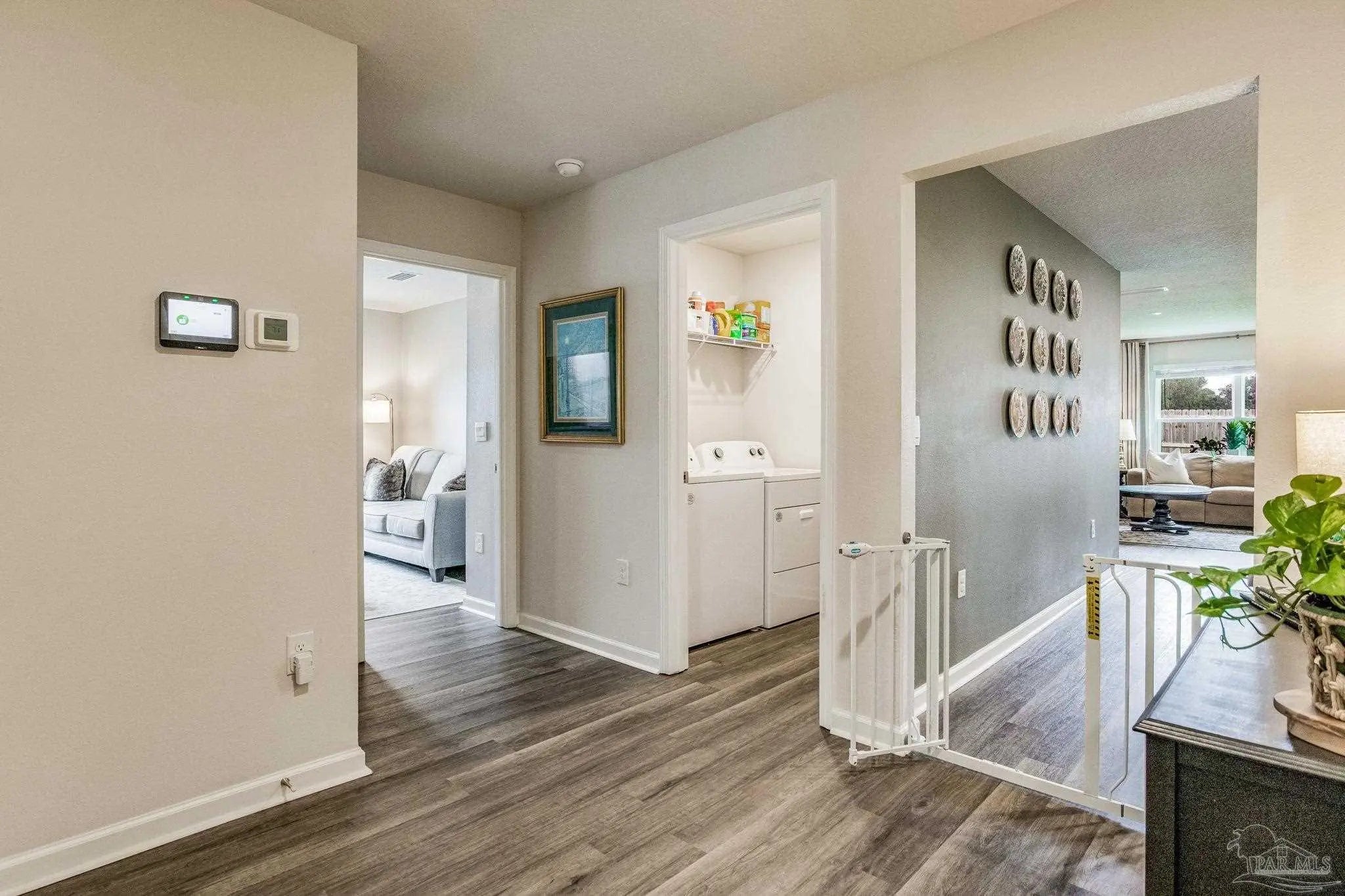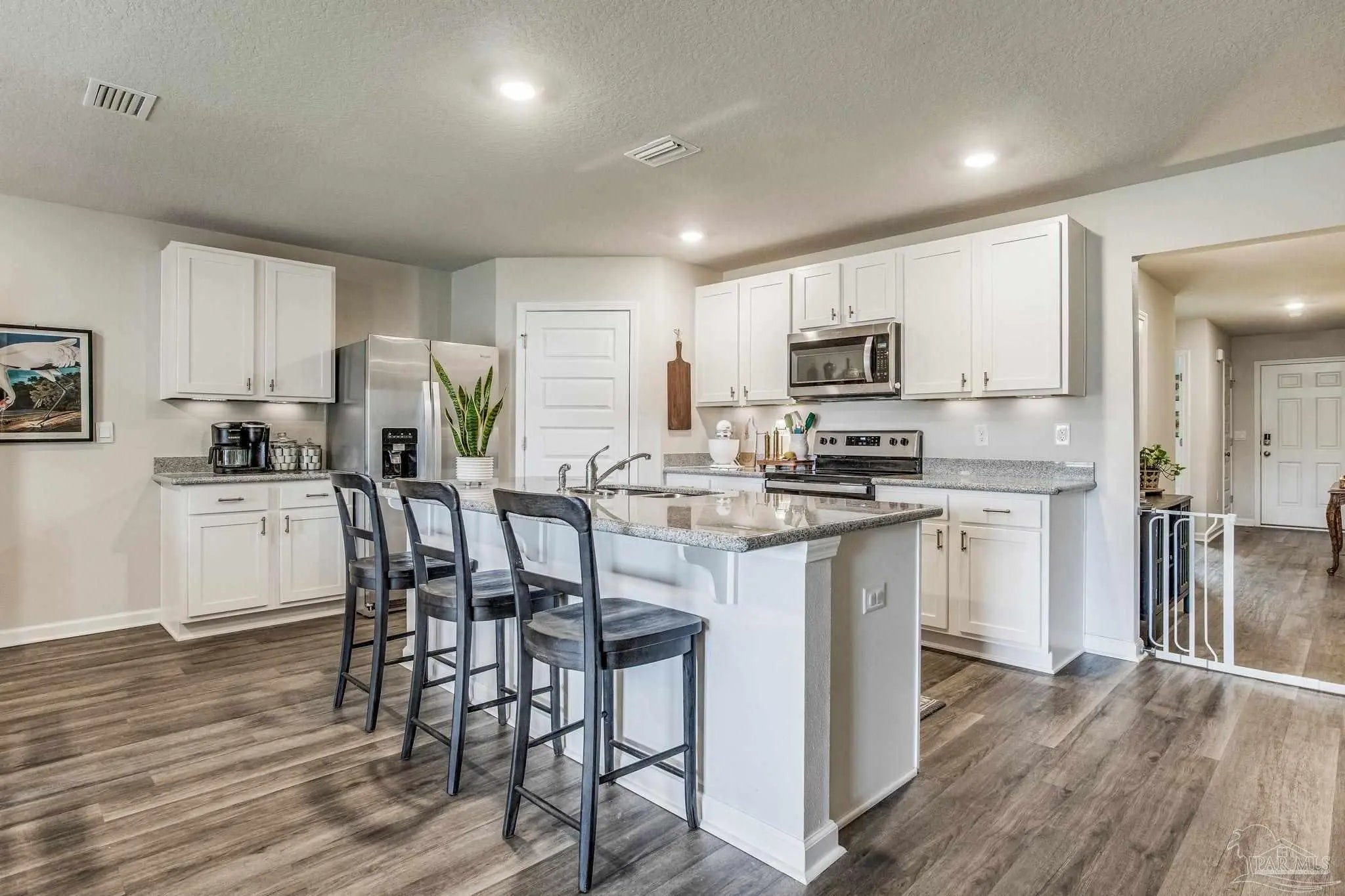 ** VA Assumable Loan **Tucked away on a quiet cul-de-sac, this beautiful 4-bedroom, 2-bath home sits on a fully fenced .27-acre lot in the desirable Fallschase at Pathstone community. Just minutes from I-10 (exit 5), you’ll enjoy quick access to Navy Federal Credit Union, schools, shopping, dining, and medical facilities. Built with hardy board siding, vinyl trim, and soffits, the exterior is designed for low maintenance. Step inside to find three spacious guest bedrooms up front, each with generous closets, and a convenient indoor laundry room with direct access to the two-car garage. At the heart of the home, an open-concept design blends the living room, dining area, and chef’s kitchen—perfect for both daily living and entertaining. The kitchen showcases an oversized granite island, stainless steel appliances, large pantry, and stylish brass hardware for a modern touch. The private primary suite is located just off the living area, featuring a spa-inspired bathroom with a walk-in closet, dual vanities, and a sleek glass-framed shower. Durable luxury vinyl plank flooring runs throughout the home—no carpet! Smart Home Technology comes standard, including KwikSet keyless entry and a Skybell video doorbell for peace of mind. Community amenities include a sparkling pool and playground, creating a welcoming neighborhood atmosphere. Move-in ready and ideally located, this home combines comfort, style, and convenience—all in one perfect package.
