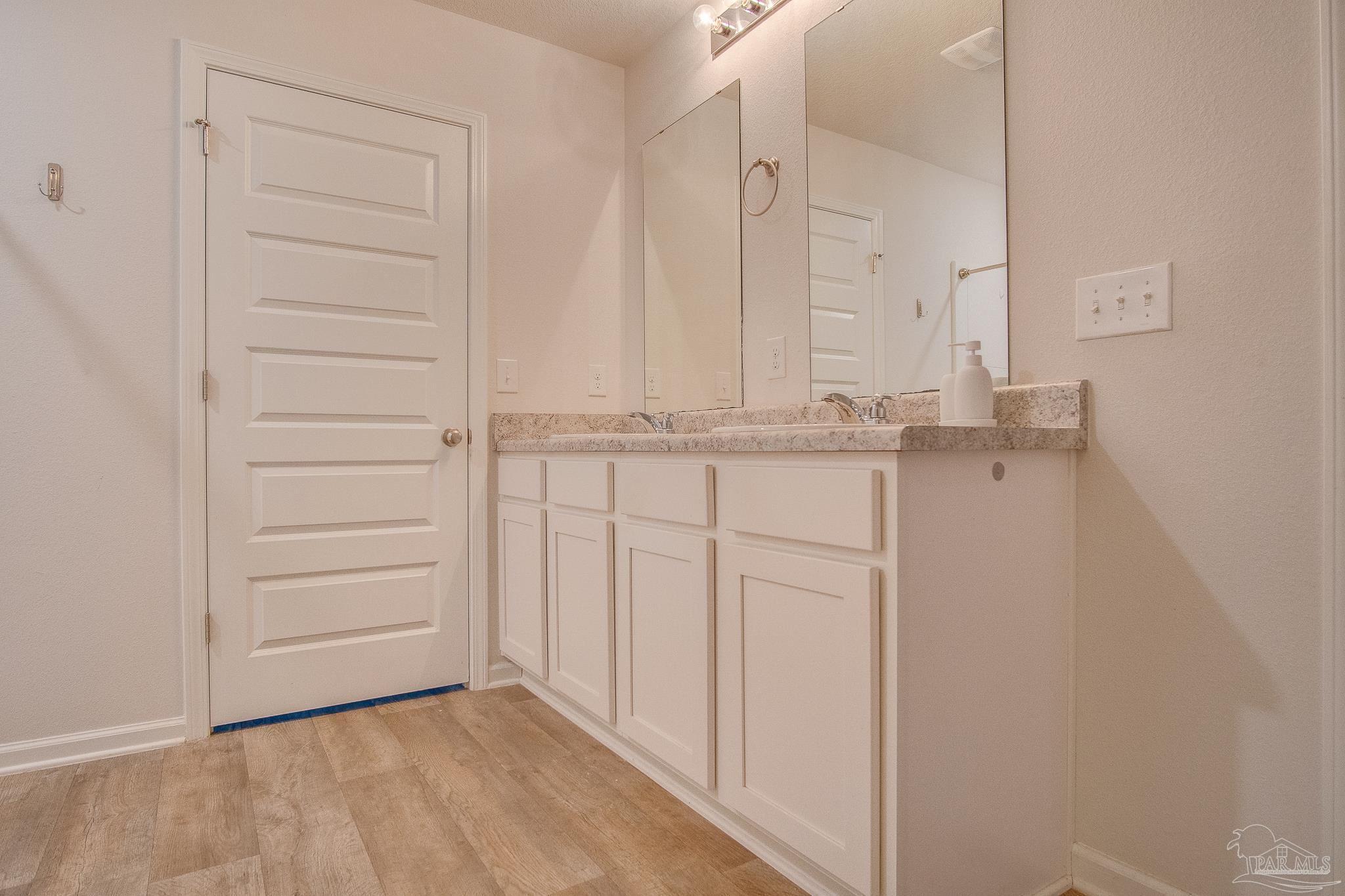 This spacious 5-bedroom, 3-bath home offers two family rooms and multiple bonus areas. The main floor features an office with custom floor-to-ceiling built-in shelves and cabinets, a welcoming foyer, a large kitchen with an eat-up island, a dining area, a full-size guest bedroom, a full bathroom, under-stair storage, and a family room with luxury plank flooring throughout the main living areas. Upstairs, the primary suite includes a private ensuite bathroom, while three additional bedrooms share two full bathrooms. An additional bonus/family room provides extra living space, and carpet runs throughout the second floor. Conveniently located near Corry, NAS Pensacola, VA, NAS Hospital, Exchange, Commissary, ITT, NFCU, Perdido, and Lillian, this home is ideally situated for comfort and accessibility. Indoor laundry area with washer and dryer provided as-is. Pets are welcome with owner approval and a $250 non-refundable pet fee per pet, though aggressive breeds will not be considered. Residents are required to carry renter’s liability insurance, which can be added for $11.95 per month, or opt into the Resident Benefits Package for $45 per month, which includes insurance, HVAC air filter delivery, and on-demand pest control. Move-in specials include half off the security deposit for active-duty military and $500 off the first month’s rent with an approved application. This home is move-in ready and waiting for its new residents.