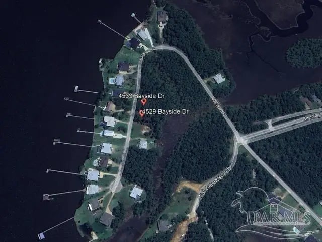 Discover the perfect setting for your dream home with these stunning, partially cleared adjacent lots, approximately 0.45 acre, located just across the street from Escambia Bay. This lot offers nearly a 1/2 acre of prime land, ideal for building a house. The lot is partially cleared leaving just the large trees. Rest easy knowing that no one will build behind you. A wetlands study is available upon request. The adjacent lot to the south, 4529 Bayside Dr, is also for sale. Purchase both lots for almost an acre in this prestine location. Situated in the picturesque Bayside subdivision, this unique opportunity allows you to create your haven in one of the Gulf Coast's most beautiful locations. This tranquil waterfront community offers breathtaking sunrises over Mulat Bayou and enchanting sunsets on Escambia Bay. Take leisurely strolls down Bayside Blvd and immerse yourself in the natural beauty, where you're likely to encounter resident Osprey, Cardinals, Bluebirds, and even the occasional deer or red fox. These exceptional water view lot are surrounded by nature, providing a serene escape with all the conveniences you need: sewer, electricity, public water, and high-speed internet. Whether you envision a single grand residence or two charming homes, this is your chance to bring your vision to life. Don't miss out on this rare and versatile opportunity!