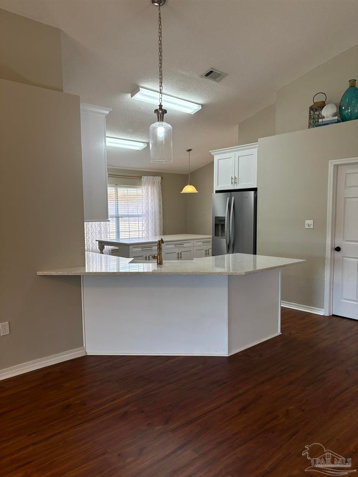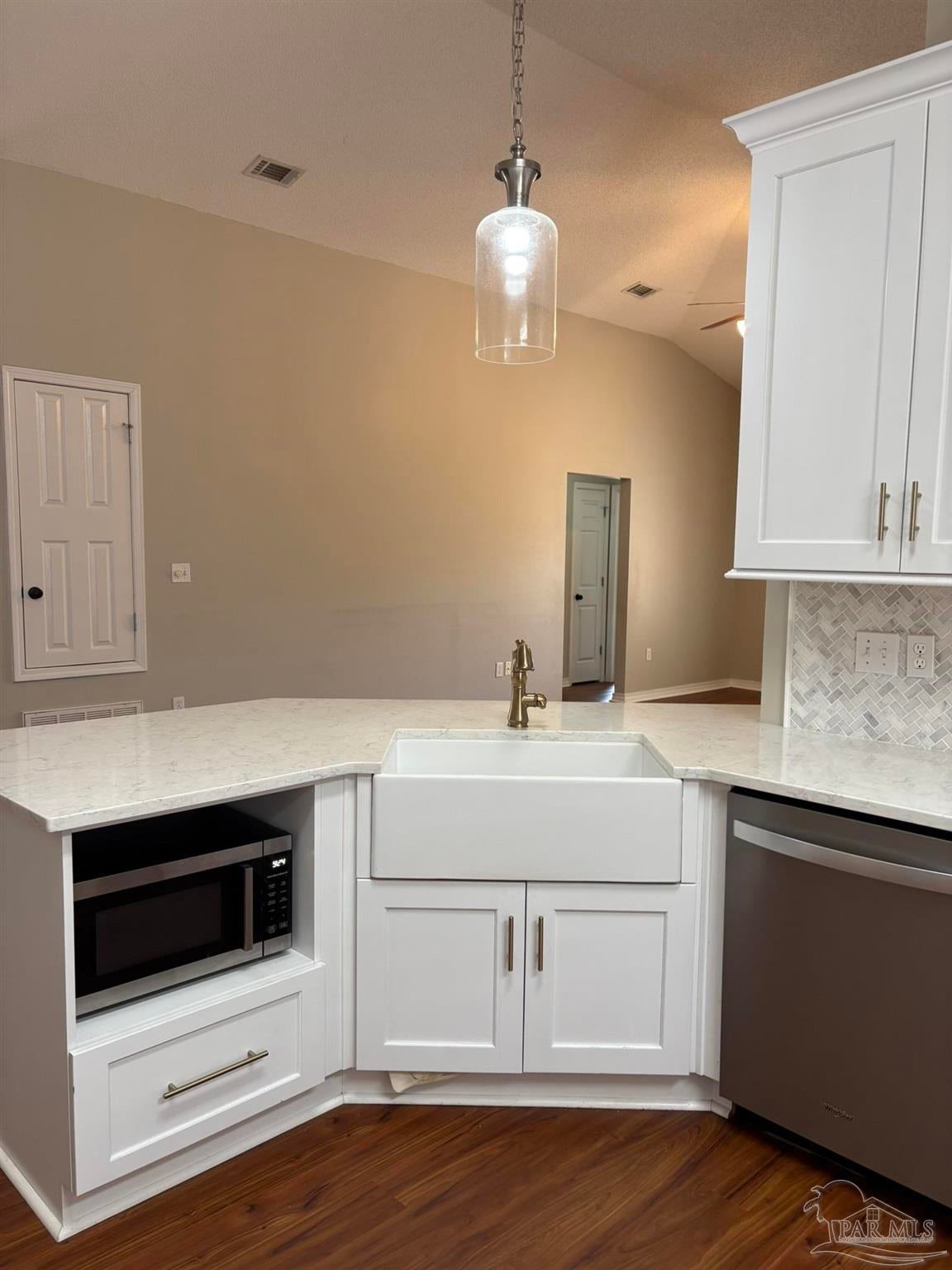 Beautifully updated 4 bedroom home for rent in Victorian Village. Vaulted ceilings in this open floor plan. Home has vinyl plank flooring throughout. The kitchen is amazing with white shaker cabinets, quartz counters, marble tile backsplash, huge, oversized island with plenty of seating and stainless appliances. Bathrooms have also been updated with new vanities, main bath has large, tiled shower and garden tub. Split bedroom plan, main bedroom has a walk-in closet. Front bedroom would make a great space for an office. Cul de sac street has walking path that leads to Tiger Point Park.