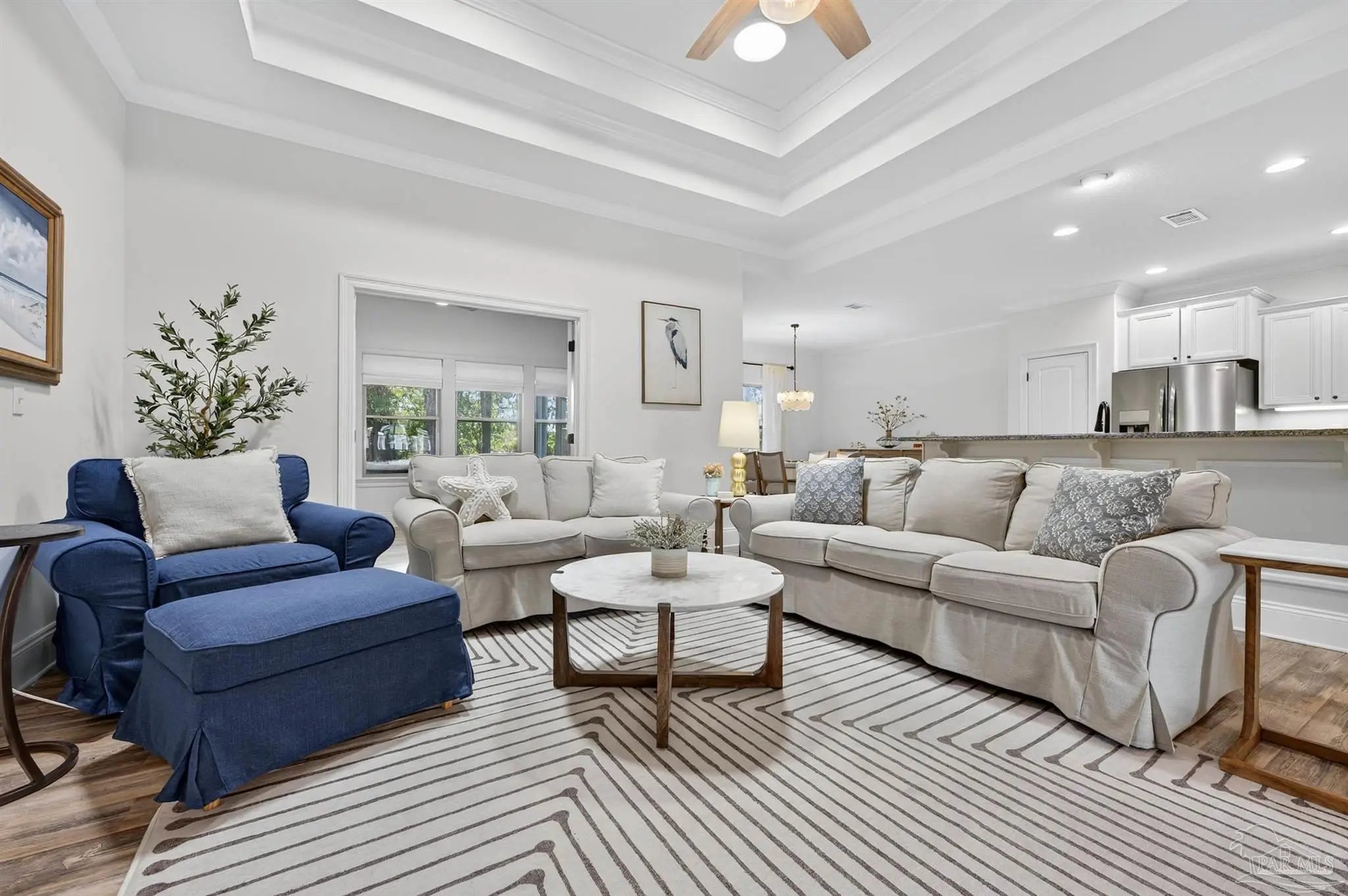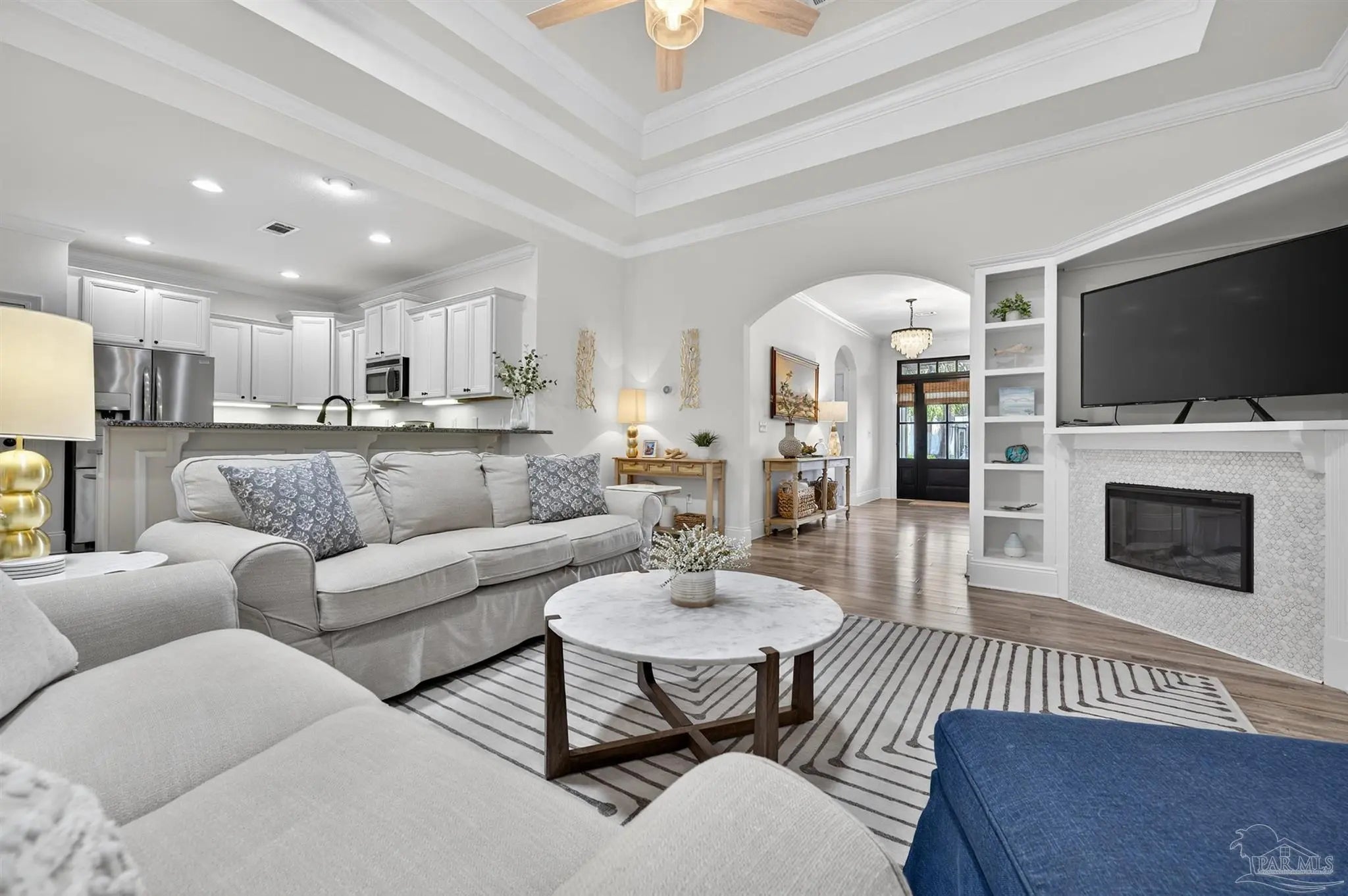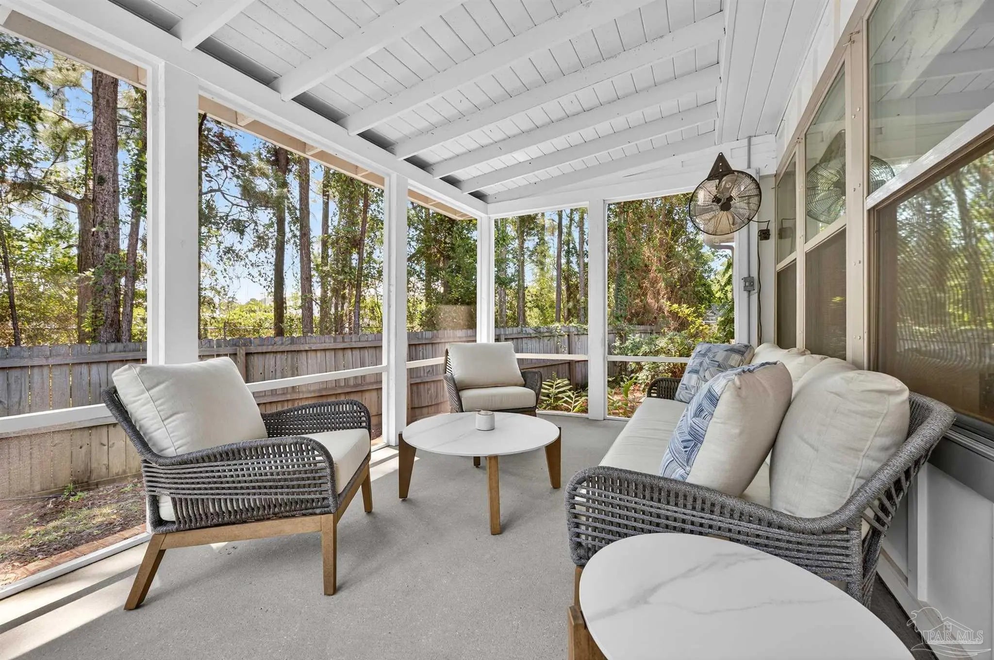 Discover this beautifully maintained 2014-built home in the gated community of Cypress Breeze Plantation! Known for its unmatched amenities, the neighborhood boasts a spectacular 13,000+ sq. ft. resort-style pool with 12 waterfalls, an ideal retreat just steps from home. Centrally located off 30A, you’ll enjoy quick access to the beautiful Gulf beaches, Point Washington State Forest (with direct access from the backyard), as well as nearby shopping and dining. With rental projections coming in at $40k+ this property would make a great second home or short term rental! The property features a 2022 HVAC, fresh neutral paint, crown molding, custom Roman shades, and all-new light fixtures and faucets. The open floor plan is accented by graceful arches, while the living room offers built-in bookcases, a fireplace, a tray ceiling, and skylights that fill the space with natural light. The kitchen is perfect for entertaining with granite countertops, stainless steel appliances, a breakfast bar, pantry, and abundant cabinetry. Just beyond, French doors open to a sunroom that make a perfect flex space or bonus room. The spacious primary suite is privately tucked at the back of the home and features a tray ceiling, walk-in closet, and an en suite bath with a garden tub, tile shower, and double vanities. A split floor plan separates the two additional bedrooms, which share a full bath with a tub/shower combo. Step outside to a fully fenced backyard framed by mature pine trees for shade and privacy and enjoy time on the screened patio! The backyard backs up to the Longleaf Pine Trail in Point Washington State Forest. Also featured is a 2 car garage with a built in work bench and storage area. Move-in ready and well cared for, this property offers the flexibility of being a primary home, vacation getaway, or short-term rental opportunity!