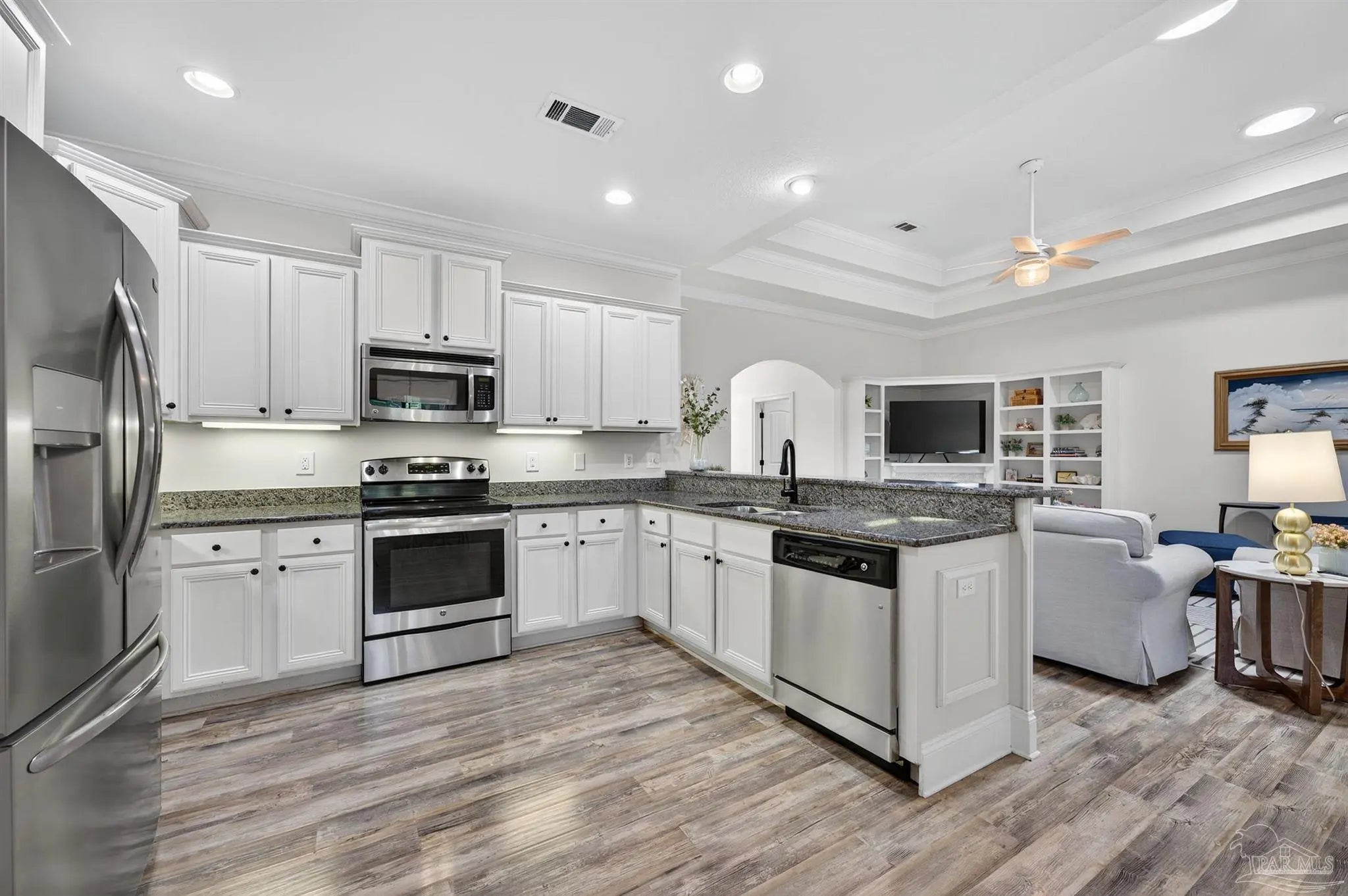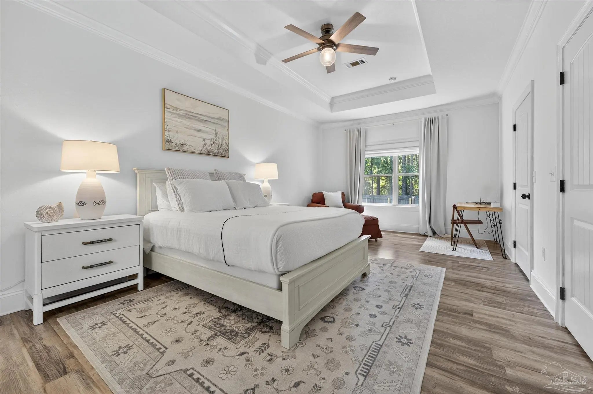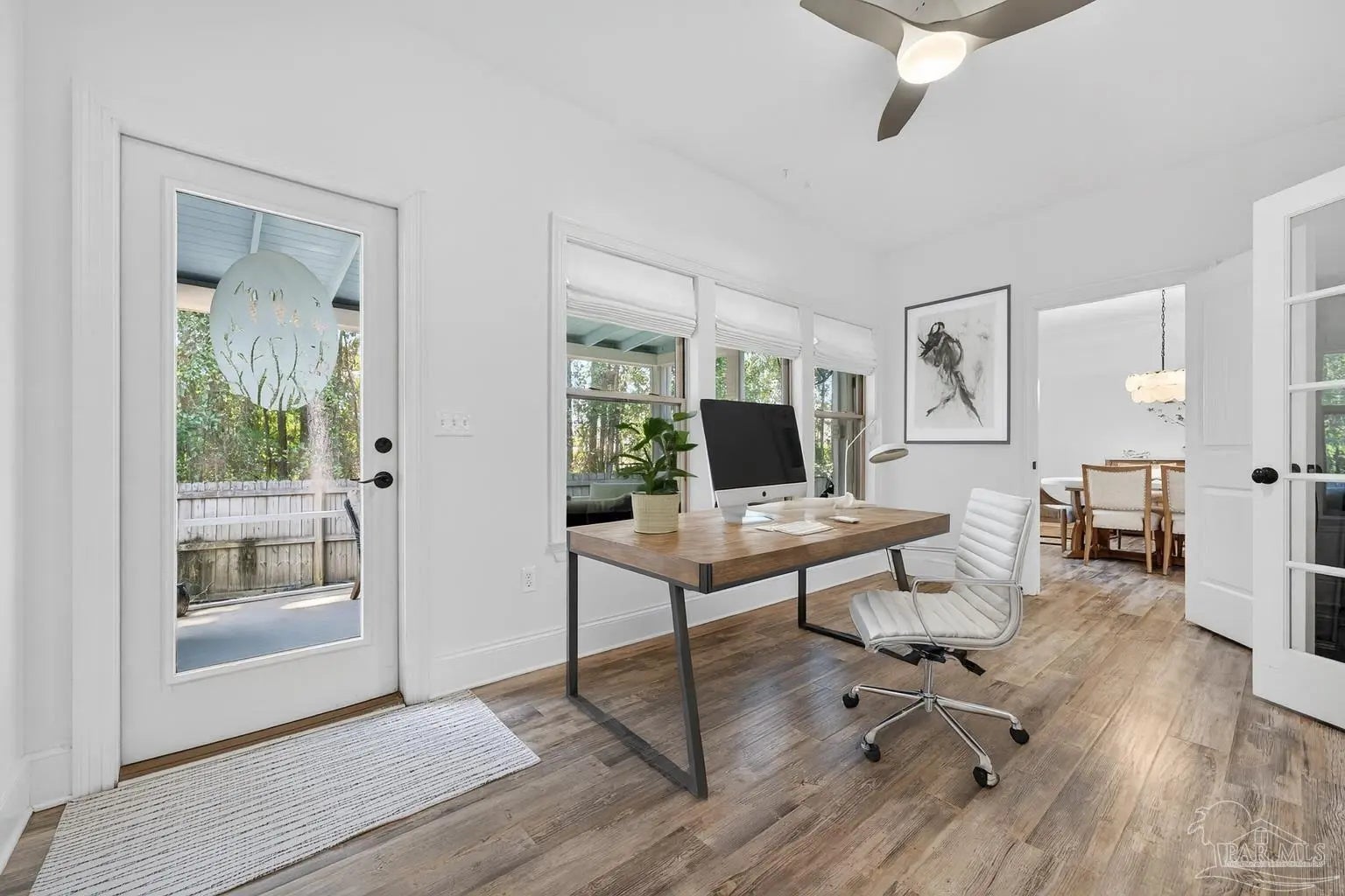 Discover this beautifully maintained 2014-built home in the gated community of Cypress Breeze Plantation! Known for its unmatched amenities, the neighborhood boasts a spectacular 13,000+ sq. ft. resort-style pool with 12 waterfalls, an ideal retreat just steps from home. Centrally located off 30A, you’ll enjoy quick access to the beautiful Gulf beaches, Point Washington State Forest (with direct access from the backyard), as well as nearby shopping and dining. With rental projections coming in at $40k+ this property would make a great second home or short term rental! The property features a 2022 HVAC, fresh neutral paint, crown molding, custom Roman shades, and all-new light fixtures and faucets. The open floor plan is accented by graceful arches, while the living room offers built-in bookcases, a fireplace, a tray ceiling, and skylights that fill the space with natural light. The kitchen is perfect for entertaining with granite countertops, stainless steel appliances, a breakfast bar, pantry, and abundant cabinetry. Just beyond, French doors open to a sunroom that make a perfect flex space or bonus room. The spacious primary suite is privately tucked at the back of the home and features a tray ceiling, walk-in closet, and an en suite bath with a garden tub, tile shower, and double vanities. A split floor plan separates the two additional bedrooms, which share a full bath with a tub/shower combo. Step outside to a fully fenced backyard framed by mature pine trees for shade and privacy and enjoy time on the screened patio! The backyard backs up to the Longleaf Pine Trail in Point Washington State Forest. Also featured is a 2 car garage with a built in work bench and storage area. Move-in ready and well cared for, this property offers the flexibility of being a primary home, vacation getaway, or short-term rental opportunity!