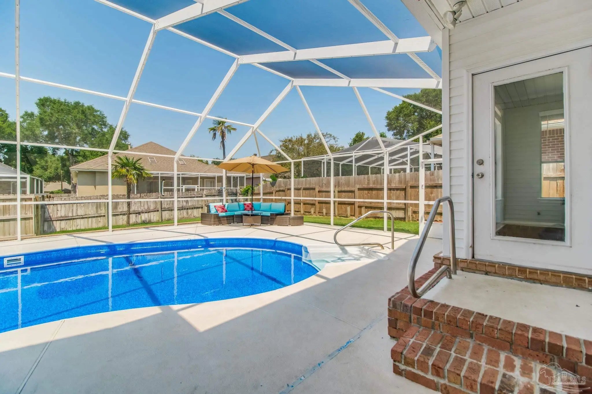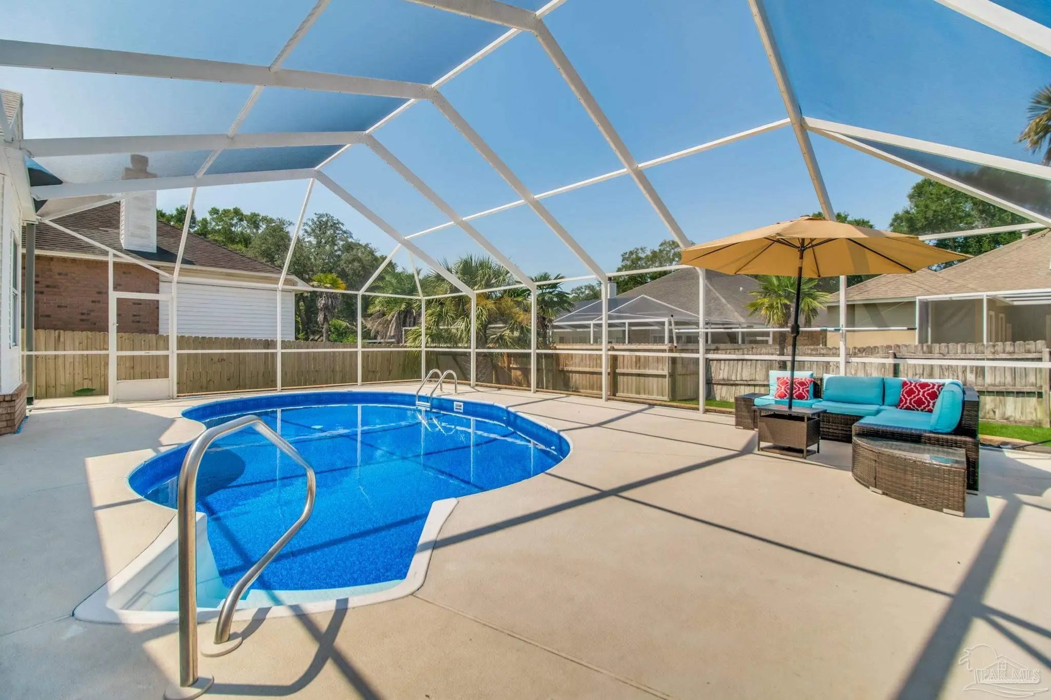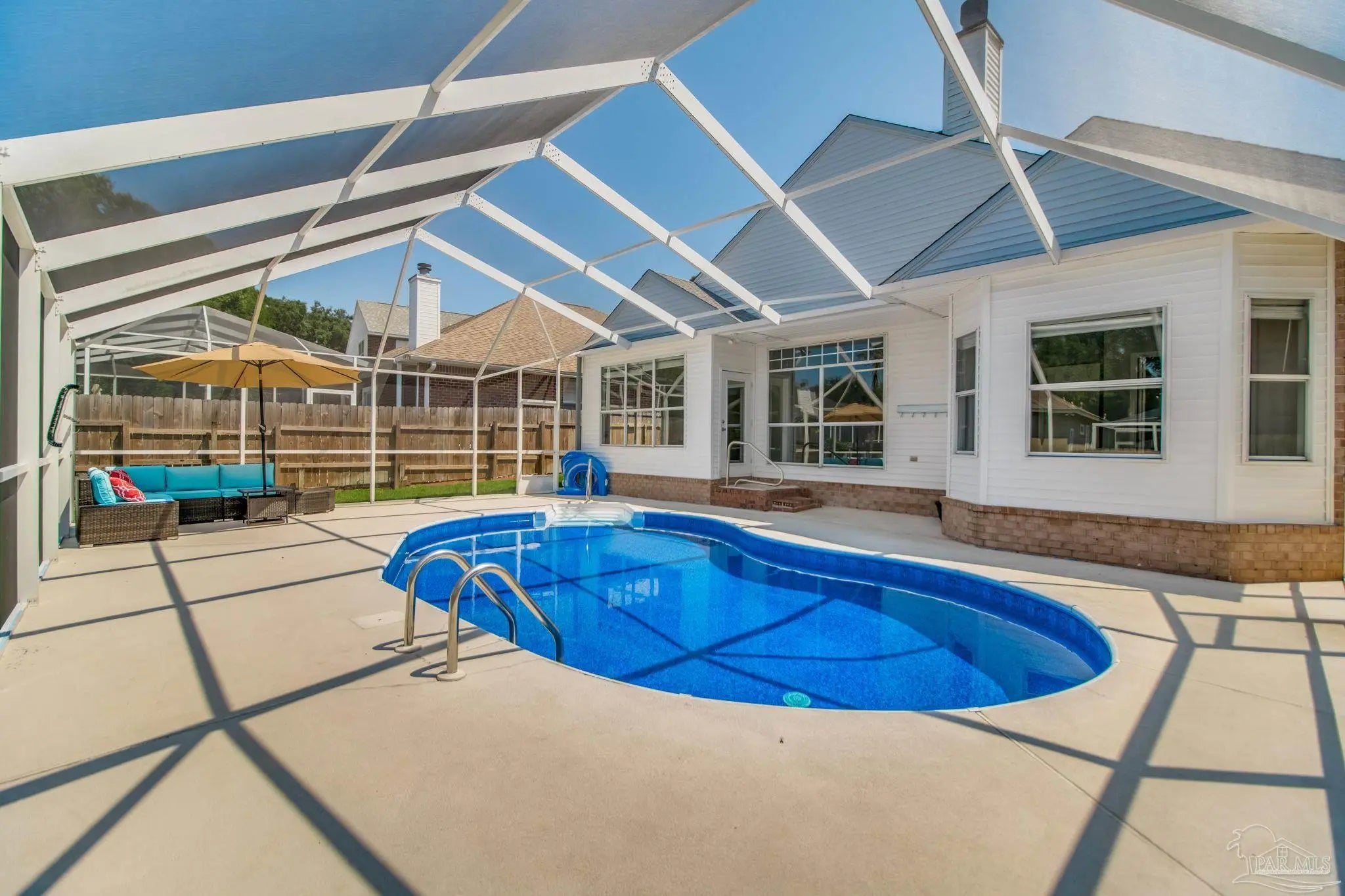 Welcome to this stunning 3-bedroom, 2-bathroom home nestled in the highly desirable Marcus Pointe community. Step inside to a bright and welcoming living room, complete with a cozy natural gas fireplace that sets the perfect tone for relaxing evenings at home. The thoughtful layout includes a spacious laundry room and a dedicated storage room in the garage, giving you plenty of space to stay organized. Out back, your very own screen-enclosed pool with a brand-new liner offers the ideal spot for year-round fun and entertaining, your private oasis awaits! The house features newer roof, newer natural gas water heater, and a Generac whole-home generator that keeps everything running smoothly. Don’t miss the opportunity to make this beautiful Marcus Pointe home yours and schedule a showing today before it’s gone!