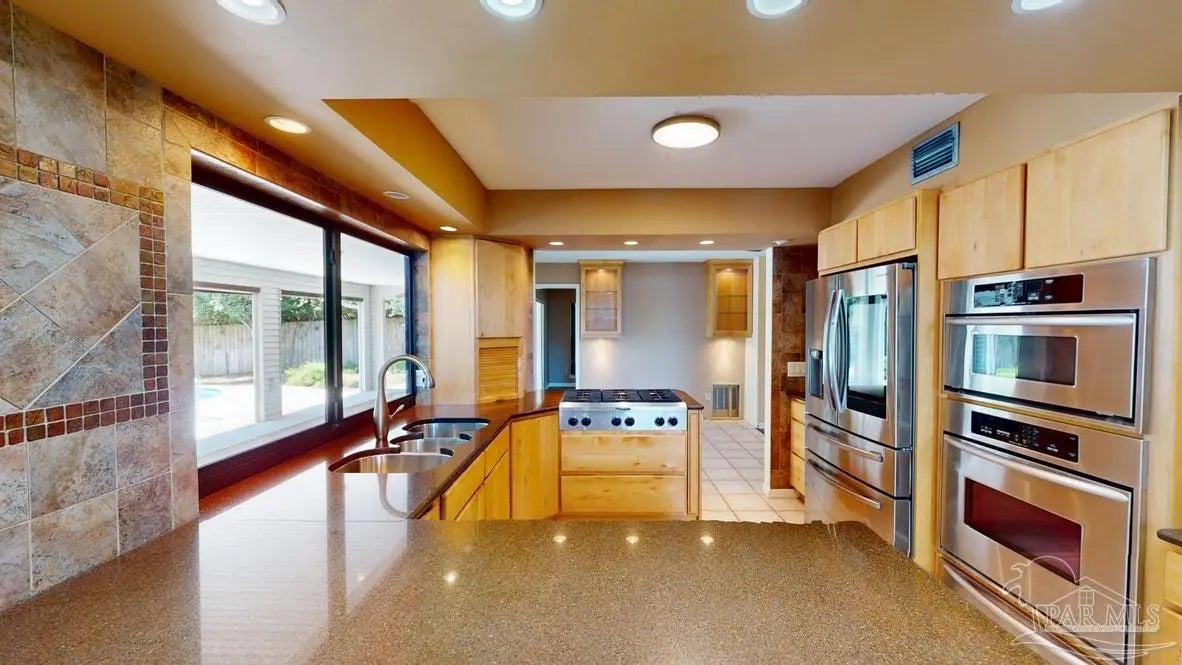 Located in the highly sought after Inverness, this beautifully appointed 4 bedroom 3 bathroom POOL home offers a spacious split floor plan designed for both comfort and style. The gourmet kitchen is equipped with solid surface countertops, a 6 burner gas range, and stainless steel appliances, making it perfect for cooking and entertaining. The vaulted ceiling in the family room adds an airy, open feel. The indoor laundry room with custom cabinetry provides added convenience. The primary suite features a cedar-lined closet and a spa-like ensuite with a large walk-in shower and dual vanities. Additional bedrooms are generously sized, offering flexibility for guests, family, or a home office. Step outside to your private oasis—complete with a sparkling saltwater pool, expansive lanai, and a built-in gas hookup for outdoor grilling. A 2-car garage rounds out this thoughtfully designed home, combining modern features with Florida living at its finest. Conveniently located near shops, restaurants, hospitals, downtown and Pensacola beach! Don't miss this opportunity to Own the Lifestyle. Schedule a showing of this amazing home today!