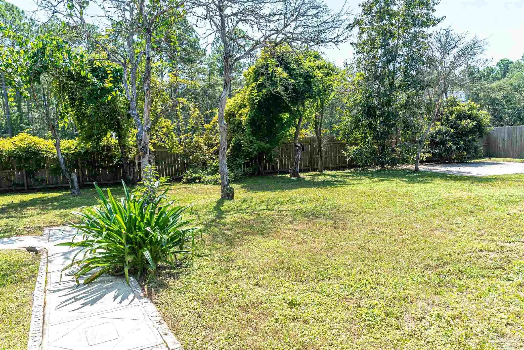 Welcome to your dream home! This spacious residence boasts 9 rooms, a two-car garage, and a generous, fully fenced backyard, perfect for outdoor gatherings and relaxation. A charming covered entrance invites you into an open floor plan that seamlessly connects the dining room, living room, and kitchen. The living and dining areas feature soaring vaulted ceilings, enhancing the home's airy ambiance. The kitchen and all bathrooms are beautifully appointed with granite counter tops, combining style and functionality. The master bath is a true retreat, showcasing two expansive walk-in closets, providing ample storage space. The bonus and family rooms offer great versatility, including access to the third full bath, perfect for entertaining or accommodating guests. Additionally, the solar panels have been installed to help keep your utility bills in check. Located in a well-established neighborhood, this home is just a short distance from stunning beaches, local parks, schools, and NAS Pensacola. Don't miss the opportunity to make this beautiful house your home! Qualified buyer can assume current mortgage.