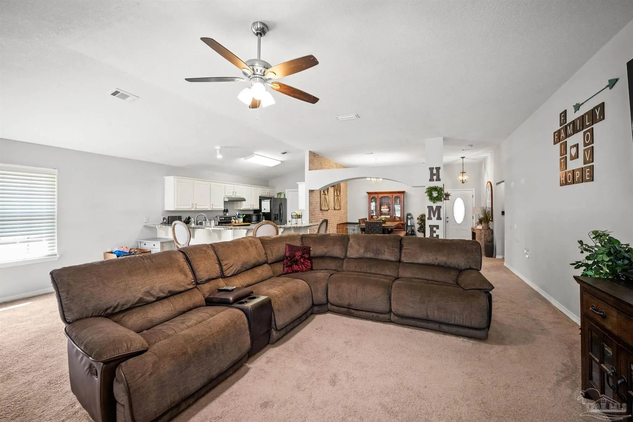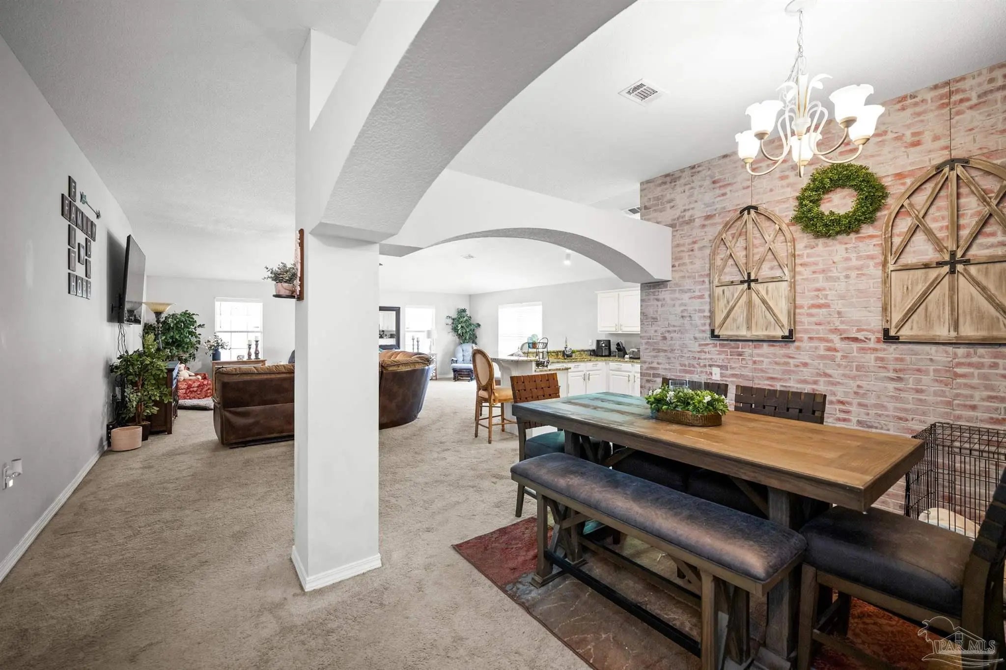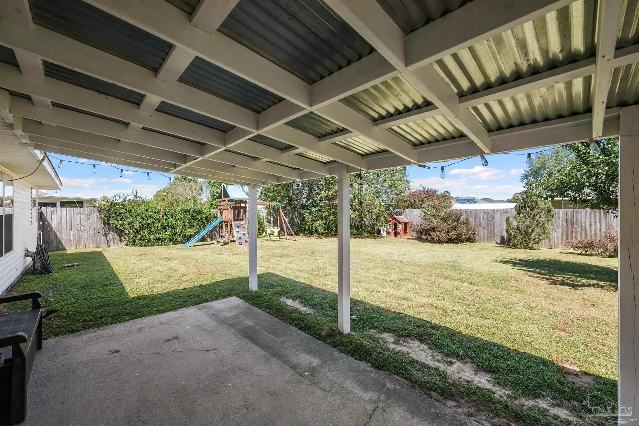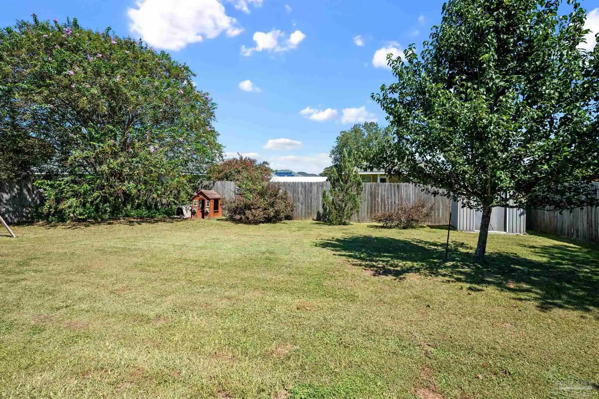 *PRICE IMPROVEMENT* Reduced by $7,500 - an excellent value in Bentley Oaks. Welcome to Bentley Oaks, a desirable Cantonment neighborhood featuring a community park with playground, picnic tables, and a basketball court. This well-kept 4-bedroom, 2-bath brick home offers over 2,300 sq. ft. of living space designed for both function and comfort. Inside, the open floor plan with decorative arches and comfortable ceiling heights connects the formal dining room to the spacious living area. The kitchen features granite countertops, stainless steel appliances, ample cabinetry, and a walk-in pantry with laundry access. The owner’s suite includes tray ceilings, a walk-in closet, and a roomy bath with double vanities, a soaking tub, and a separate shower. A faux brick wall in the living room and faux shiplap accent wall in the master bedroom add stylish character. Three additional bedrooms provide flexibility for family, guests, or a home office. The guest bathroom has been nicely updated, giving it a fresh look and feel. Outdoors, enjoy the 26’x13’ covered back patio with a durable metal roof, ideal for year-round gatherings. The fenced backyard provides privacy and plenty of space for play or pets. Additional highlights include updated flooring, ceiling fans, and a 2-car garage. Zoned for Pine Meadow Elementary, Ransom Middle, and Tate High, Bentley Oaks is close to Publix, restaurants, the NFCU campus, and offers easy access to I-10 for commutes into Pensacola and nearby bases. This move-in ready home combines neighborhood amenities, thoughtful touches, and a great location—making it an excellent choice in today’s market.