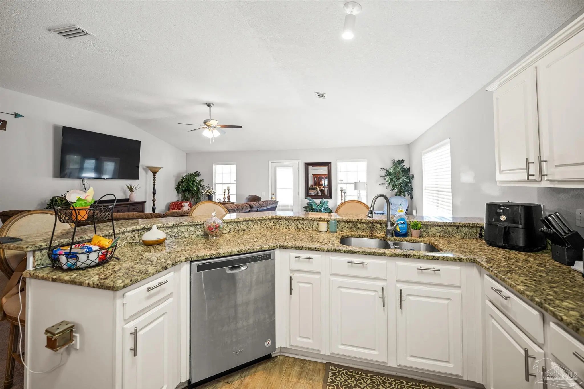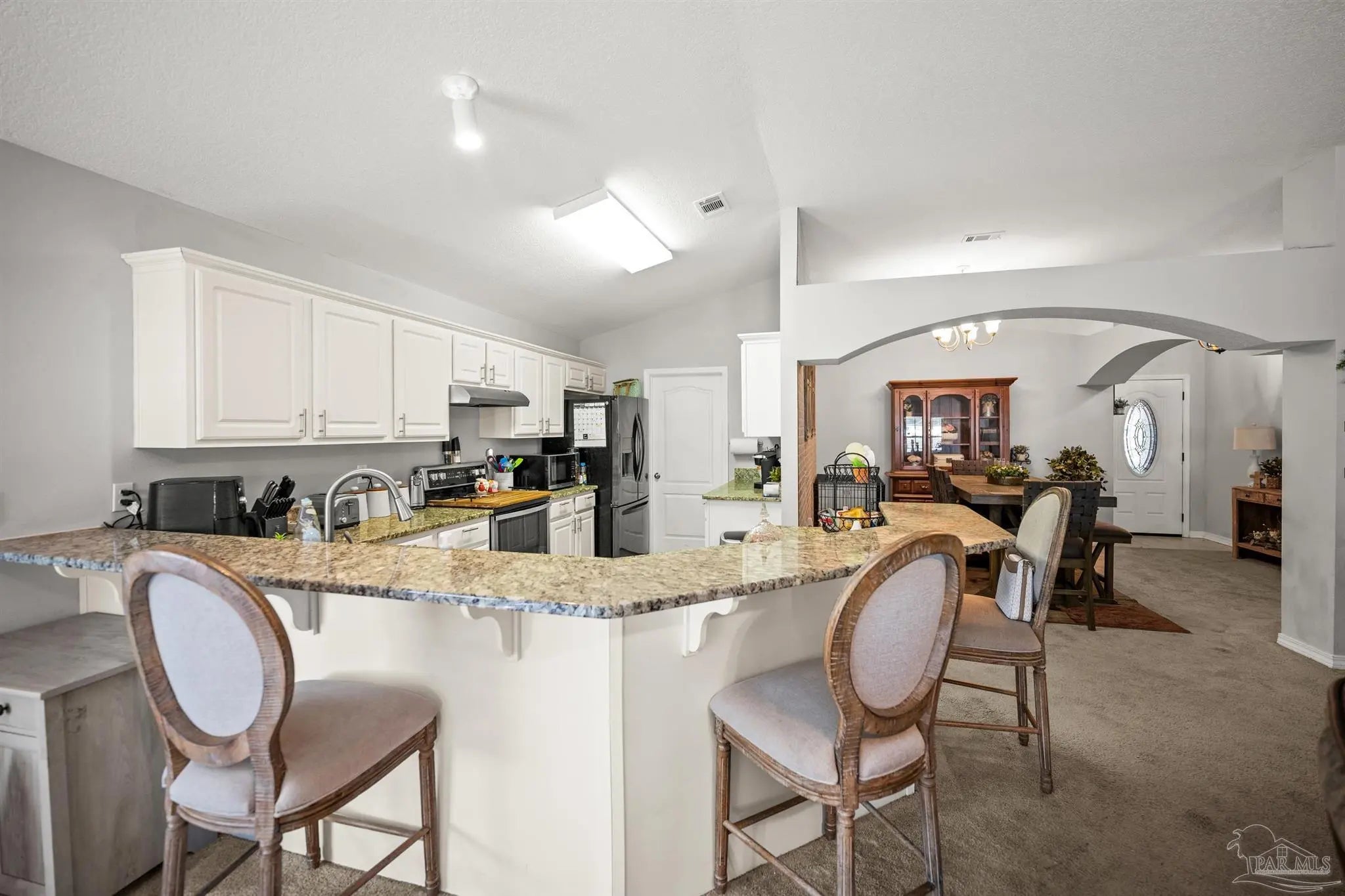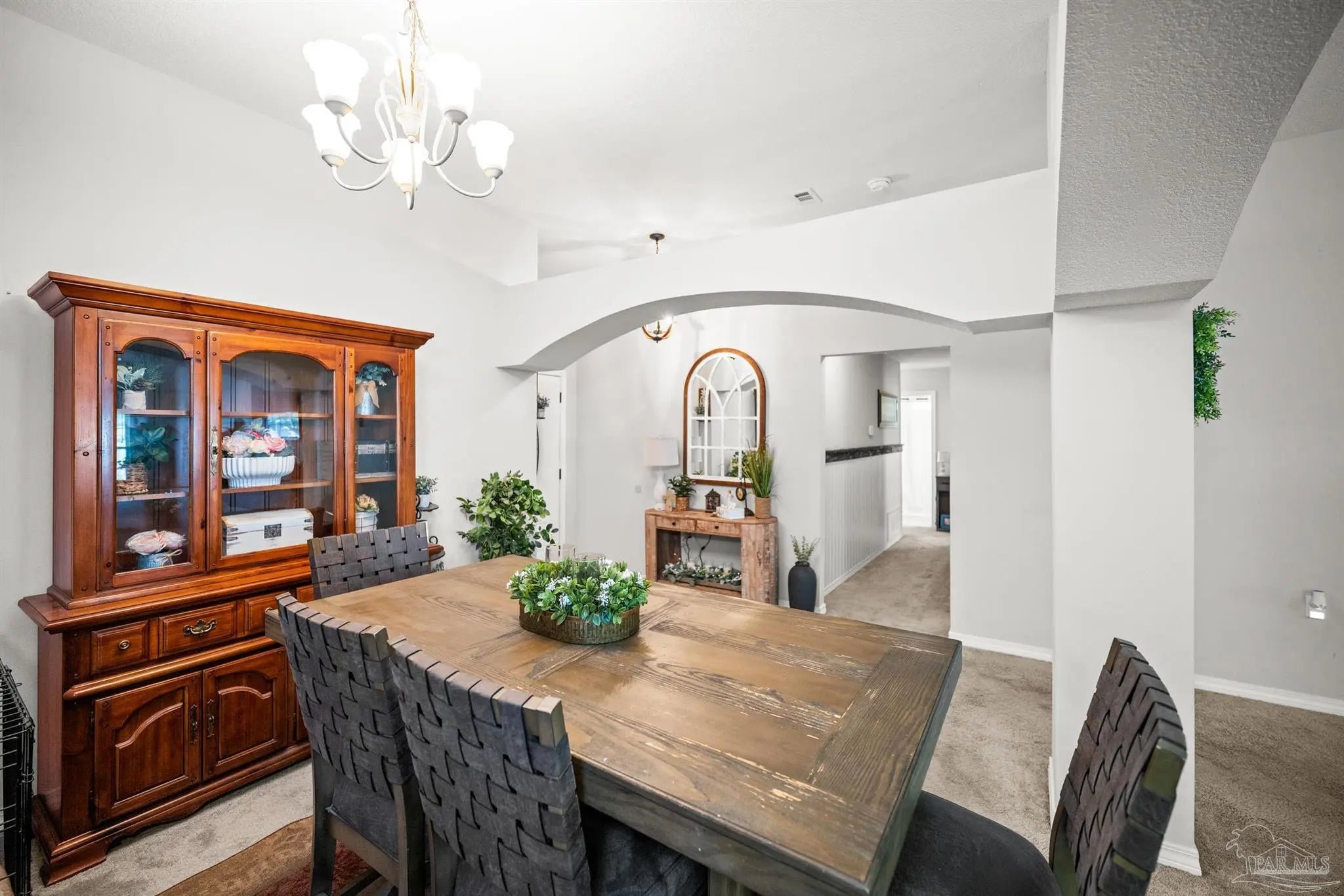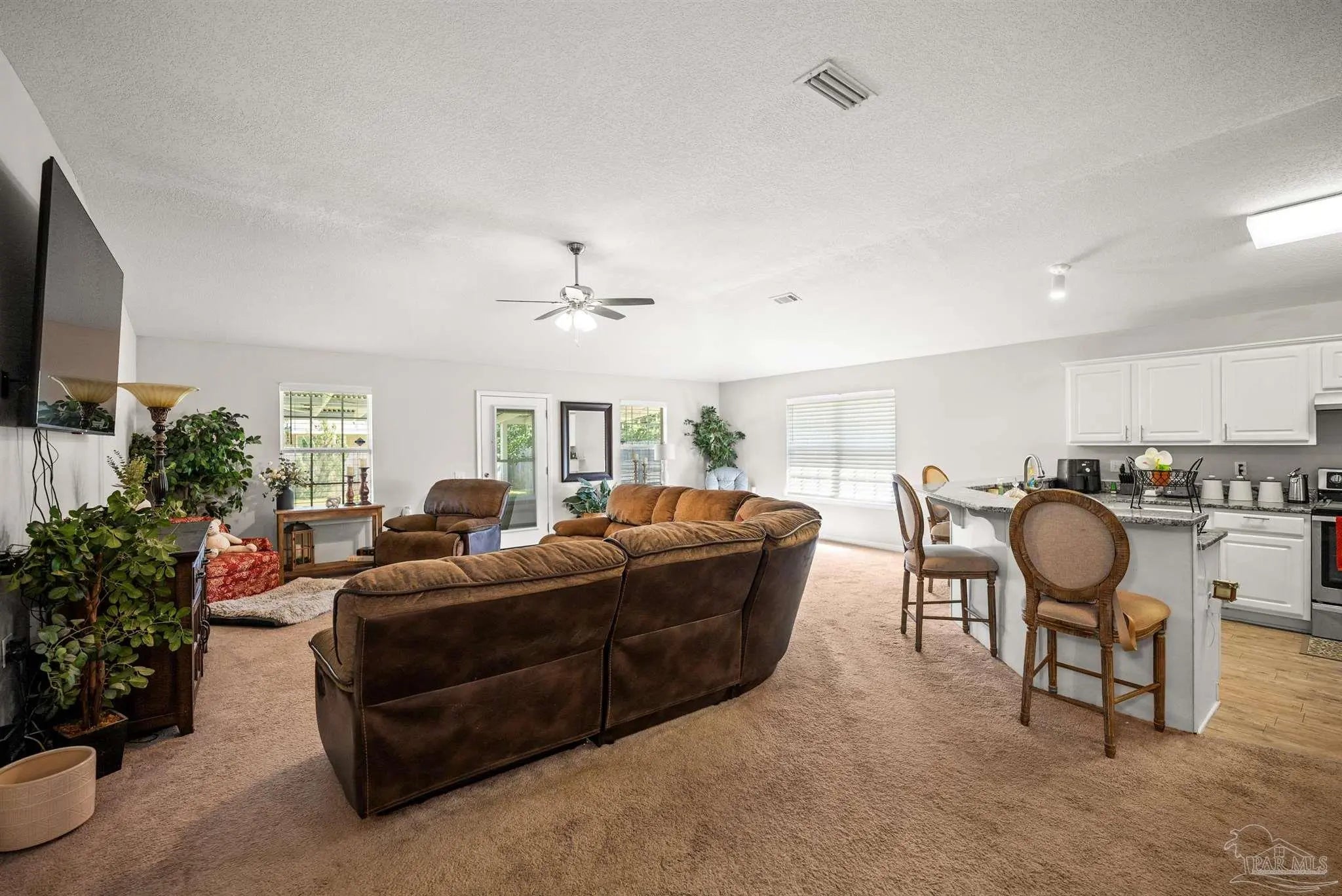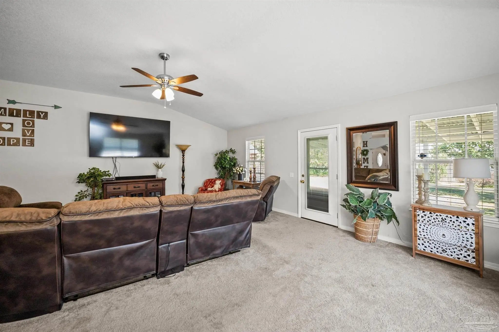 *PRICE IMPROVEMENT* Reduced by $7,500 - an excellent value in Bentley Oaks. Welcome to Bentley Oaks, a desirable Cantonment neighborhood featuring a community park with playground, picnic tables, and a basketball court. This well-kept 4-bedroom, 2-bath brick home offers over 2,300 sq. ft. of living space designed for both function and comfort. Inside, the open floor plan with decorative arches and comfortable ceiling heights connects the formal dining room to the spacious living area. The kitchen features granite countertops, stainless steel appliances, ample cabinetry, and a walk-in pantry with laundry access. The owner’s suite includes tray ceilings, a walk-in closet, and a roomy bath with double vanities, a soaking tub, and a separate shower. A faux brick wall in the living room and faux shiplap accent wall in the master bedroom add stylish character. Three additional bedrooms provide flexibility for family, guests, or a home office. The guest bathroom has been nicely updated, giving it a fresh look and feel. Outdoors, enjoy the 26’x13’ covered back patio with a durable metal roof, ideal for year-round gatherings. The fenced backyard provides privacy and plenty of space for play or pets. Additional highlights include updated flooring, ceiling fans, and a 2-car garage. Zoned for Pine Meadow Elementary, Ransom Middle, and Tate High, Bentley Oaks is close to Publix, restaurants, the NFCU campus, and offers easy access to I-10 for commutes into Pensacola and nearby bases. This move-in ready home combines neighborhood amenities, thoughtful touches, and a great location—making it an excellent choice in today’s market.
