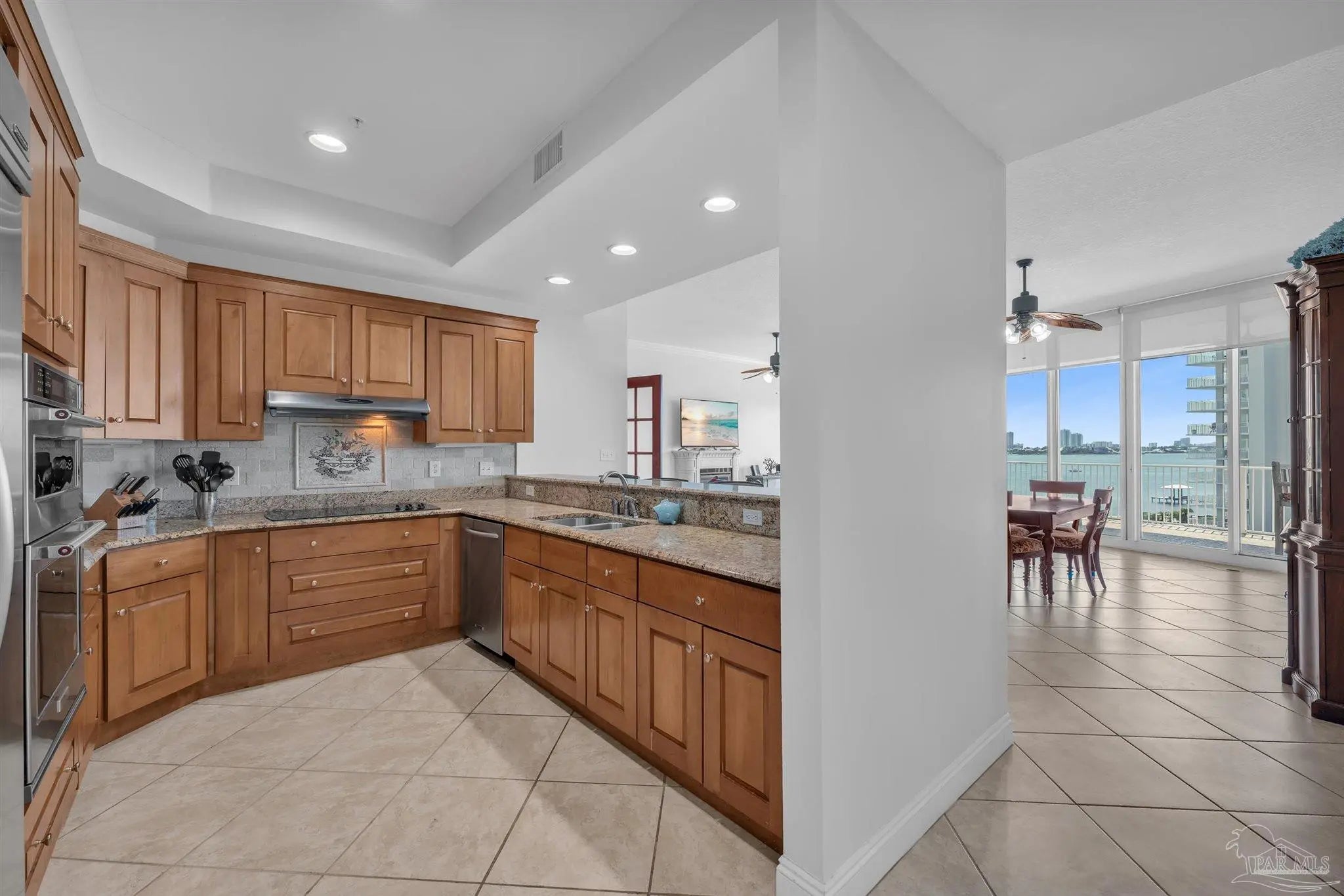Bayshore Towers is an upscale gated residential condominium in Orange Beach with stunning views of Terry Cove. Life doesn't get better than this. This lovely 3 bedroom/3 bath unit in Bayshore Towers Sunset Tower offers the elegant beach and bay lifestyle you crave. This gated complex is a premier spot for year-round living. Bayshore Towers sits on over 5 acres of lush waterfront property with one of the best views of Terry Cove, Perdido Pass, and more. This property features a marina, TWO outdoor pools, tennis/pickleball courts, and well-groomed gardens with an estate-like atmosphere - without the maintenance. The north side of the property is lush and private, while the bay side offers the very best of bayfront living. Park your boat at the marina and take a dinner cruise to a nearby restaurant, and then return to this amazing condo. The 07 stack has one of the most desirable floor plans due to the unobstructed views and floor-to-ceiling/wall-to-wall windows in the main living area. Turn this unit into your own space. Granite countertops throughout. In the kitchen, you will find stainless appliances and cabinets galore. Enjoy easy outdoor living as well: the generous balcony features a spot for a gas grill. Washer/Dryer and refrigerator convey. Enjoy the sunshine every day thanks to the floor-to-ceiling (and hurricane-resistant) glass. The kitchen flows easily into the open living area, including a full dining area and an additional office. The primary bedroom is spacious and also features floor-to-ceiling windows overlooking Terry Cove. Hugh walk-in closet in the primary bath. New HVAC units inside and outside in 2023. LVP and Tile flooring throughout, NO CARPET. Boat slips are optional, and slip #1 can be purchased separately. Seller is motivated. Buyer to verify all information during due diligence.