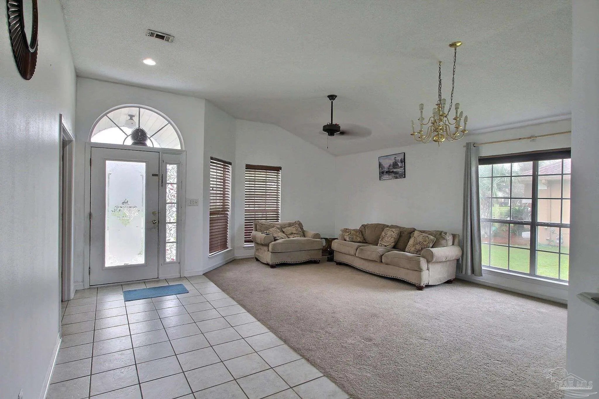 Welcome to Milestone – Where Lifestyle Meets Convenience Looking for the perfect neighborhood that combines charm, convenience, and community? Welcome to Milestone, a highly desirable community where every detail is designed for easy living. Picture tree-lined streets with blooming crape myrtles, underground utilities, sidewalks, and streetlights. Every home in Milestone features a side-entry garage, sprinkler system, and welcoming front porch—making it easy to enjoy friendly waves as neighbors stroll by. This vibrant neighborhood offers something for everyone: a community softball field, basketball court, full playground, and even a paved walking trail that circles the neighborhood. All this, plus the convenience of walking to Publix, Petrella’s Italian Restaurant, Ollie’s Sports Grill, and more. With Target, Home Depot, Lowe’s, movie theaters, hospitals, and countless dining options nearby, you’re perfectly positioned. Less than 1.5 miles from I-10, only 15 minutes to downtown Pensacola, and 25 minutes to Pensacola Beach—you’ll love where you live! About the Home: This w home offers 4 bedrooms, 2 baths, and over 2,000 sq. ft. of comfortable living space. Enjoy relaxing or entertaining on the spacious 20’ x 20’ screened patio overlooking the backyard. Flexible 4th Bedroom/Office: Located just off the entry with French glass doors and a closet—perfect as a home office or guest room. Open, Split Floor Plan: The main living area features soaring 10-foot ceilings, creating an airy and inviting space. Island Kitchen: Designed for function and style with a gas stove, cast iron sink, large walk-in pantry, wraparound breakfast bar, and generous counter and cabinet space. Primary Suite: Spacious bedroom with pocket door leading to a luxurious bath, featuring a double vanity, whirlpool tub, separate shower, and oversized His & Hers 8’ x 11’ walk-in closet.