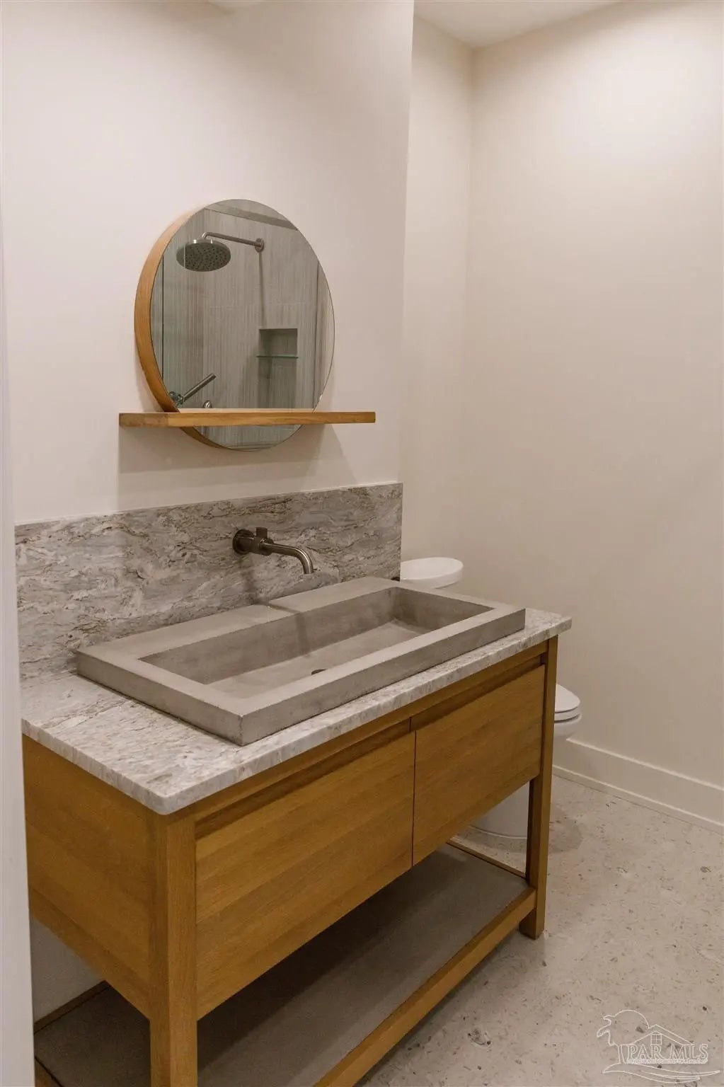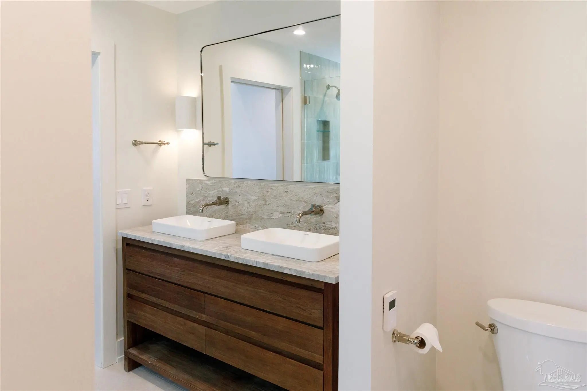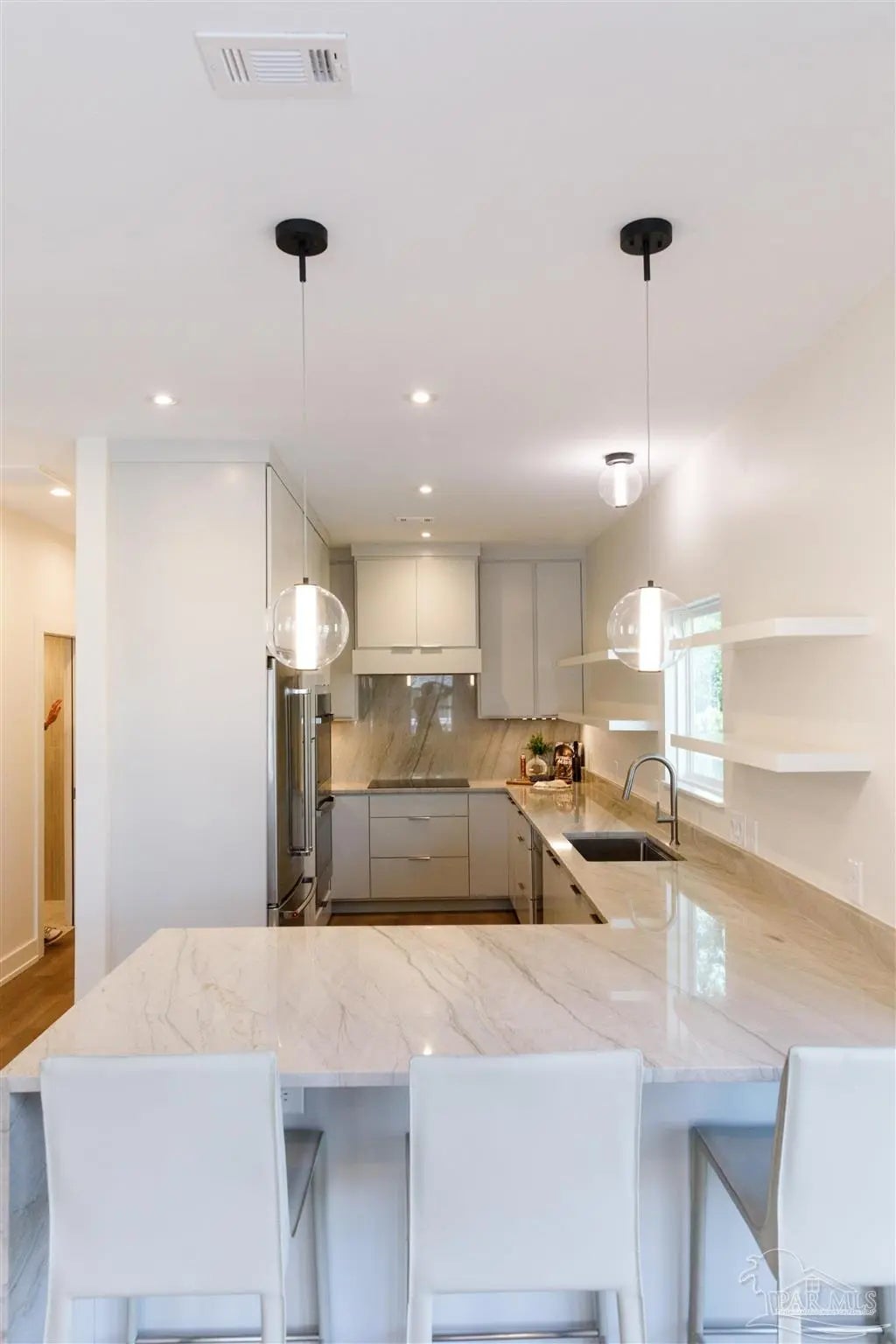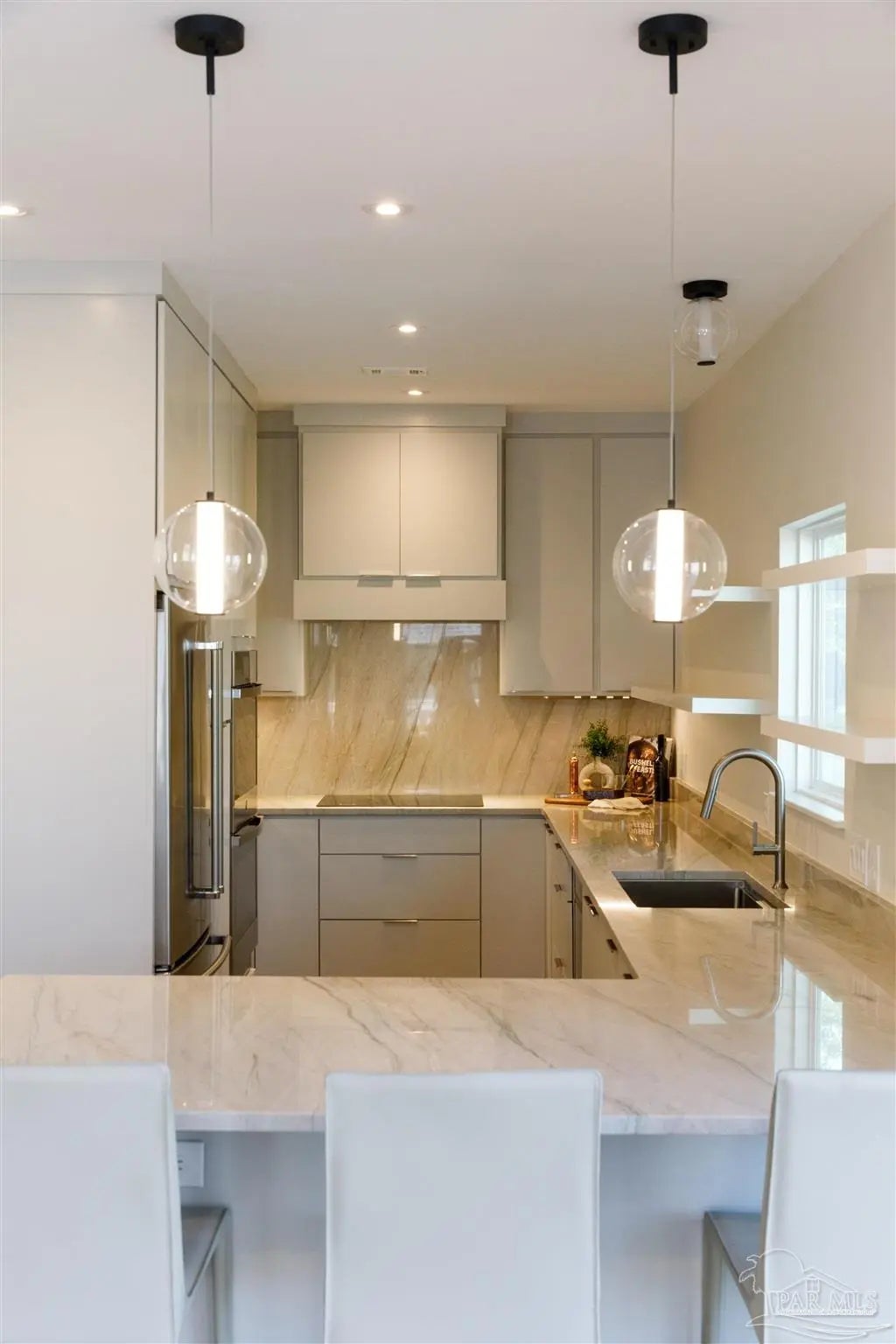 Tucked away down a winding, tree-lined road, this classic beauty rests on the shores of Pensacola Bay. The first level offers covered parking and a spacious storage area, with direct access to the water’s edge. Ascend to the main living space where contemporary architecture and thoughtful design set the stage for elegant coastal living. Every detail of this elegant renovation was meticulously planned, focusing on easy-living at every turn. Flooded with natural light, the open living and dining areas seamlessly connect to a stylish kitchen featuring quartzite countertops, stainless-steel appliances, and a double wine and beverage cooler. Each of the three generous bedrooms includes its own private bath, highlighted by the primary suite with sweeping water views, a private balcony, and a picture-perfect window in the spa-like ensuite bathroom featuring radiant heated flooring. Additional conveniences include a full laundry area, abundant storage, and expansive porches and balconies that wrap the home on two levels and are ideal for enjoying sunsets over the Bay. This home offers peace of mind with a brand-new 2024 roof and recently updated systems throughout, including HVAC, water heaters, electrical, and plumbing ensuring both modern efficiency and long-term reliability. Ideally located close to downtown, pristine beaches, and all that Pensacola has to offer, this residence blends timeless design with effortless coastal living. A rare blend of elegance and waterfront living, this Pensacola Bay residence is truly a place to call home. Schedule your private tour today.