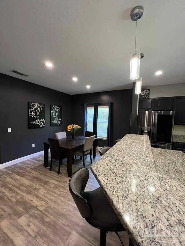 This beautiful, move-in-ready contemporary home brings together modern comfort, functional design, and outdoor serenity. The inviting front porch welcomes you in, while the generously proportioned great room, thoughtful layout, and scenic backyard enhance daily living. Step through the inviting foyer into an expansive great room, where soaring ceilings and open sightlines create an airy, welcoming ambiance. The chef-inspired kitchen shines with granite countertops, a center island with breakfast bar seating, and abundant prep space. The master suite is generously sized for comfort. The en-suite bathroom includes a double-vanity with granite counters, a luxurious garden tub, a separate walk-in shower, and a spacious walk-in closet. Three additional bedrooms are thoughtfully placed on the opposite side of the house, with a full-sized bathroom. Beyond the back door lies a screened porch, creating an inviting indoor-outdoor living space. The expansive, fully fenced backyard offers endless possibilities. Ideal for growing families, entertaining, or those craving peaceful moments outdoors—this is a gem in the heart of Navarre.