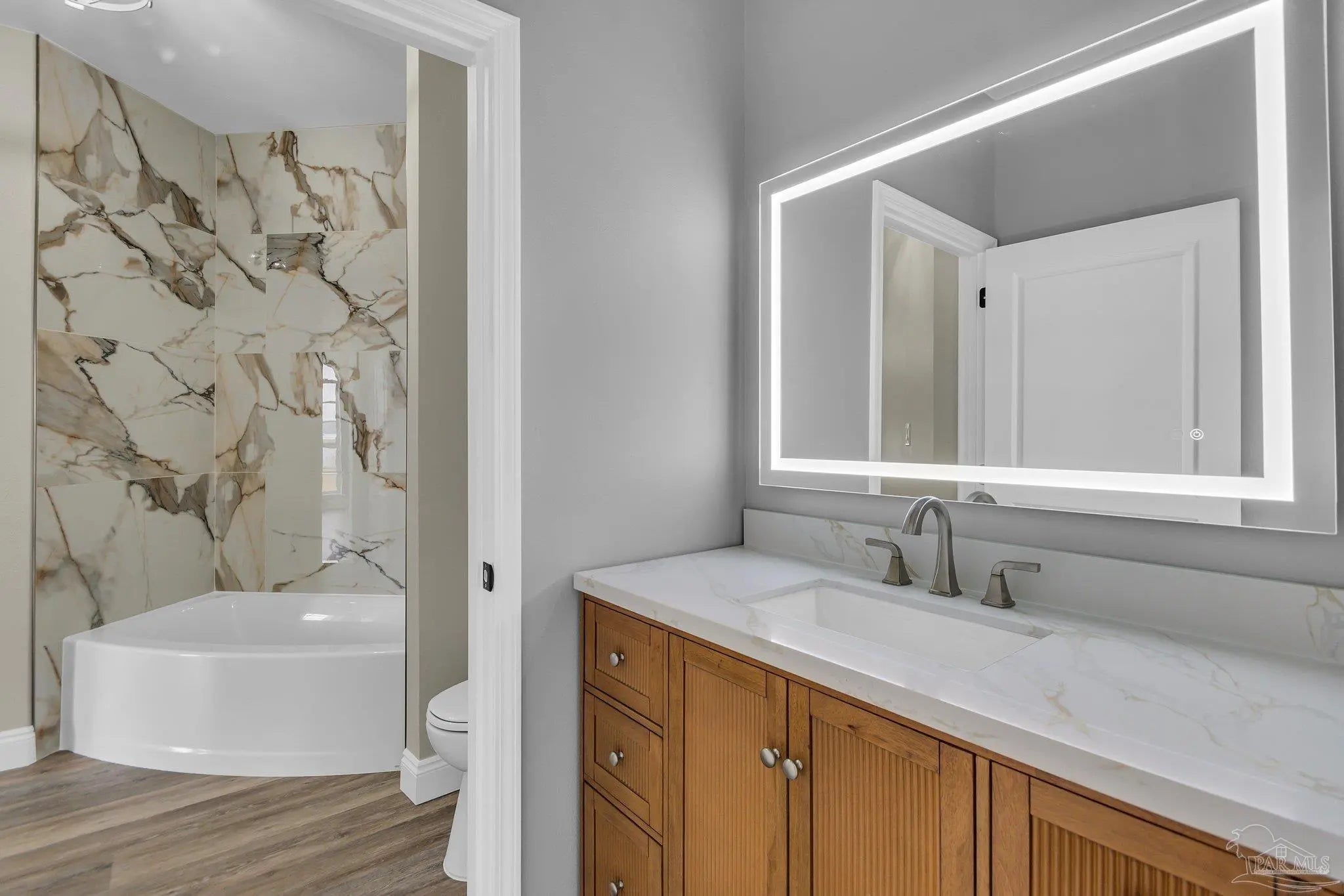 7390 San Ramon Dr, pictures don't do this beautifully remodeled home justice. Every piece was thoughtfully designed, from the granite fireplace hearth and cedar mantle to the wet bar with granite countertop and cedar shelving. The primary bathroom is a luxurious, private retreat with unique quartz countertops that are also featured in the kitchen. This remodel features LVP and tile throughout, 2 air-conditioning units, water heater, new kitchen appliances including a double oven. Don't miss out the sunsets at San Ramon Dr.