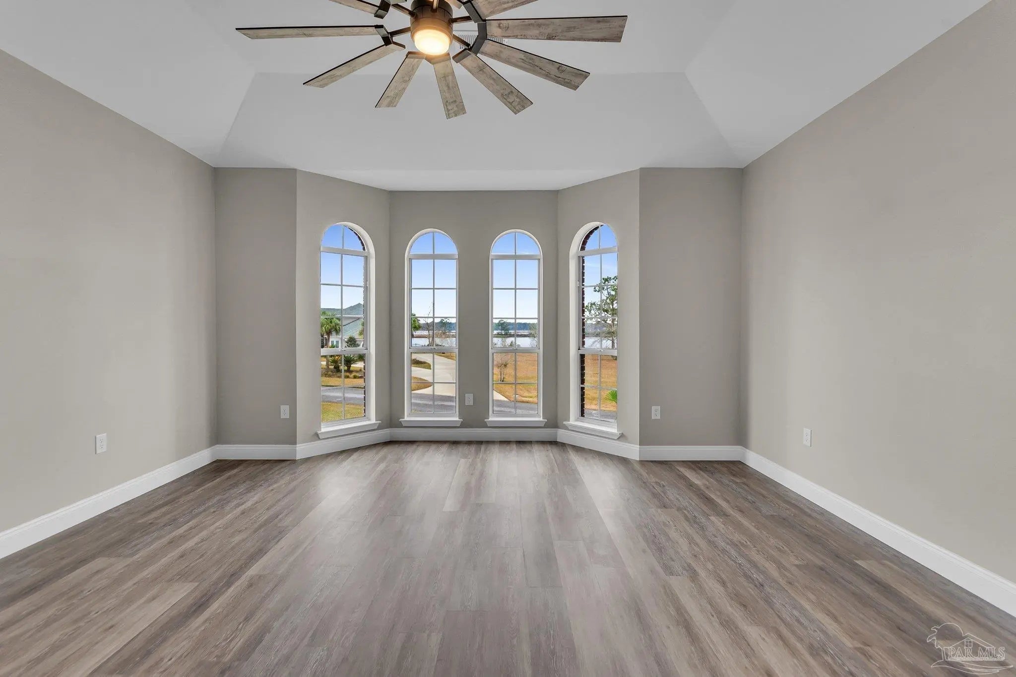 - Ceiling Fan(s), Crown Molding, Wet Bar, Office/Study